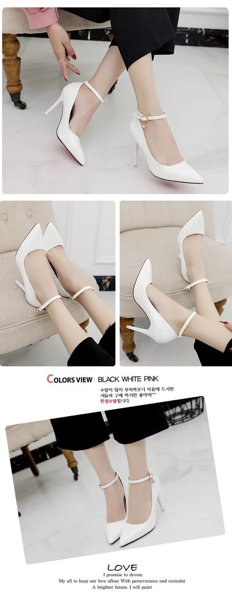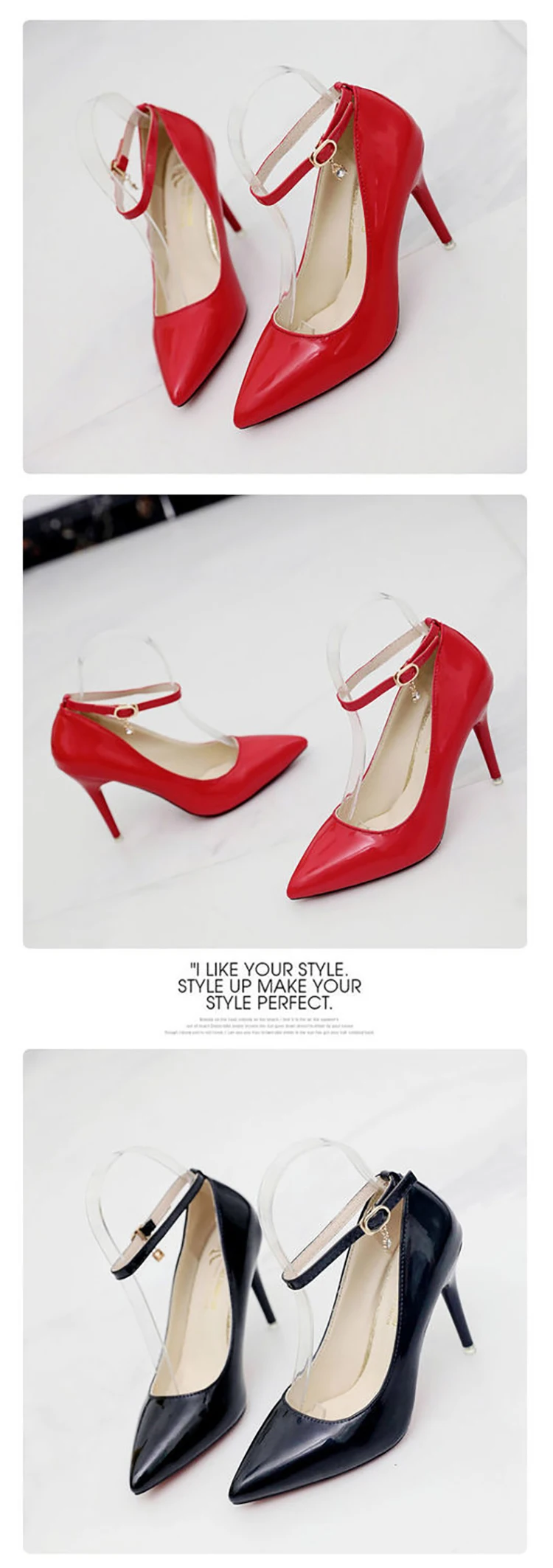 Aphixta 3.94inch Stiletto Heels Crystals Metal Buckle Pumps Women Pointed Toe Patent Leather Shoes Office Super Big Size 50