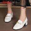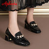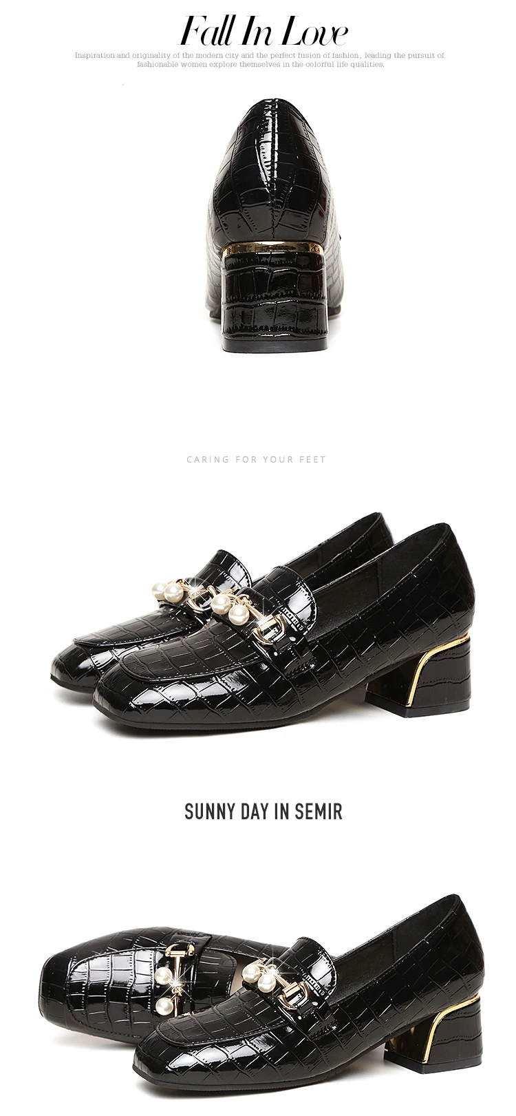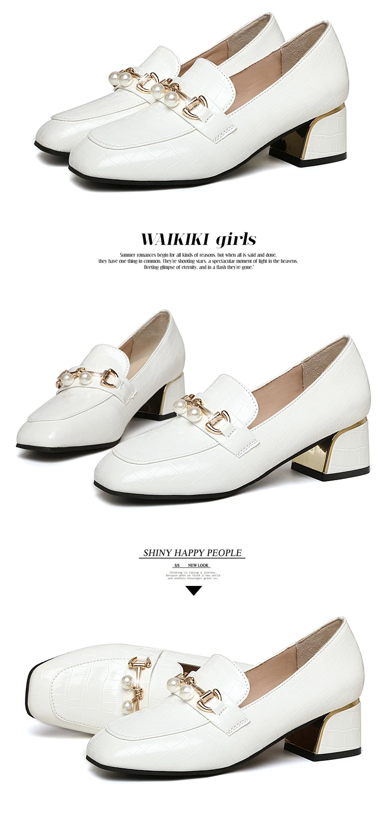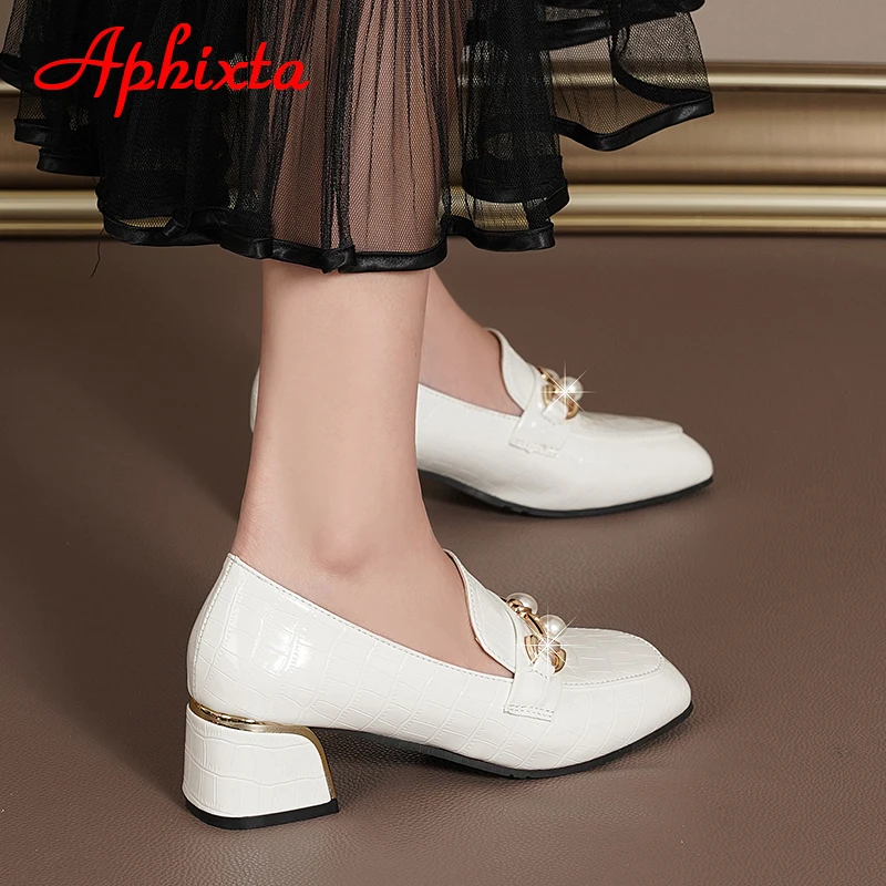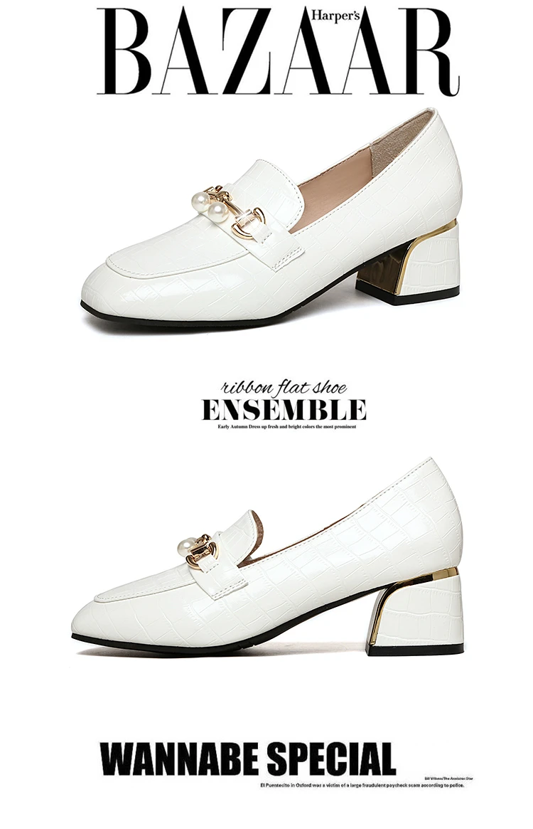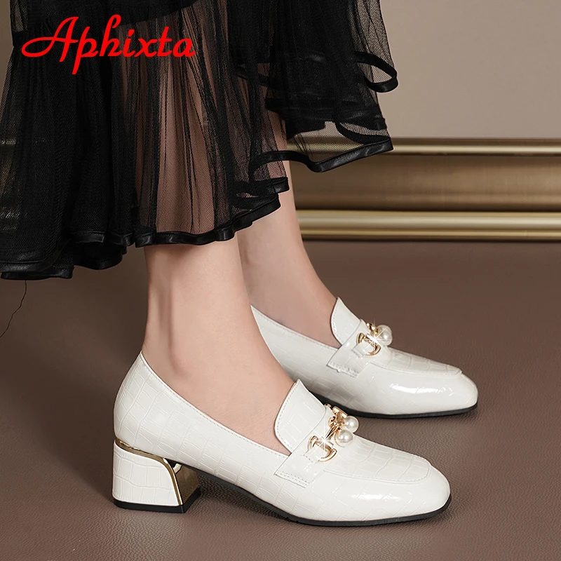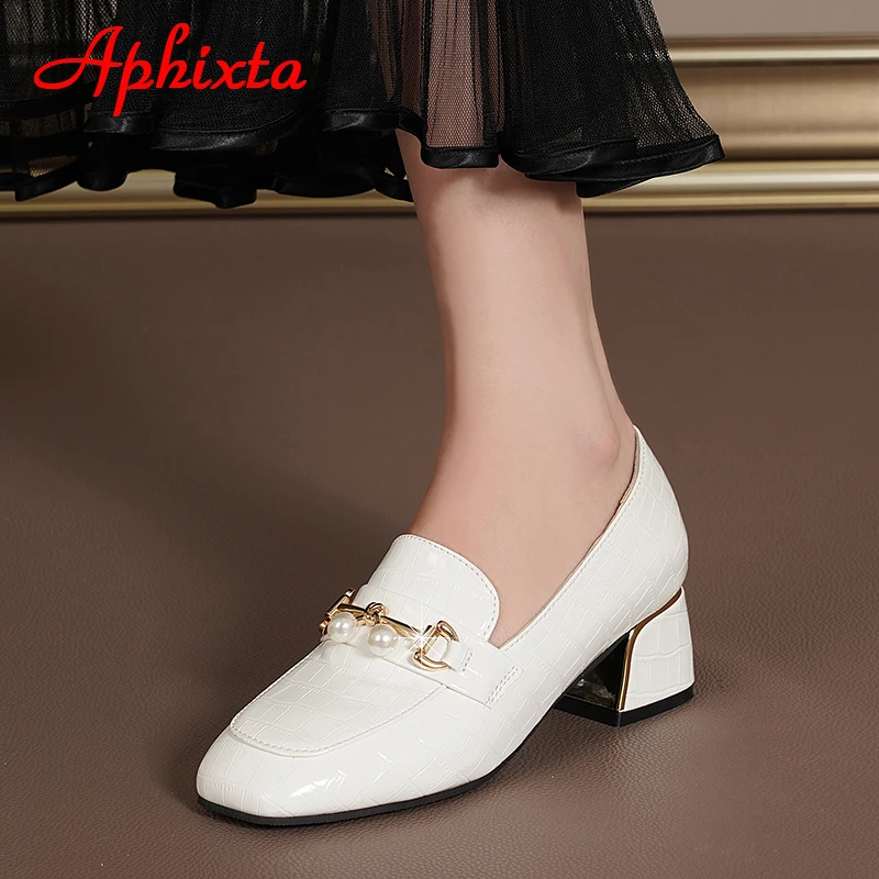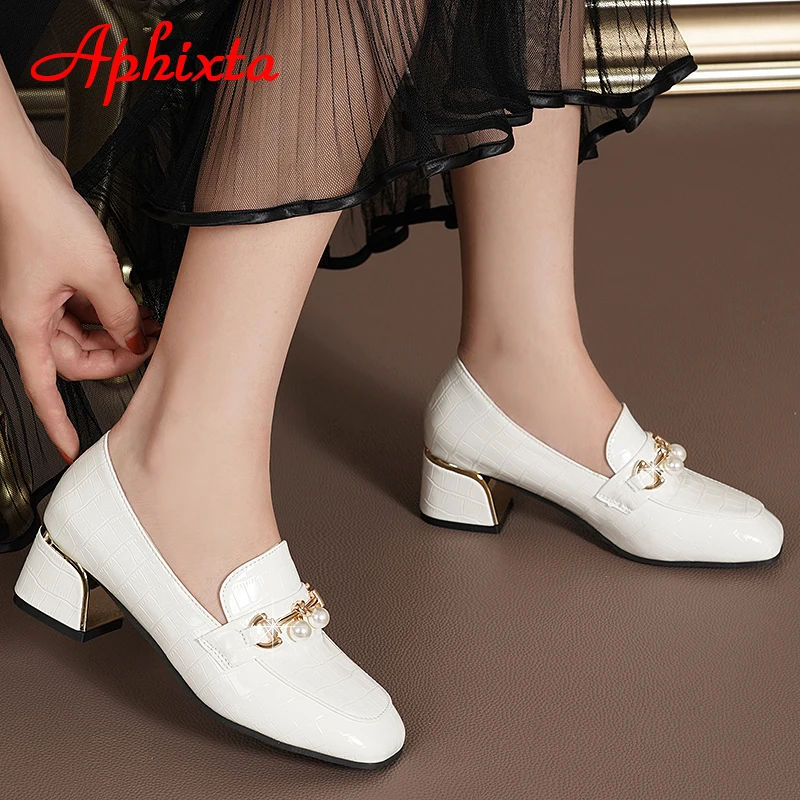 Aphixta 5cm Square Heels Pumps Patent Leather Pearl Buckle Shoes Girls Classics Toe Mary Janes Official Pumps Party Big Size 42