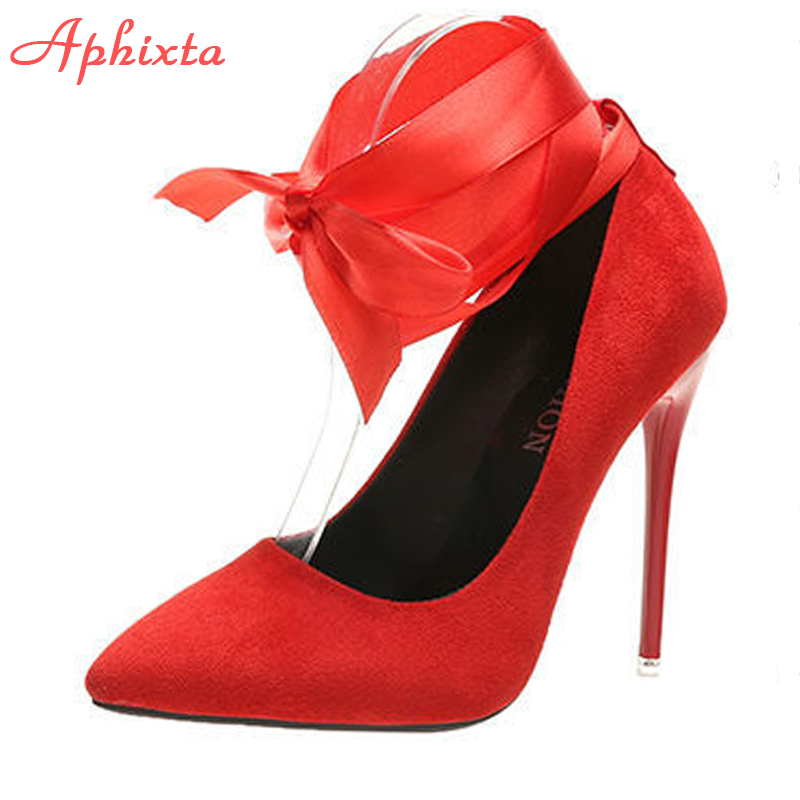 Aphixta 7cm Chunky Heels Denim Pumps Women Round Toe Shoes T-Strap Square Heels Fashion Big Pearl Chain Decorate Pumps