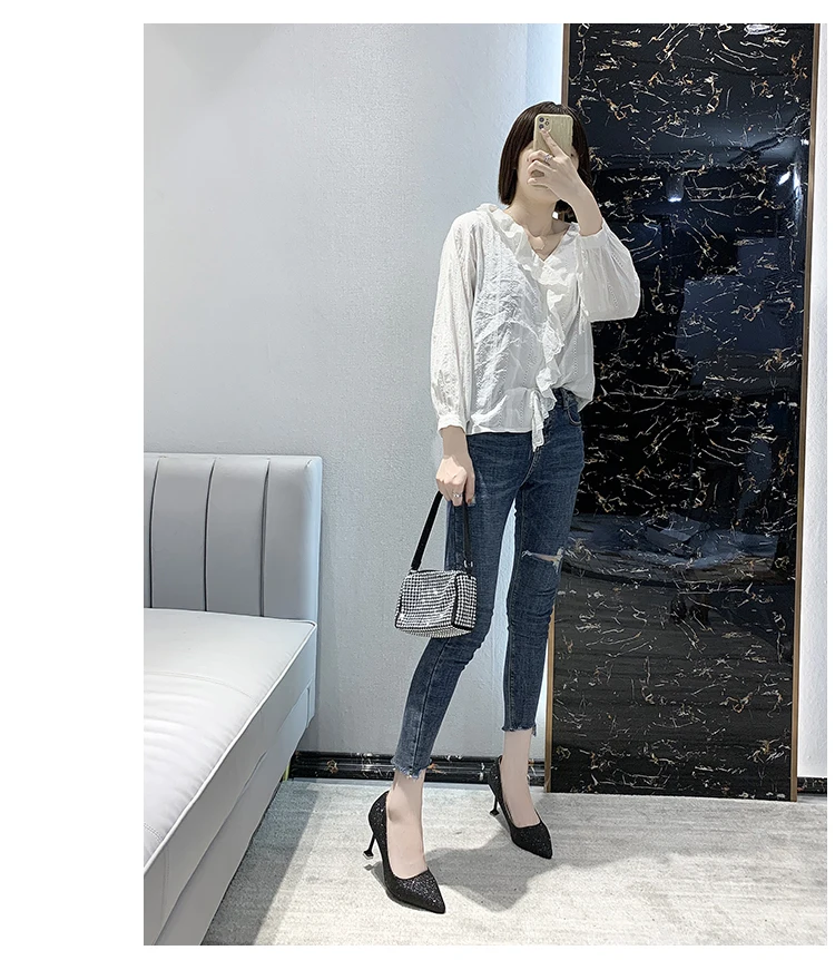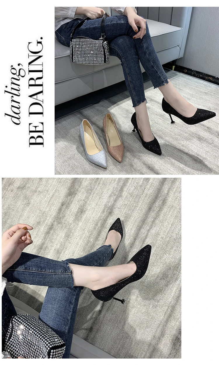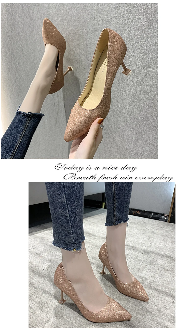 Aphixta 8cm Heels Sequined Pumps Shoes Woman High Thin Heels Lady Shoes Official Party Sexy Pumps Leisure Shoes Big Szie 43