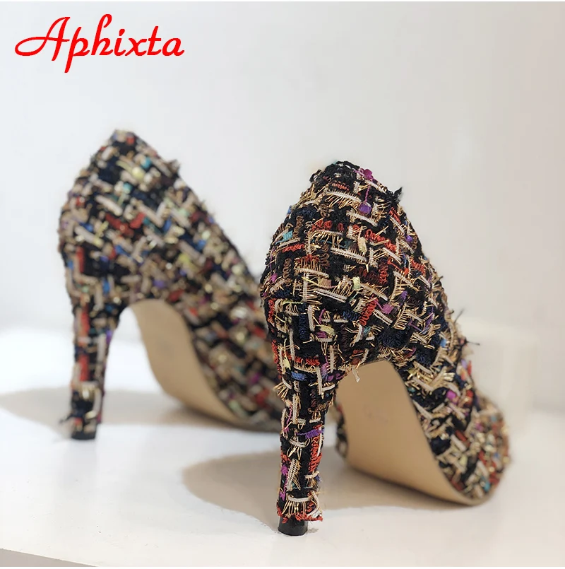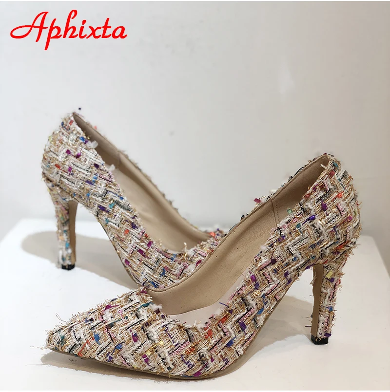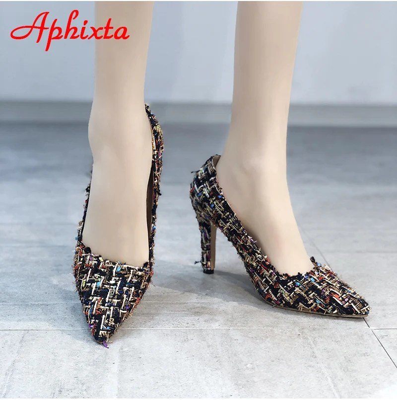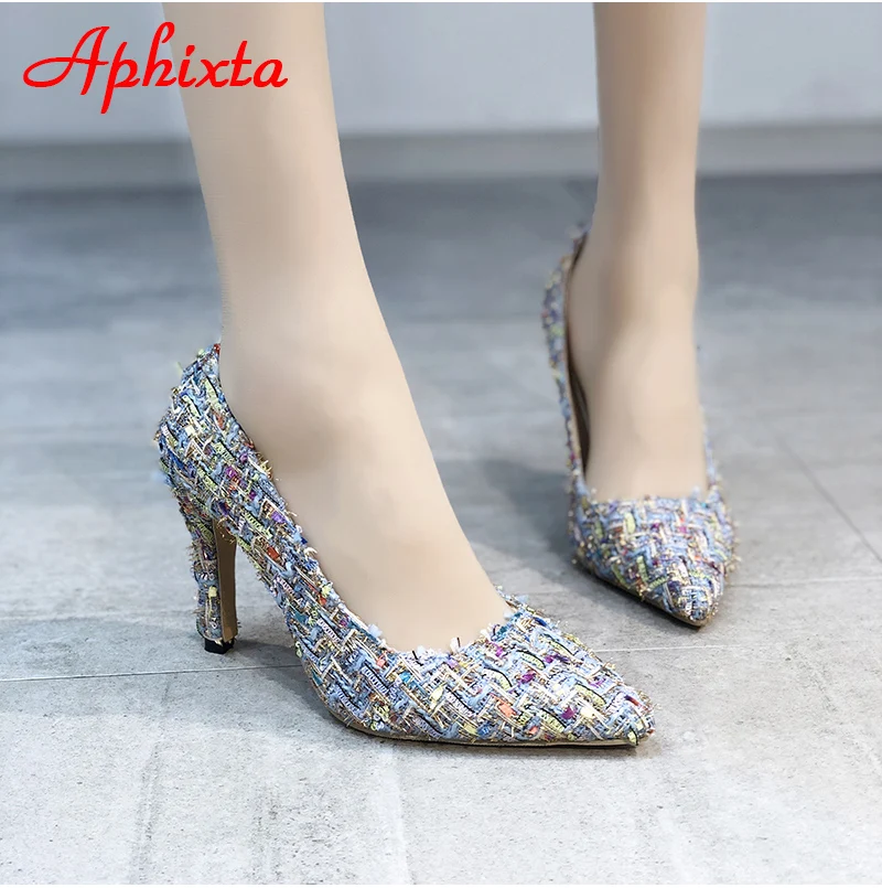 Aphixta 9cm Office Thin Heels Pumps Women Shoes Colorful Cloth Spike Heel Wedding Dress Shoes Woman Chaussures Femme Big Size 43
