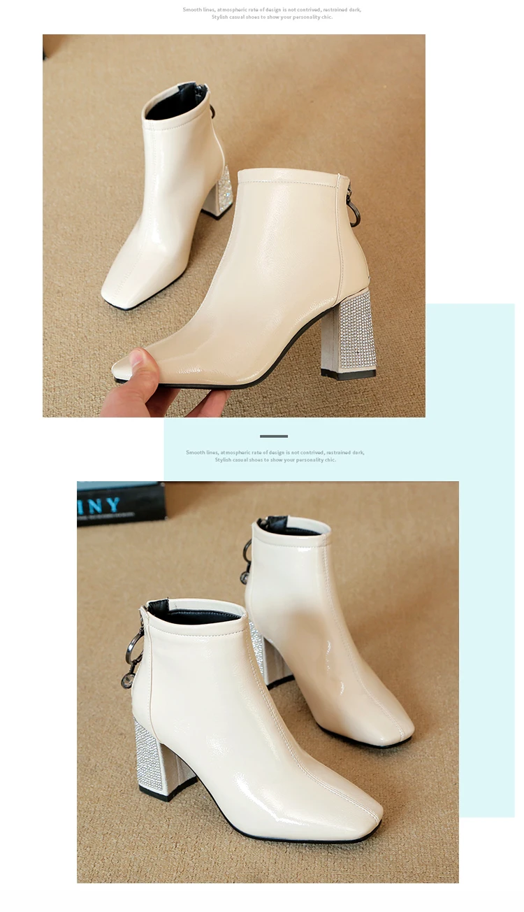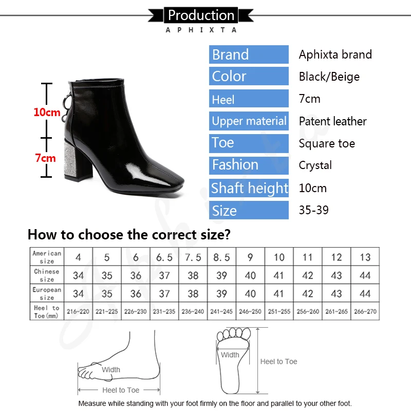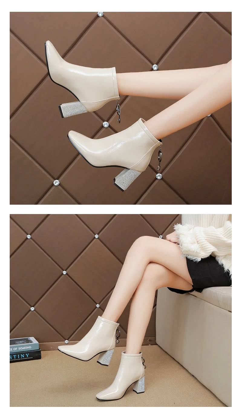 Aphixta Back Zipper Shoes Women Boots Crystal Square Heel Ankle Boots For Women Botines Mujer Ladies Shoes Fashion Woman Shoes