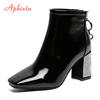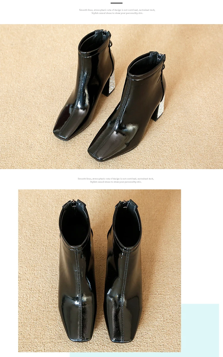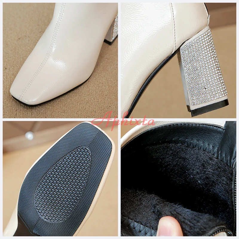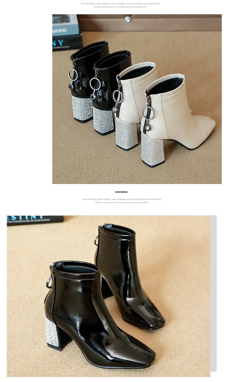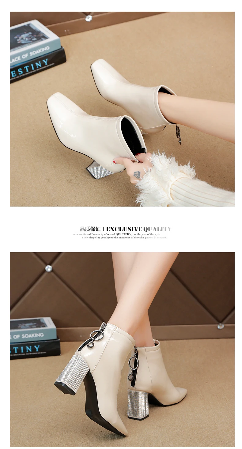 Aphixta Back Zipper Shoes Women Boots Crystal Square Heel Ankle Boots For Women Botines Mujer Ladies Shoes Fashion Woman Shoes