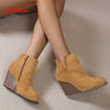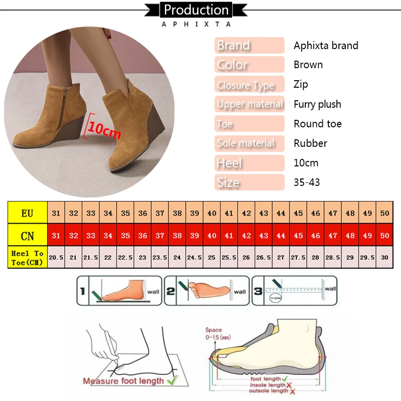 Aphixta Big Size 43 Wedges Heel Boots Women Round Toe Side Zipper Brown Wedege Heel Ankle Boots Women Shoes Plus Size 42