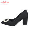 Aphixta Big Size 48 Pumps Women 7cm 5cm Square Heels Pearl Buckle Shoes Woman Classics Pointed Toe Dress Official Party Shoes