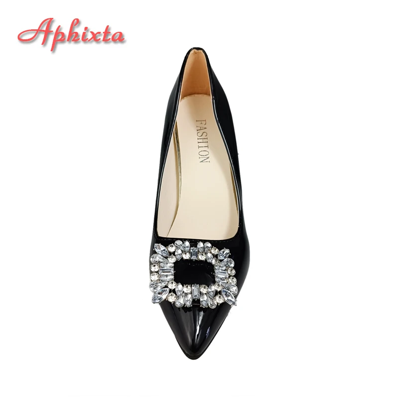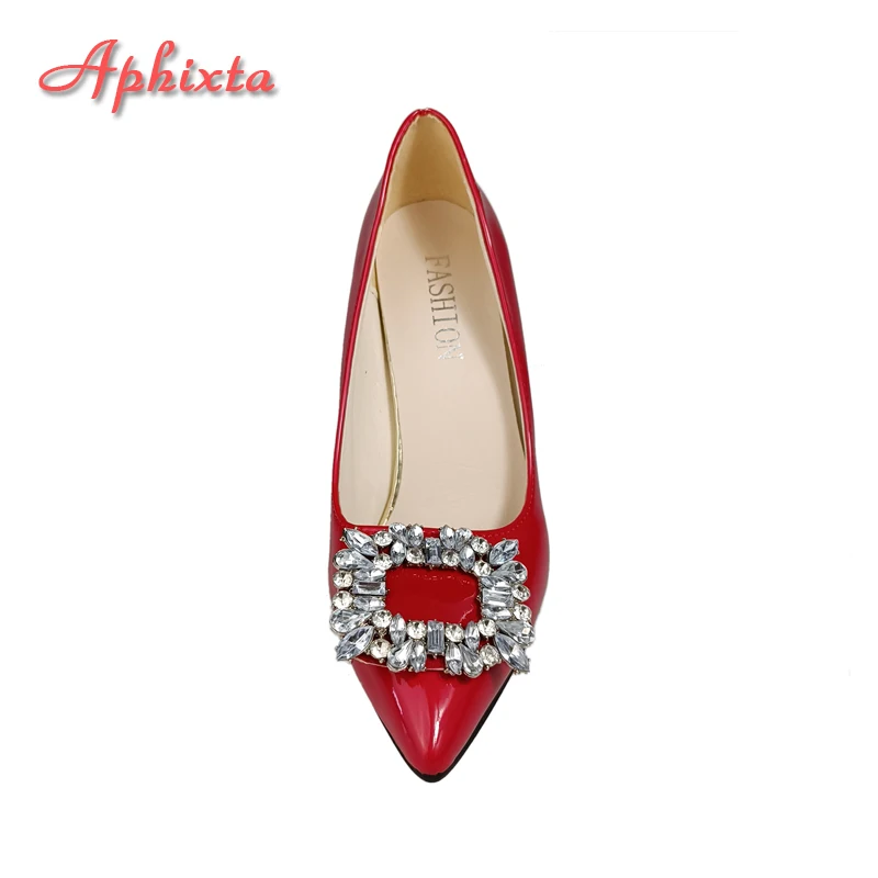 Aphixta Bling Luxury Crystals Buckle Pumps Women Red 10cm Stiletto Heels Patent Leather Office Casual Shoes Big Size 49 50