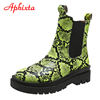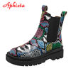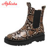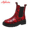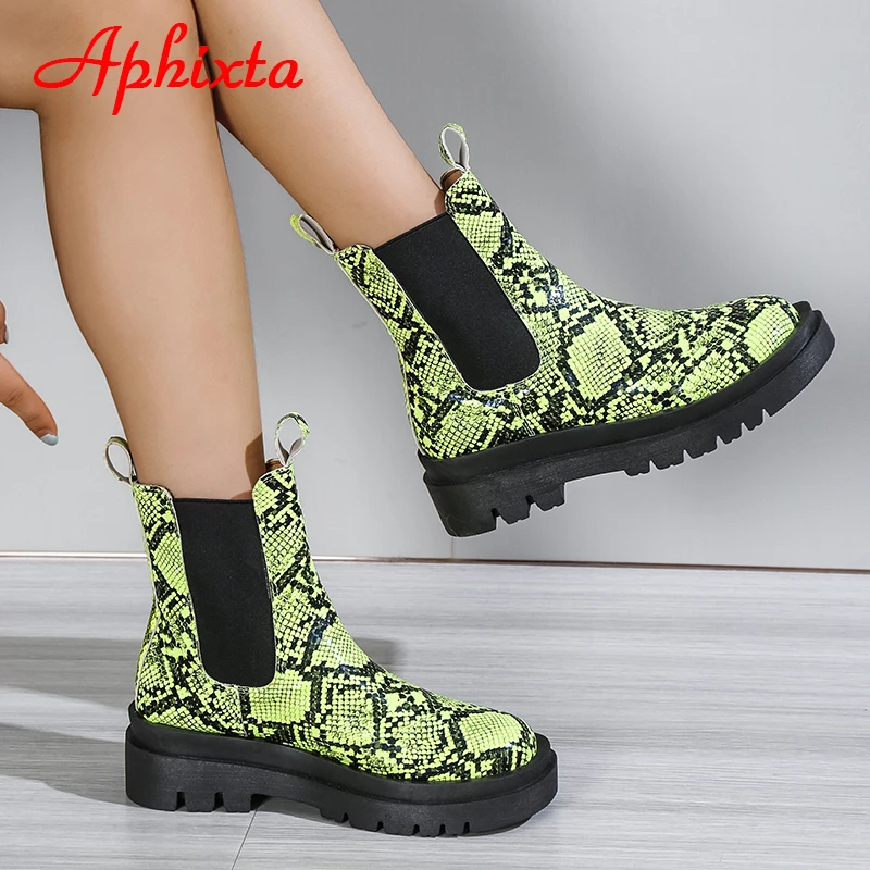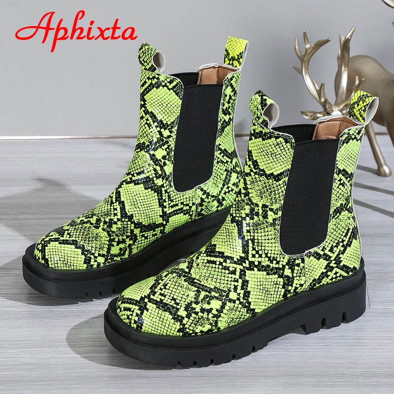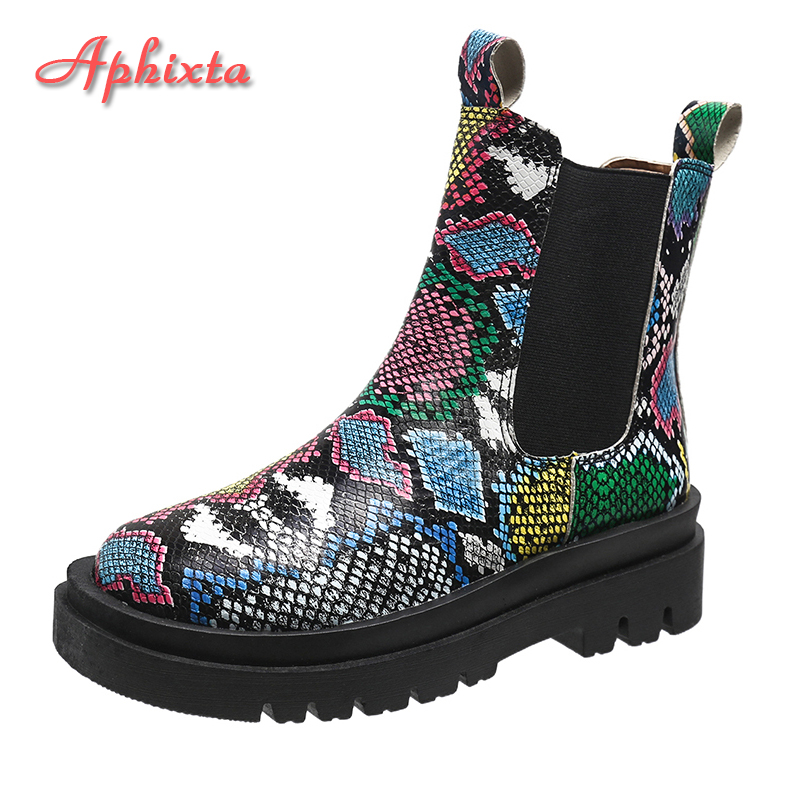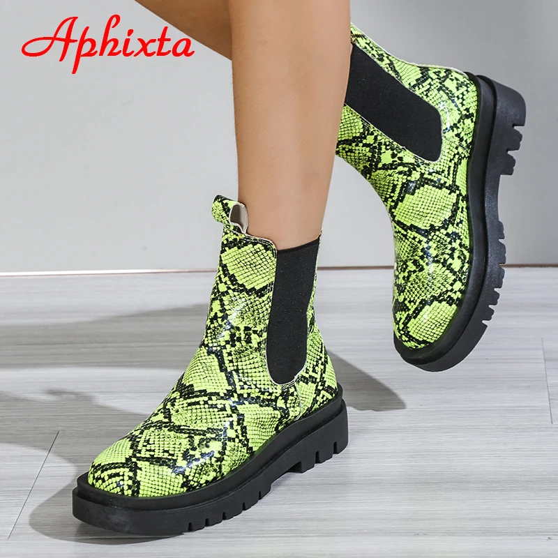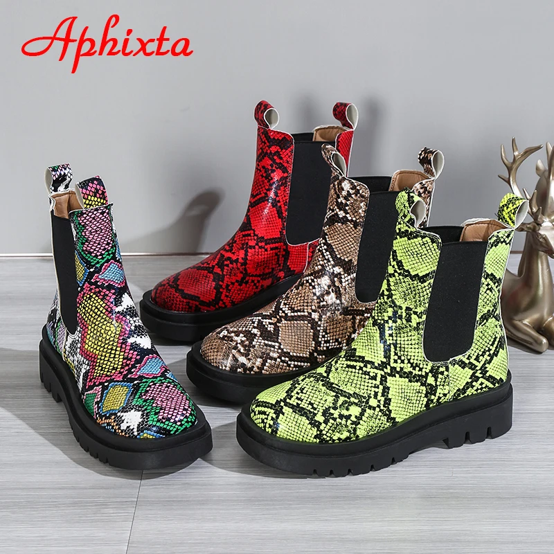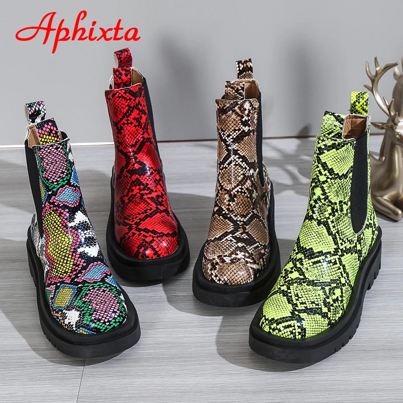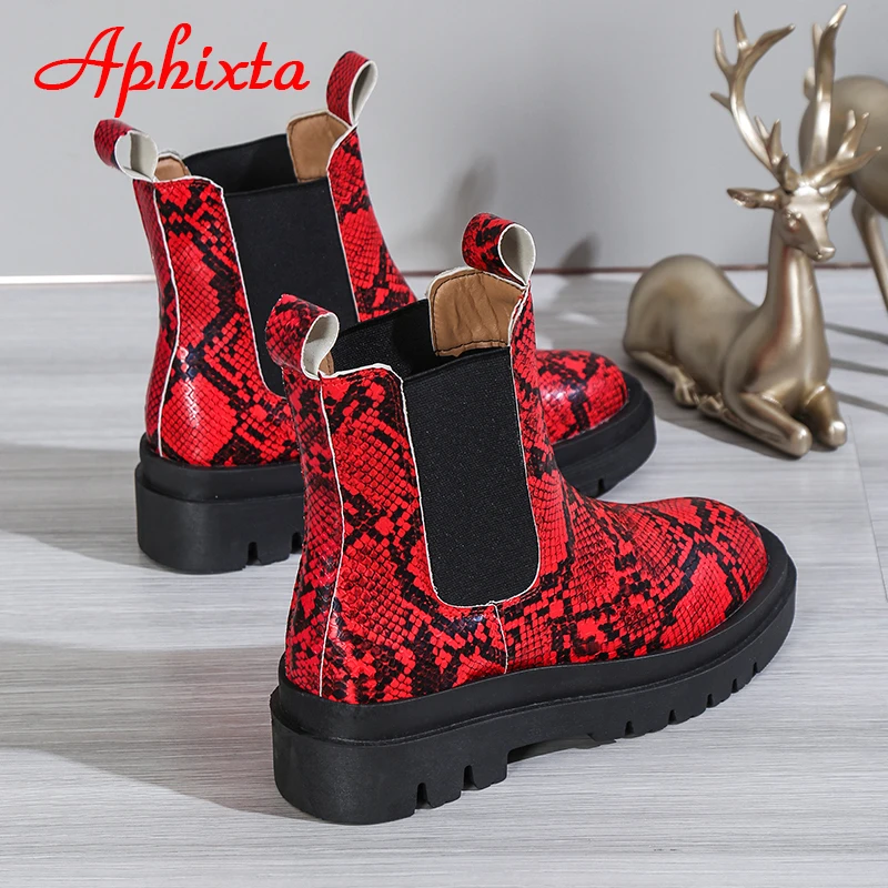 Aphixta Double Layer Women Short Boots Snake Prints Elastic Band Ankle Boots Casual Punk Shoes Motorcycle Boots Plus Size 43