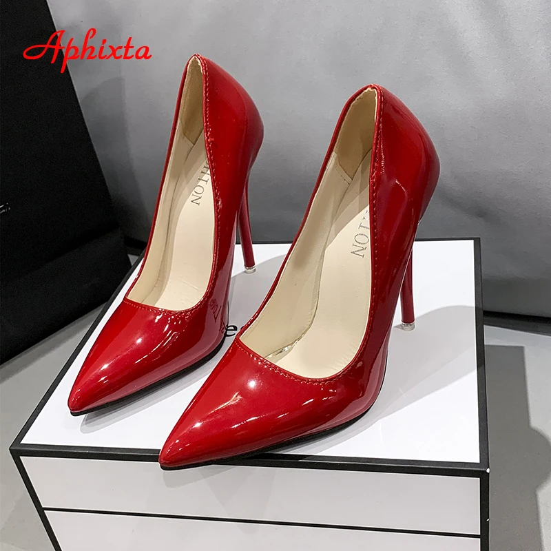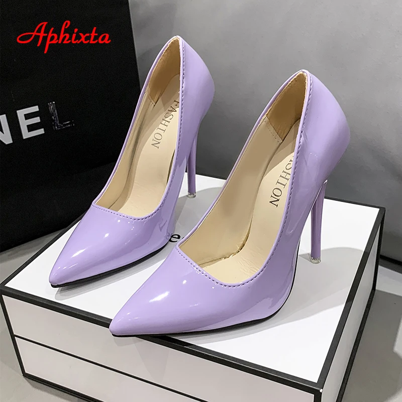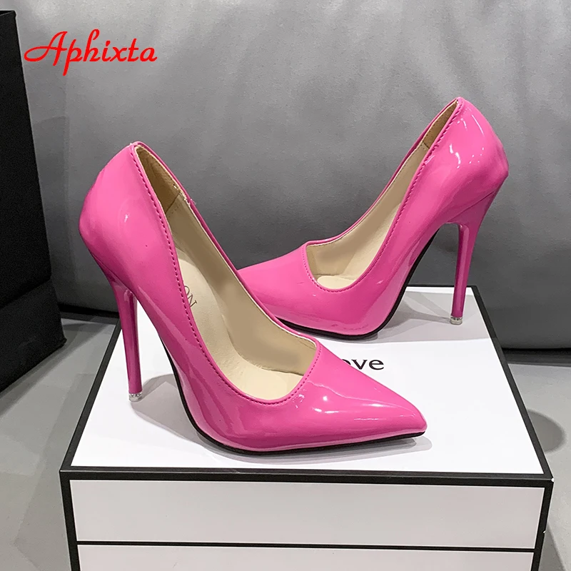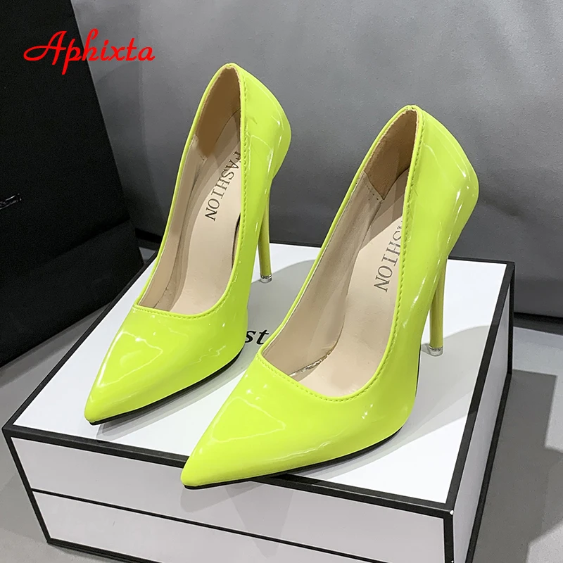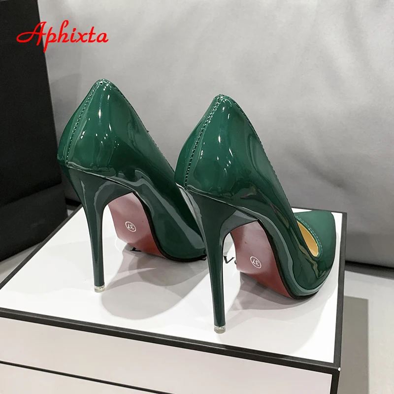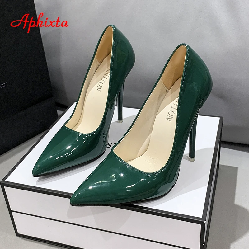 Aphixta Four Seasons Green Super High 12cm Stiletto Heels Women's Pumps Fashion Pointed Toe Patent Leather Office Shoes Plus 45