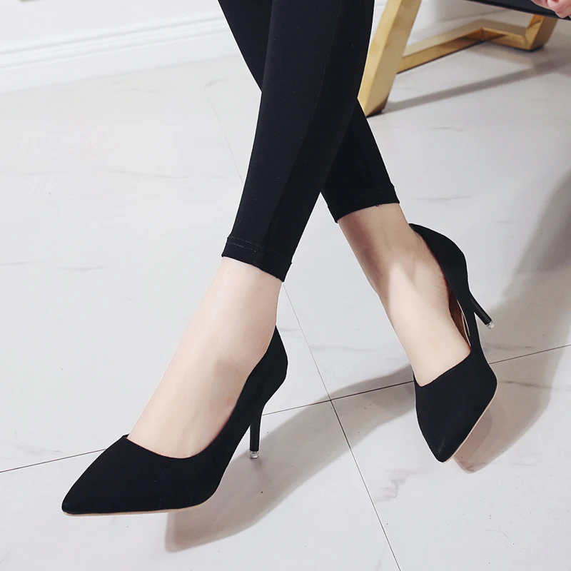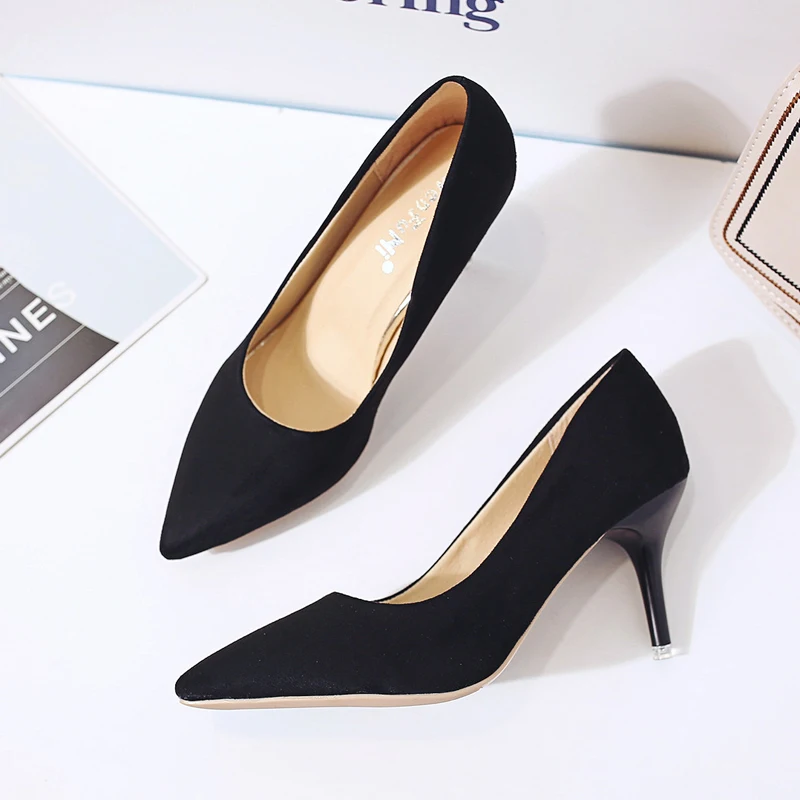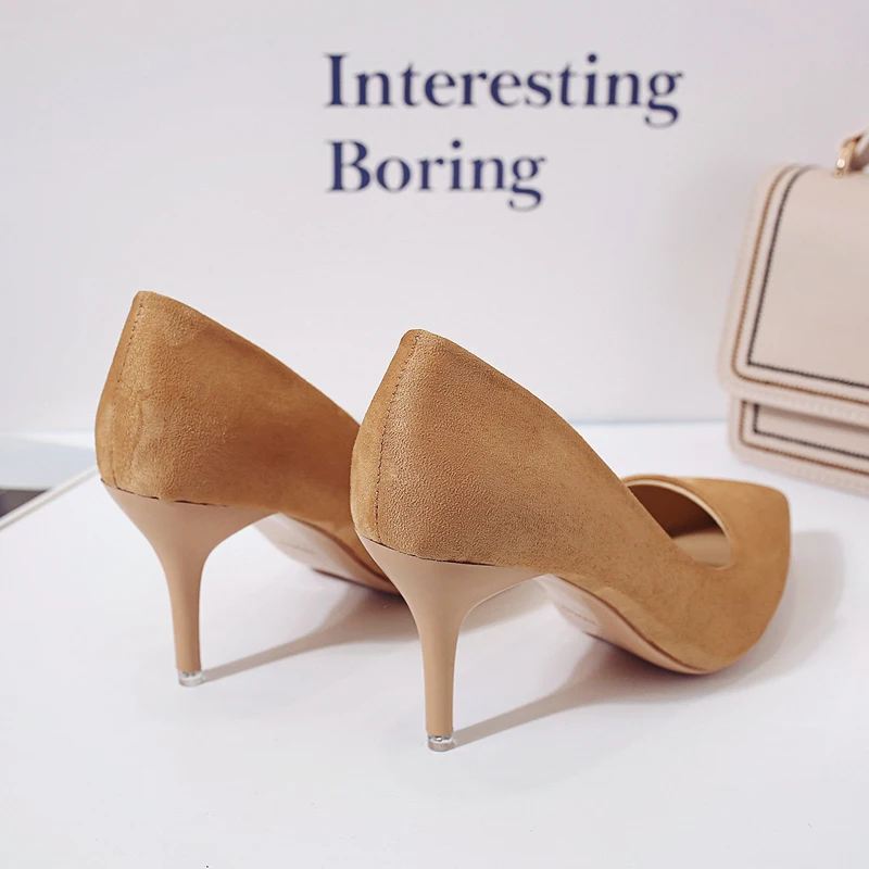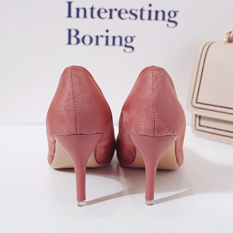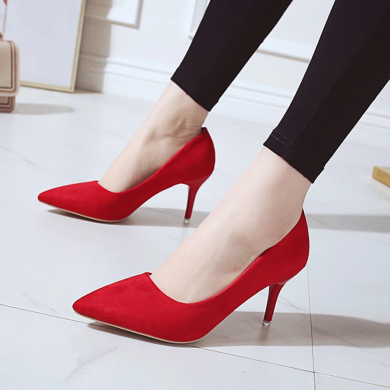 87 Product Description Upper Material: Flock Outsole Material: Rubber Heel Height: 8 cm Season: Winter/Spring/Autumn Fit Size: Pls choose the shoes size refer to your foot length. Closure Type: Slip-on Item Type: Pumps For women Color: Leopard/Pink/Beige/Green/Red/Black
