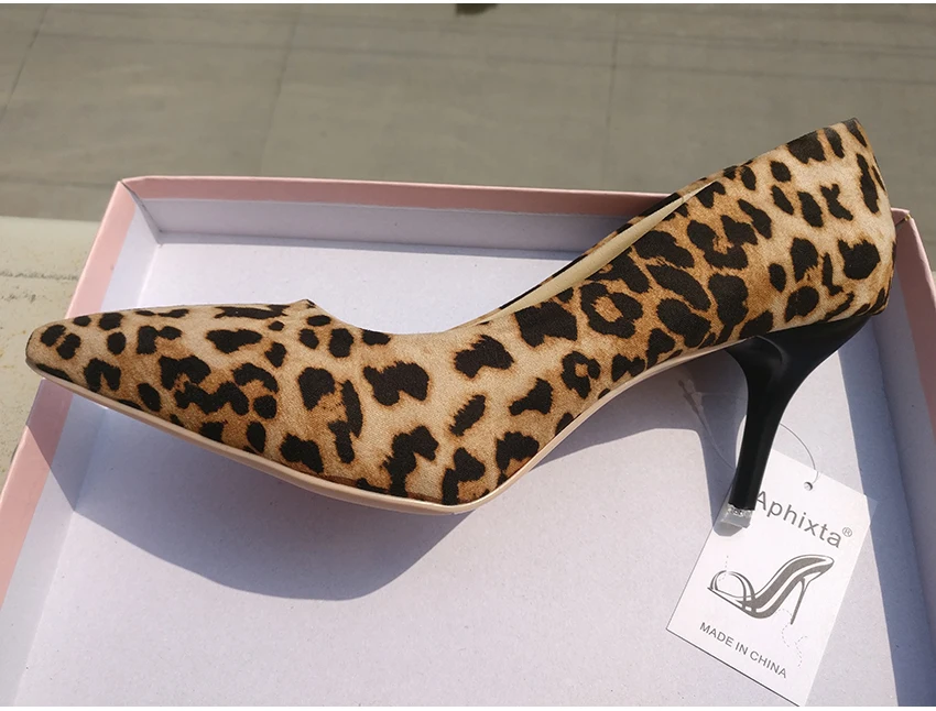 Aphixta Leopard Shoes Woman Heels Pumps High Nude 8cm Thin Heels Wedding Shoes Party Ladies Shoes Classic Pumps Big Size 44