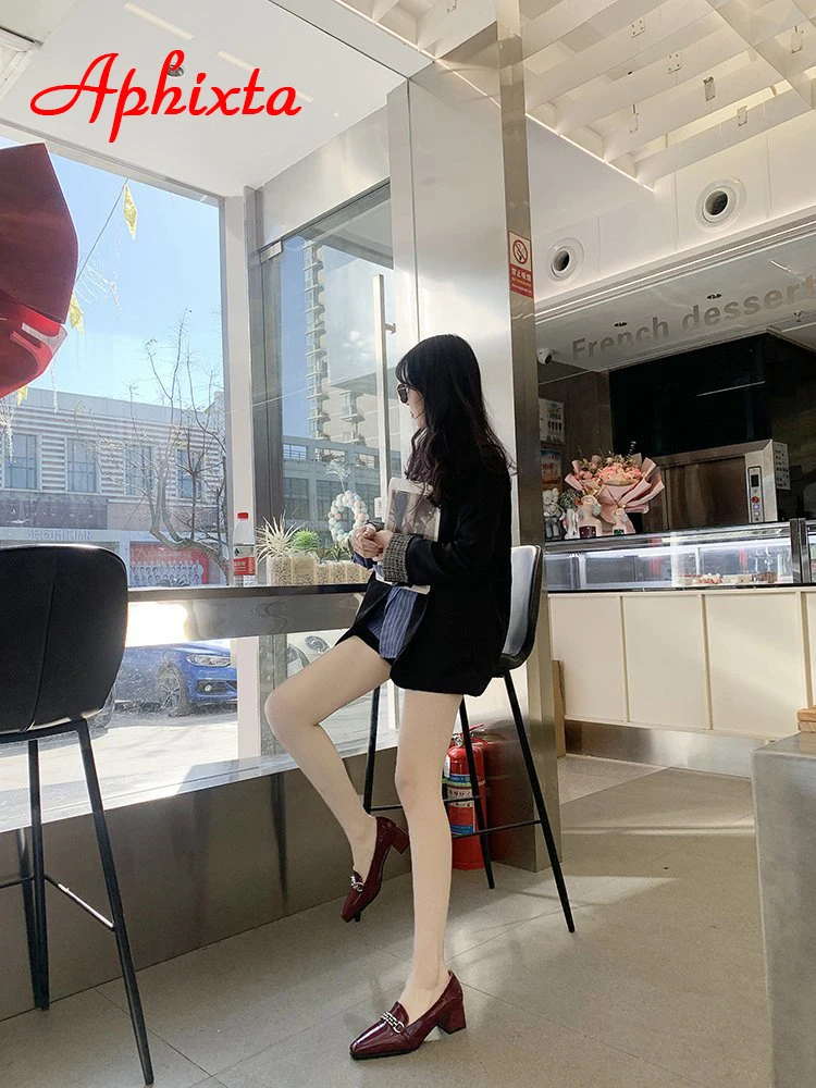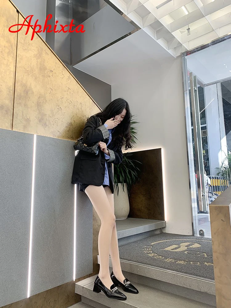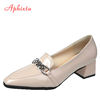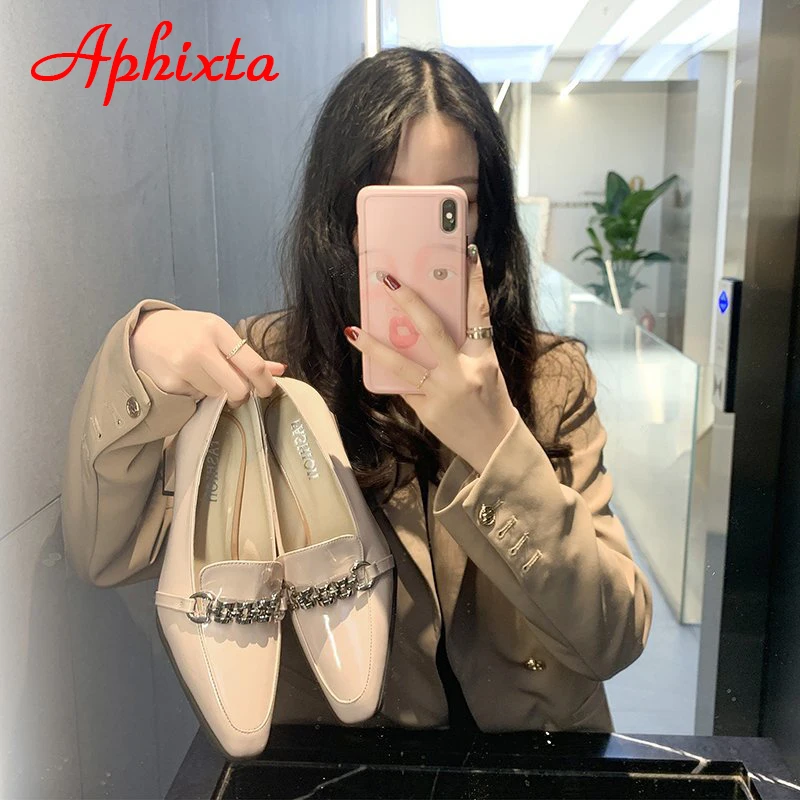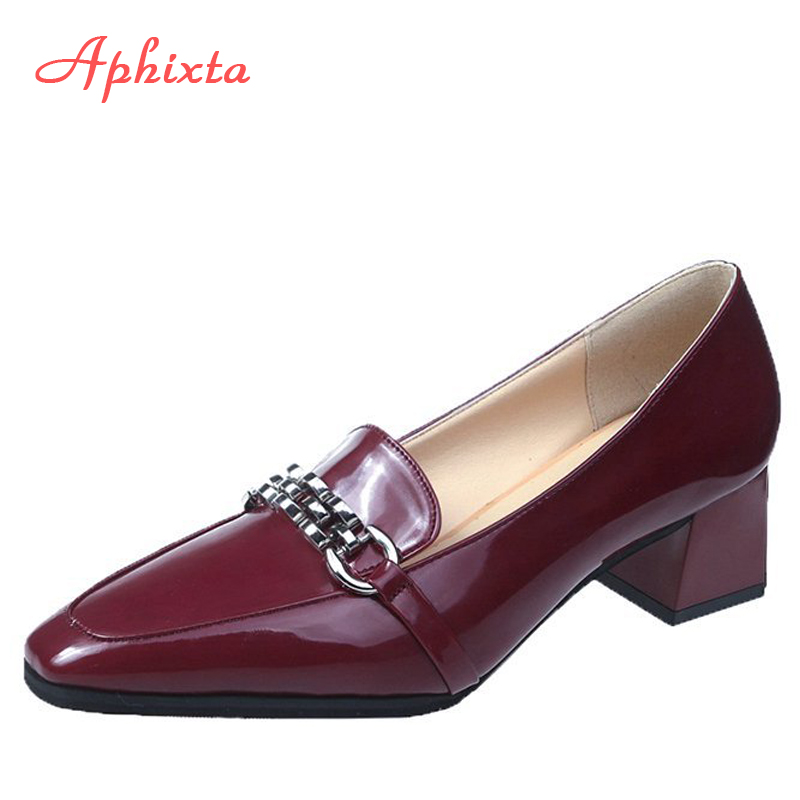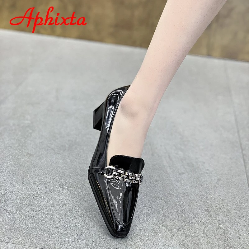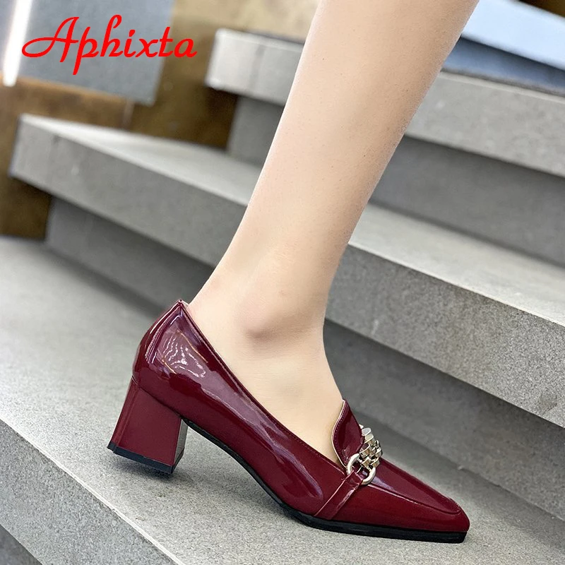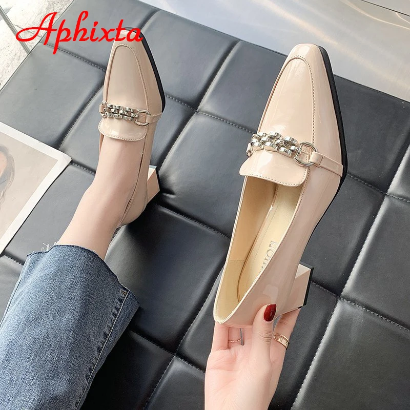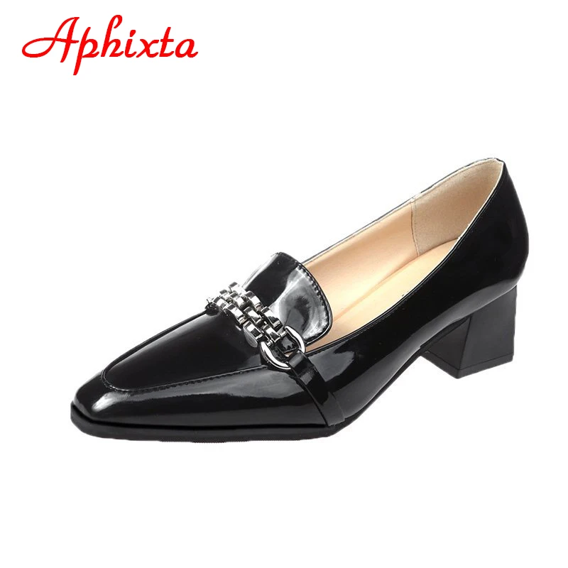 Aphixta Little Square Toe Shoes Women Pumps Metal Chain Buckle Square Heels Bling Fashion Work Office Party Shoes