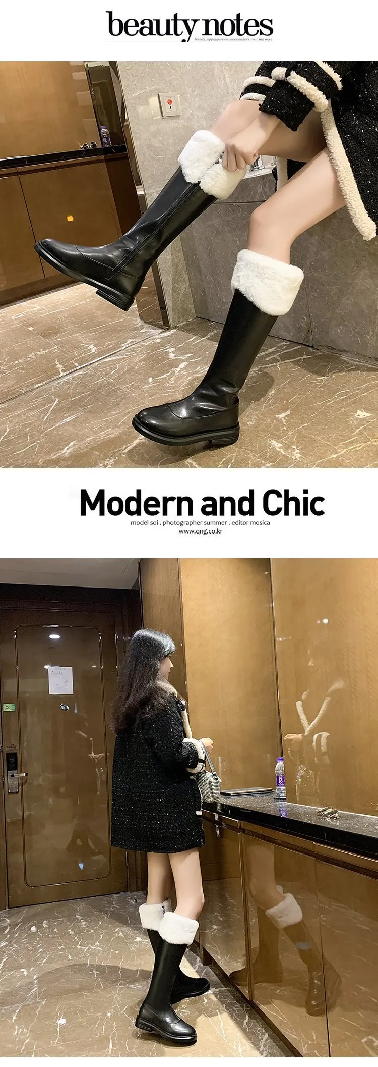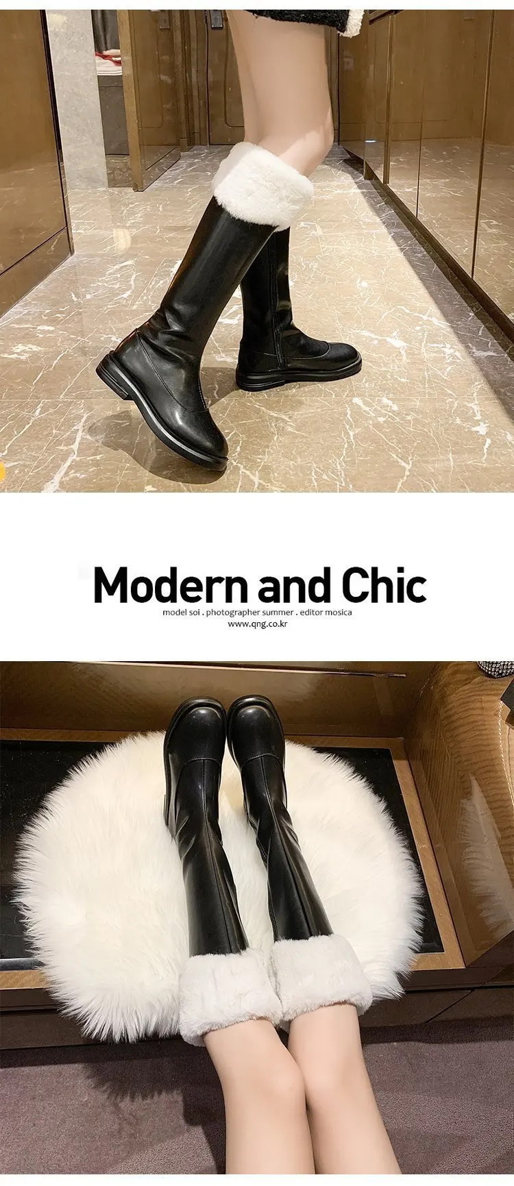 Aphixta Long Furry Snow Boots Women High Boots Women's Rain Boots Outdoor Water Shoes For Female Winter Boots Botas De Mujer