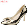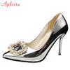 Aphixta Luxury Pearl Buckle Pumps Women 10cm Thin Heels Crystals Bling Patent Leather Office Casual Shoes Big Size 50