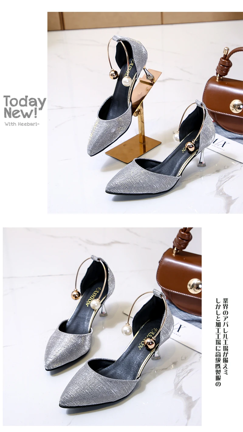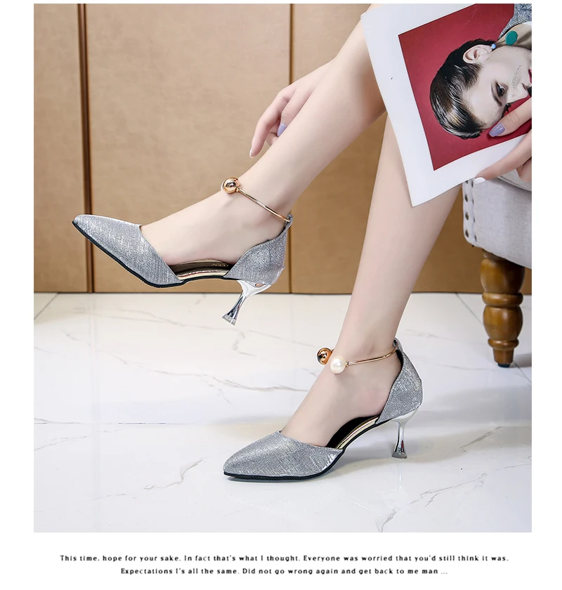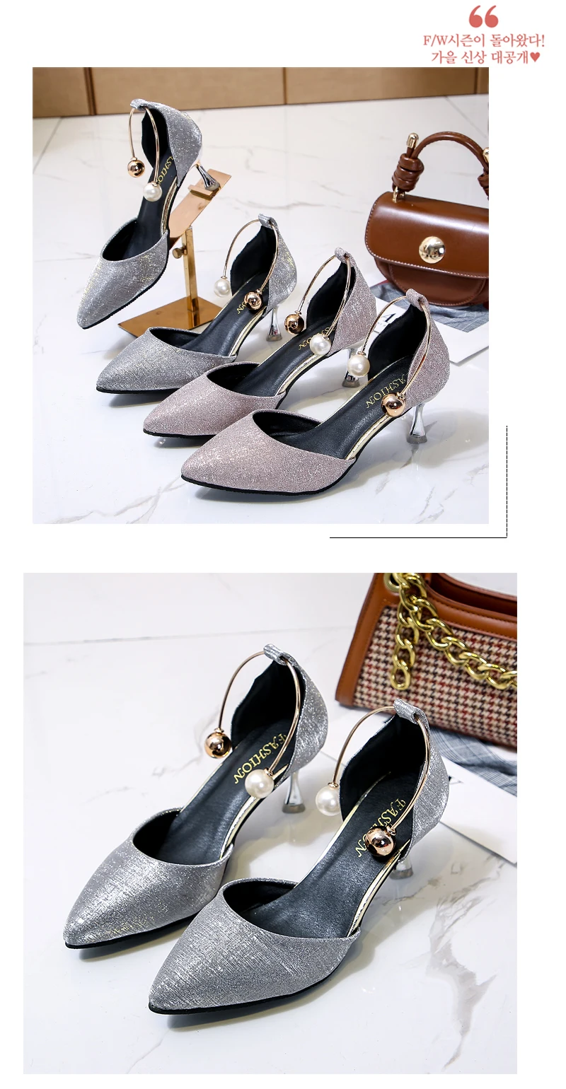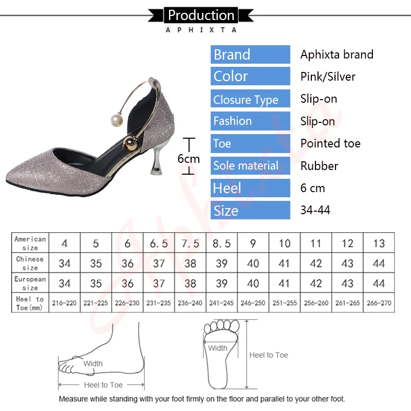 Aphixta Luxury Pearl Metal Summer 6cm Heels Shoes Women Pointed Toe Pumps Wedding Party Shoes Sandals For Women Big Size 44