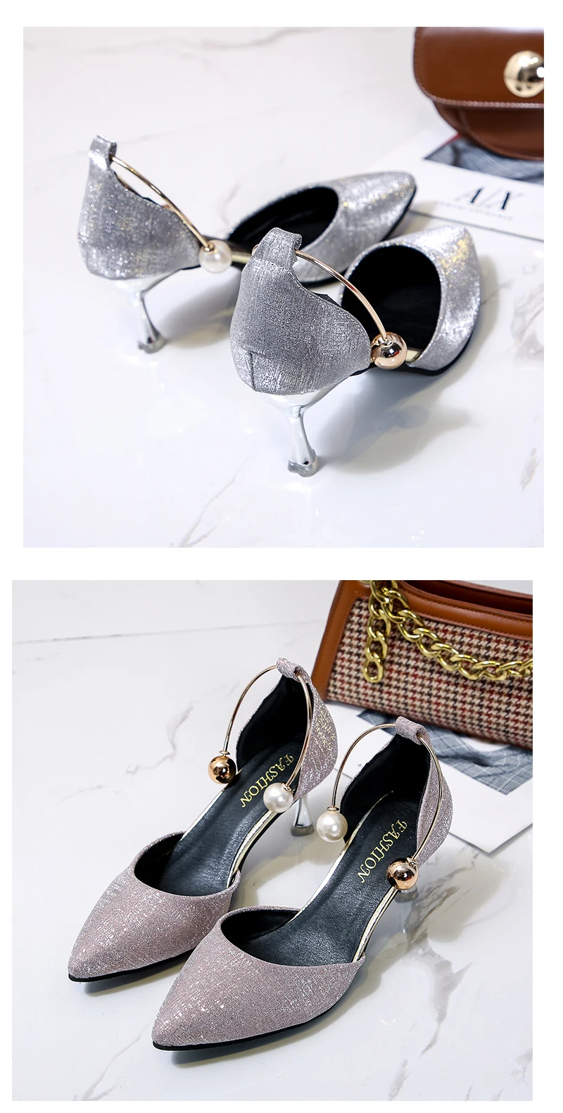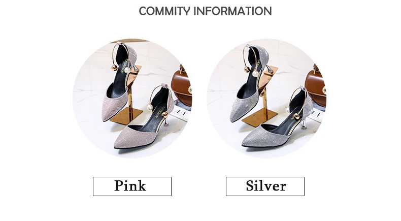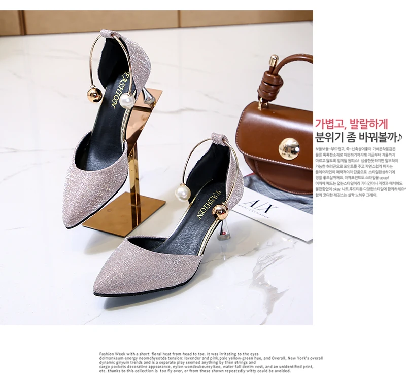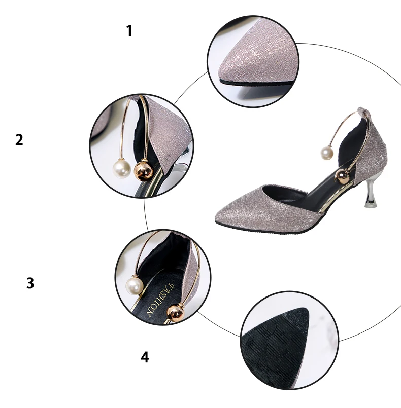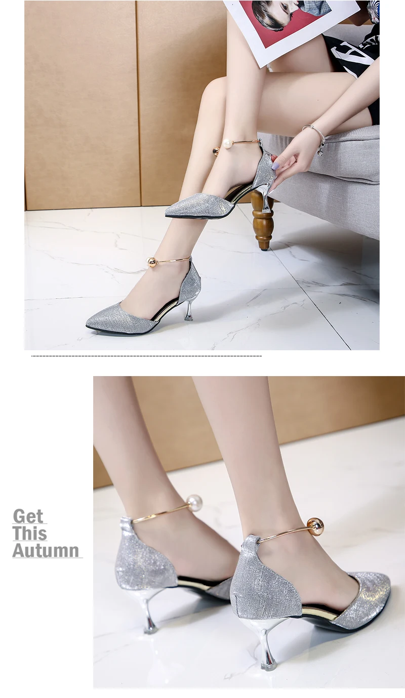 Aphixta Luxury Pearl Metal Summer 6cm Heels Shoes Women Pointed Toe Pumps Wedding Party Shoes Sandals For Women Big Size 44