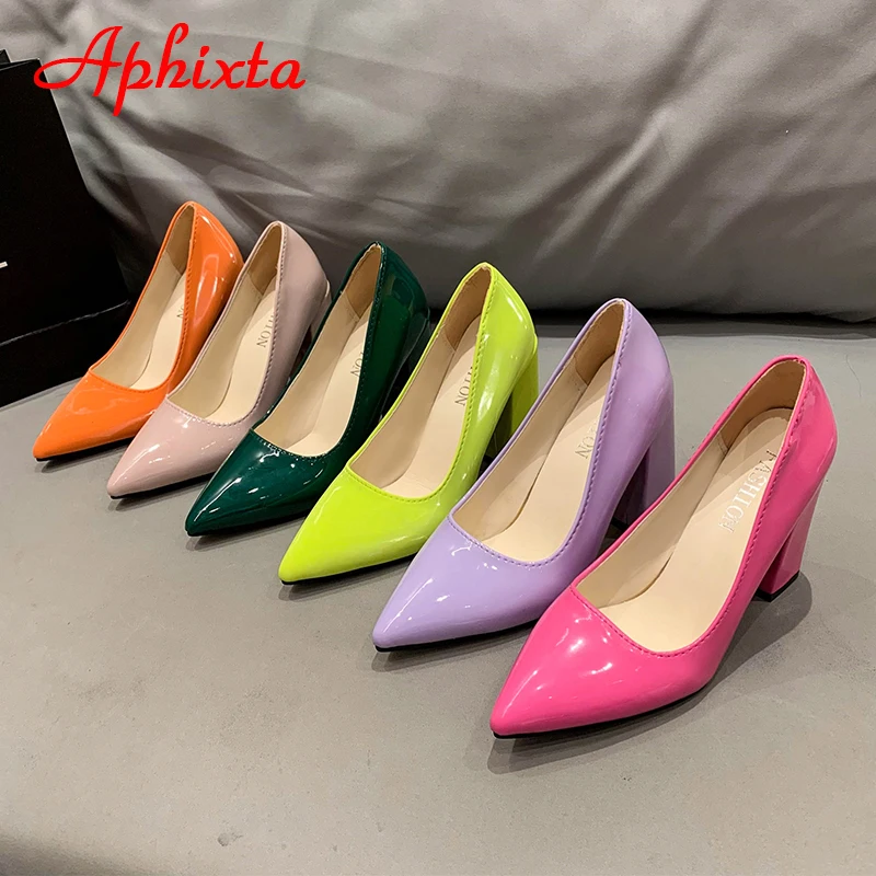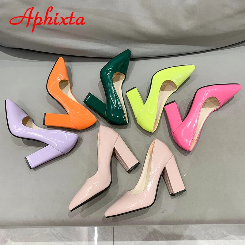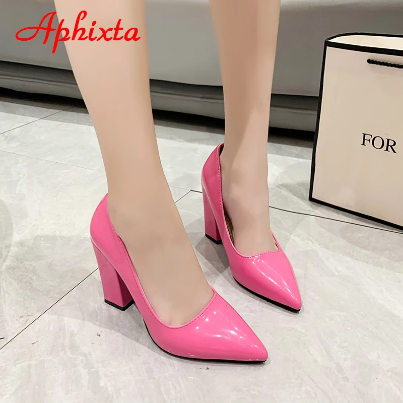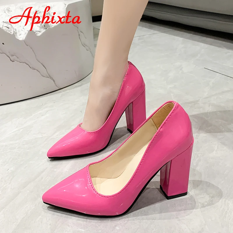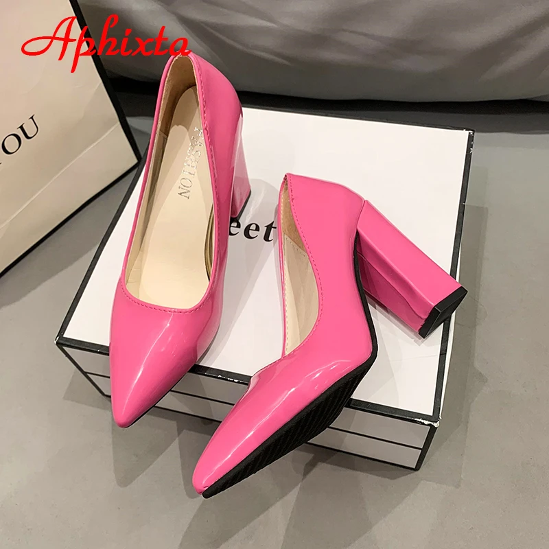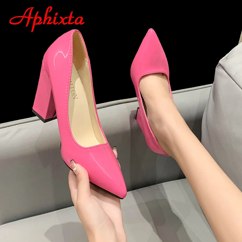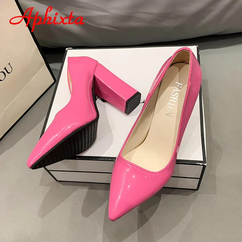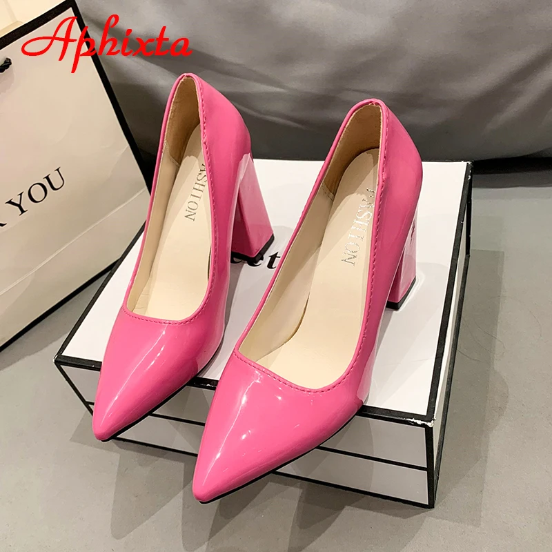 Aphixta New Barby Pink Pumps Women Shoes 10cm Square Heels Patent Leather Multicolor Party Leisure Super Big Szie 31-50