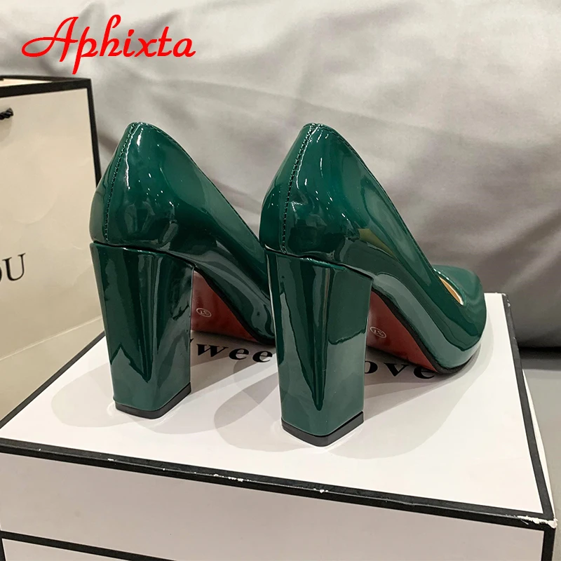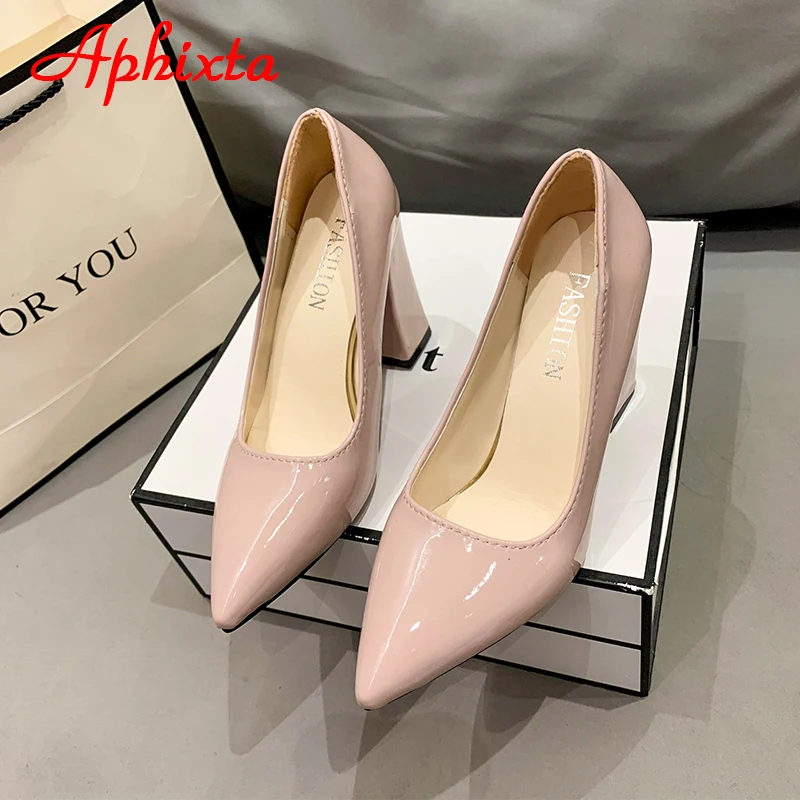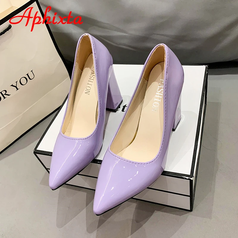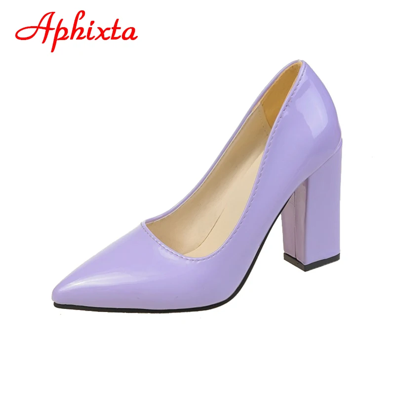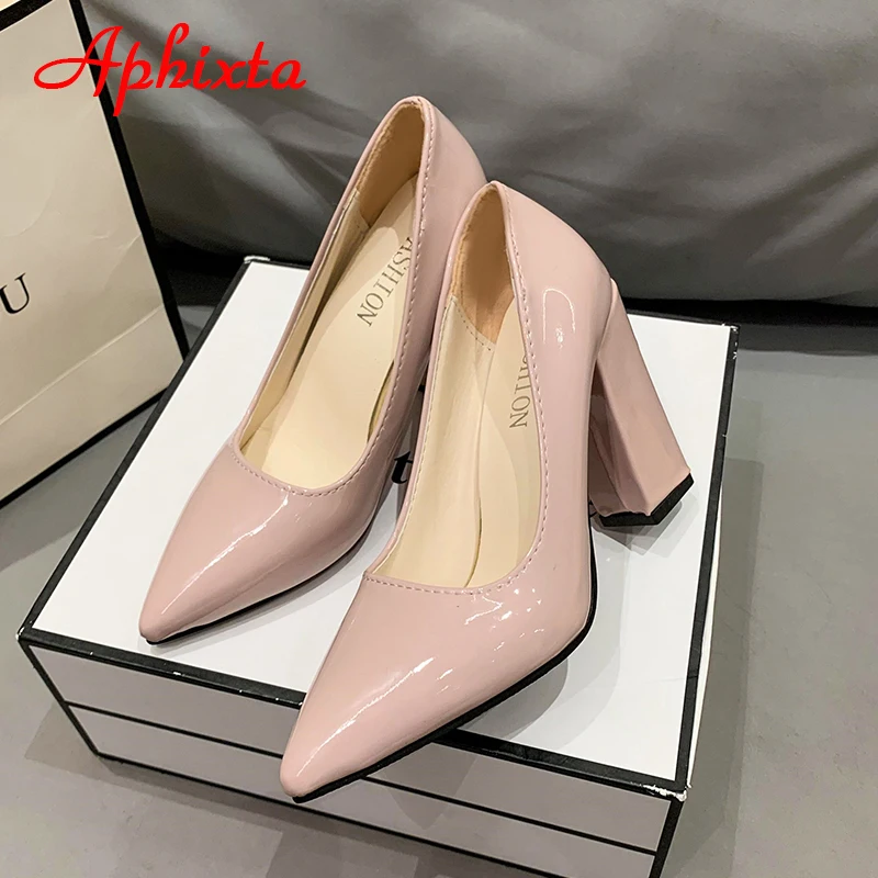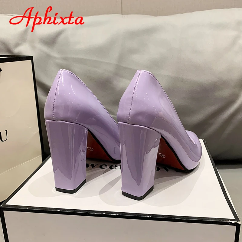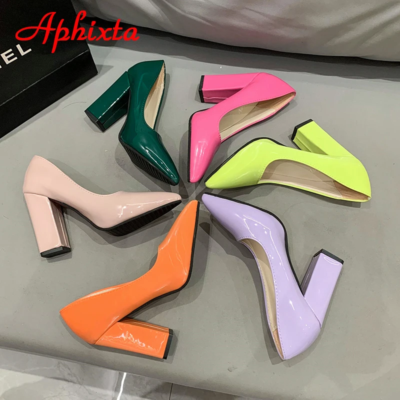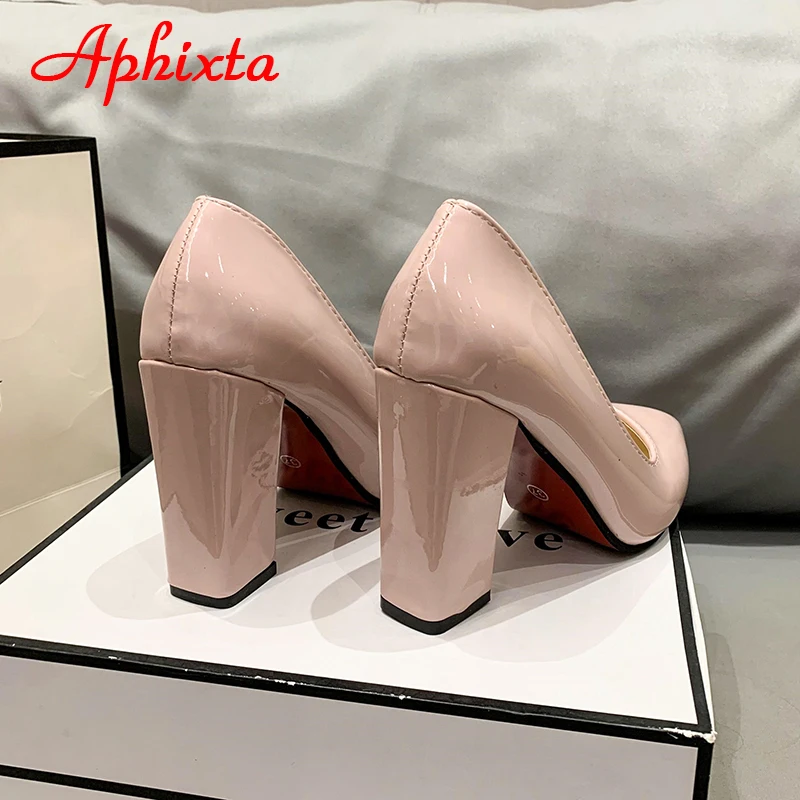 Aphixta New Barby Pink Pumps Women Shoes 10cm Square Heels Patent Leather Multicolor Party Leisure Super Big Szie 31-50