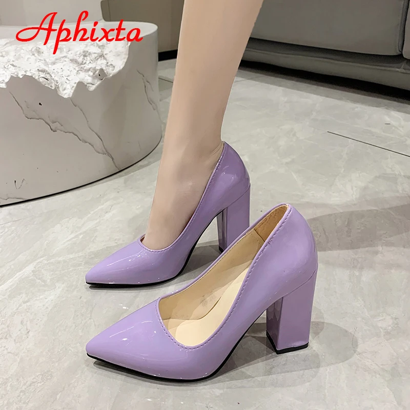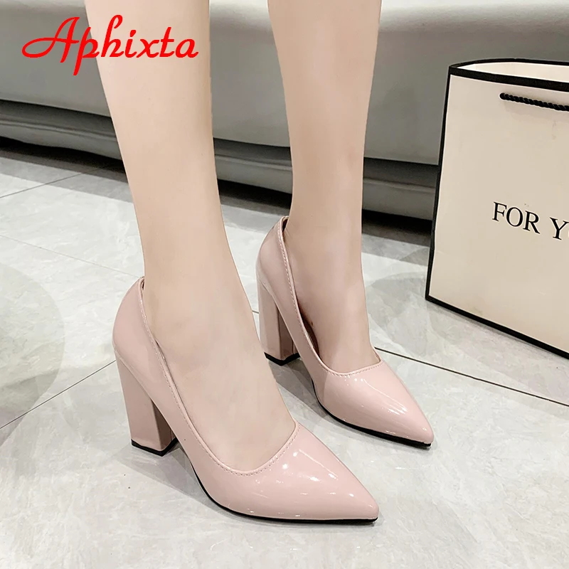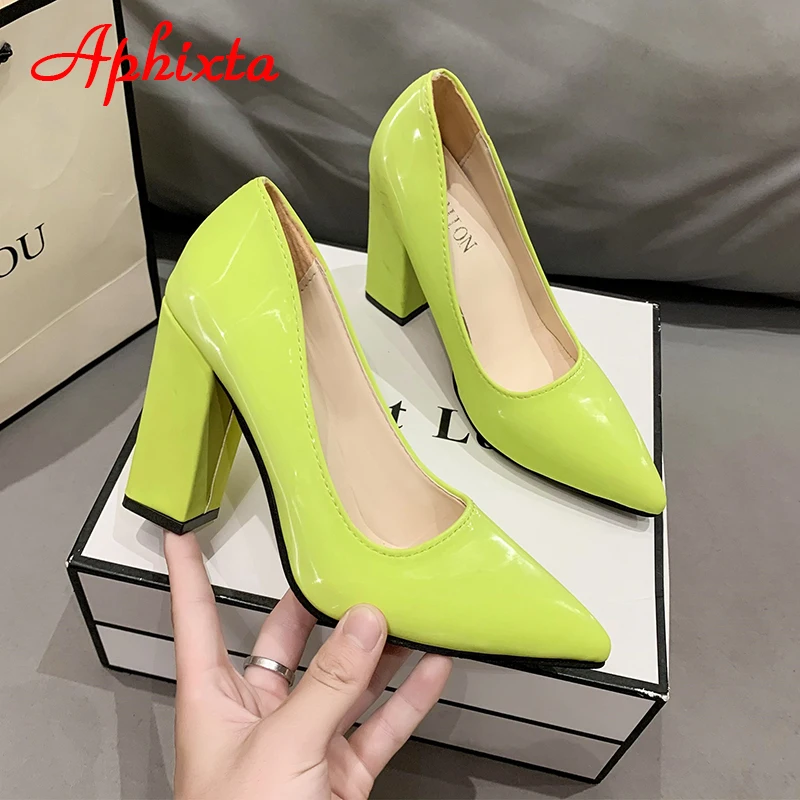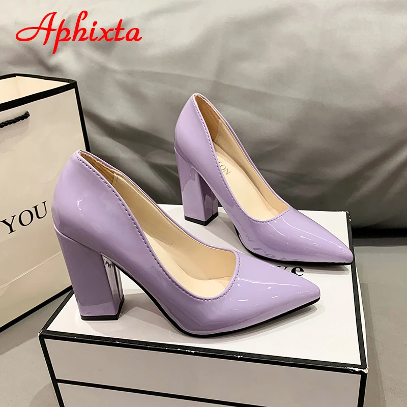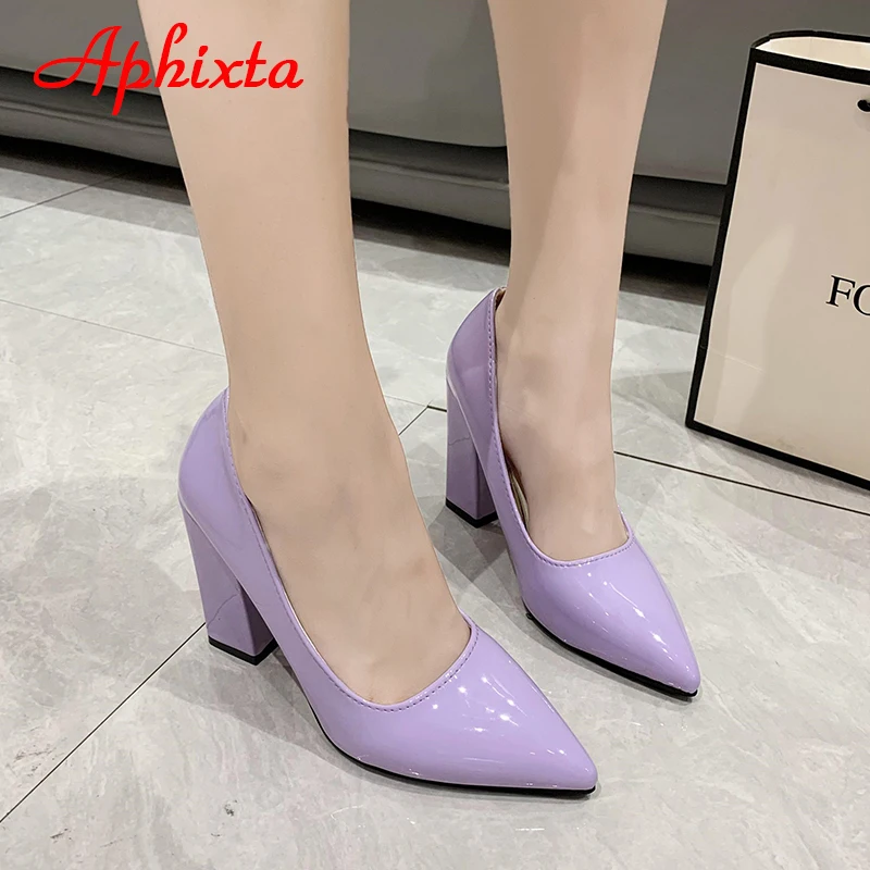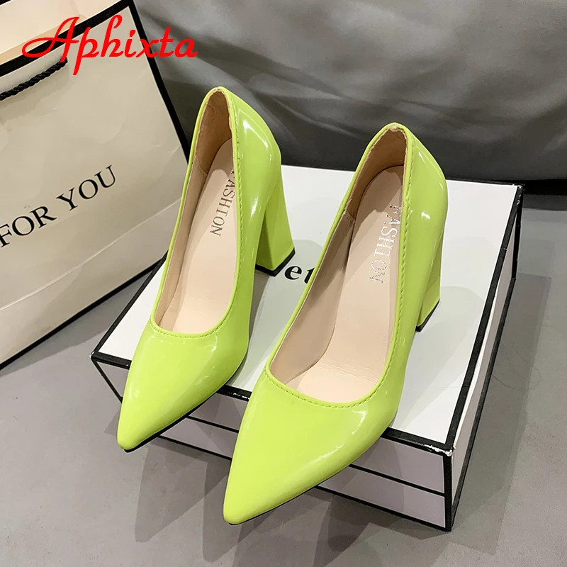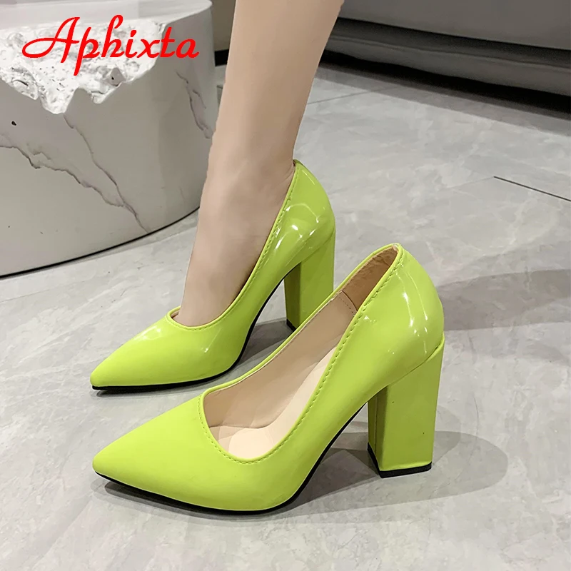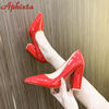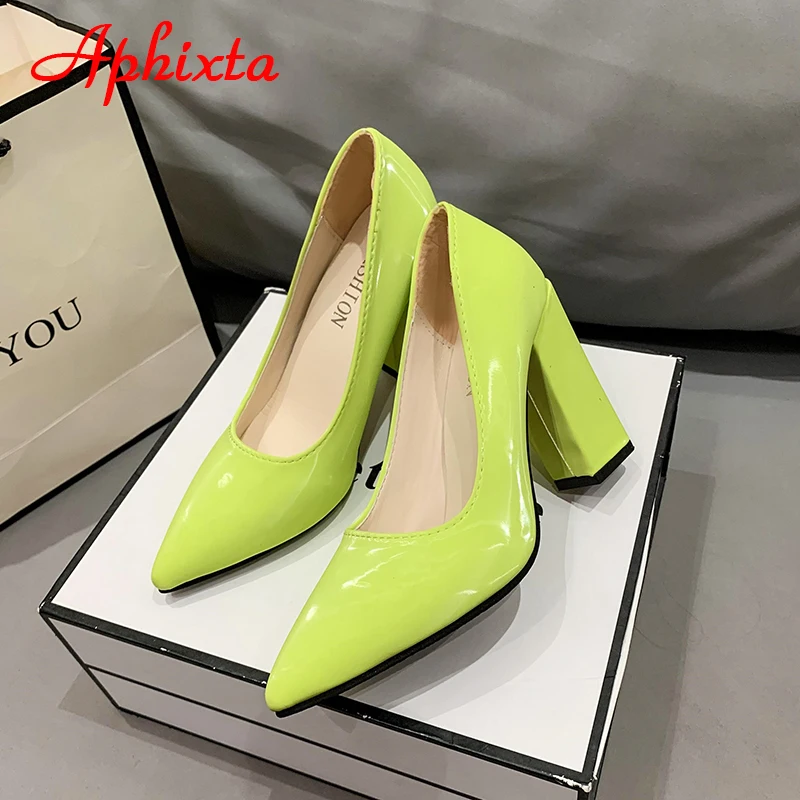 Aphixta New Barby Pink Pumps Women Shoes 10cm Square Heels Patent Leather Multicolor Party Leisure Super Big Szie 31-50