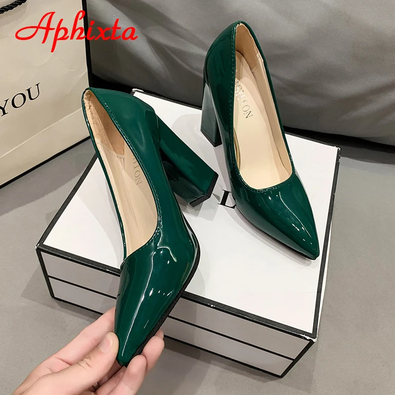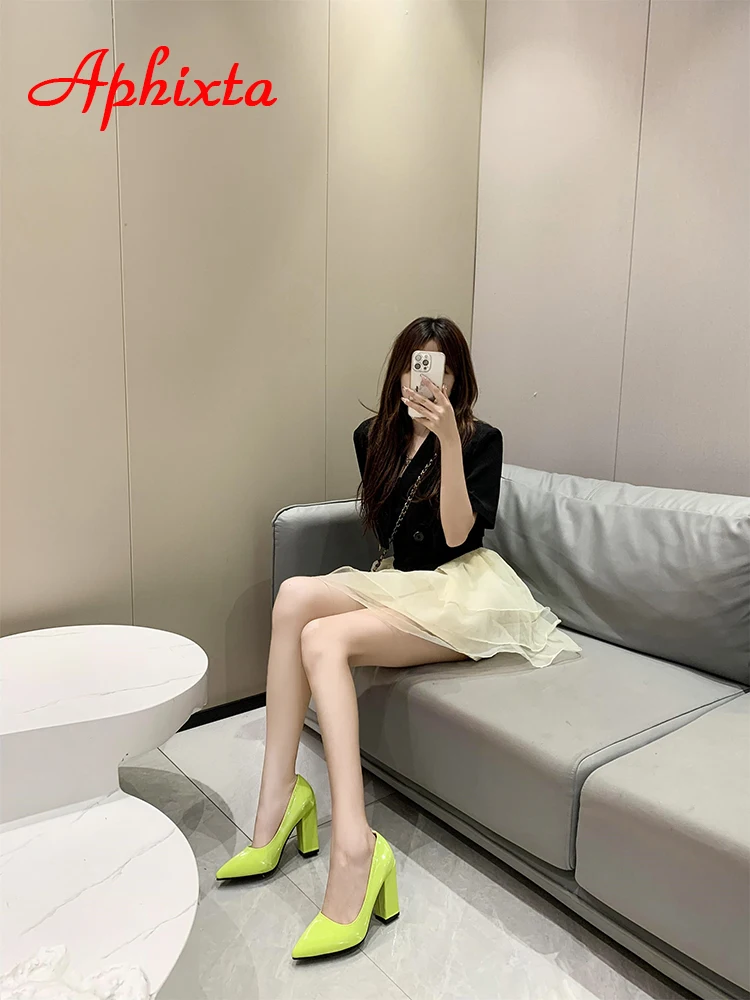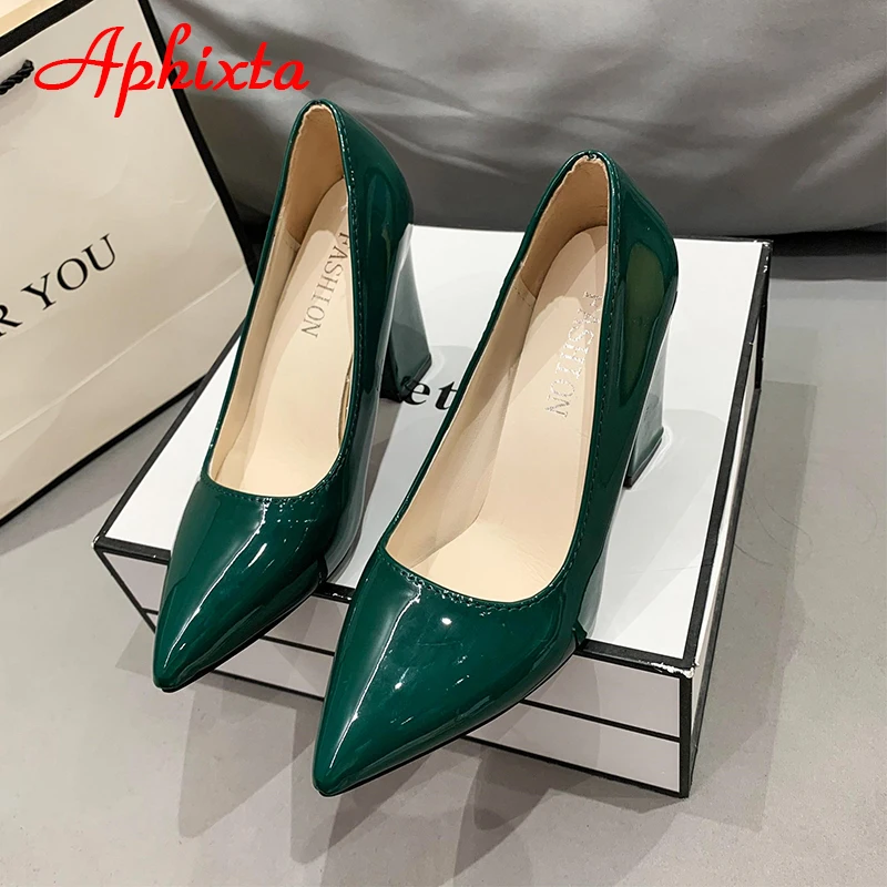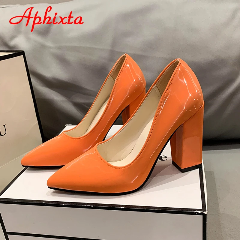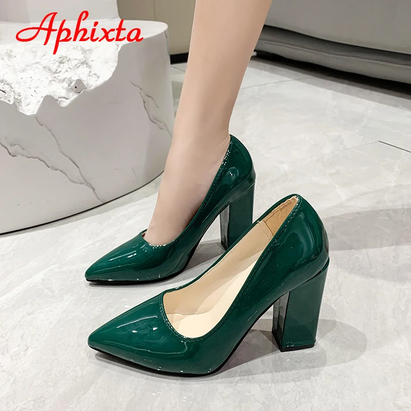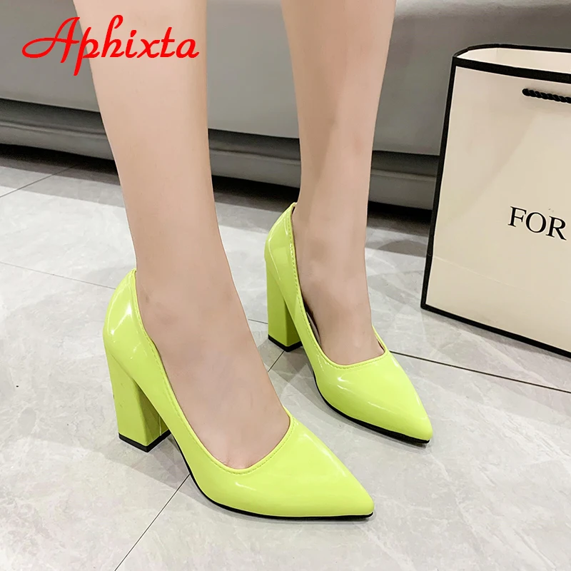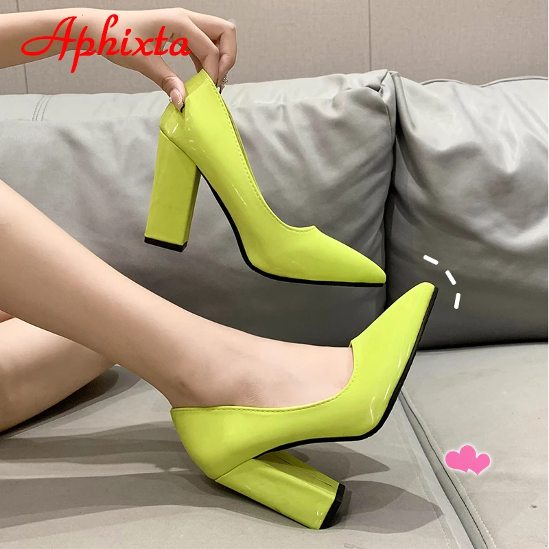 Aphixta New Barby Pink Pumps Women Shoes 10cm Square Heels Patent Leather Multicolor Party Leisure Super Big Szie 31-50