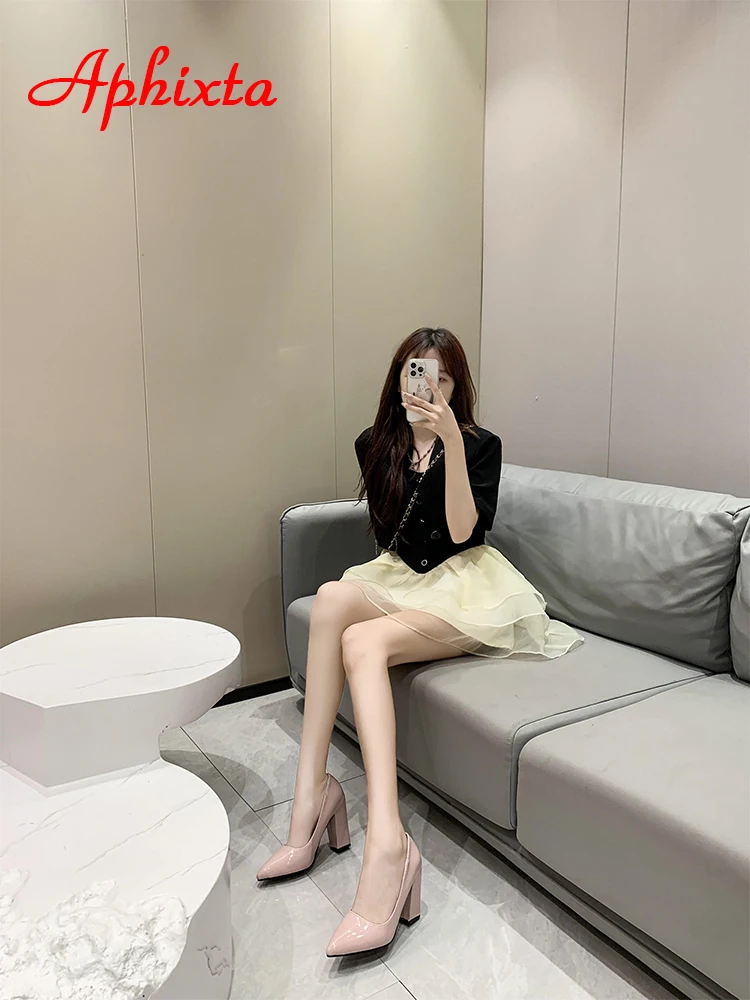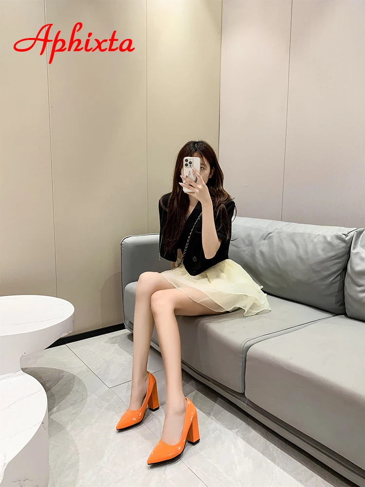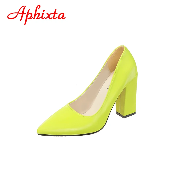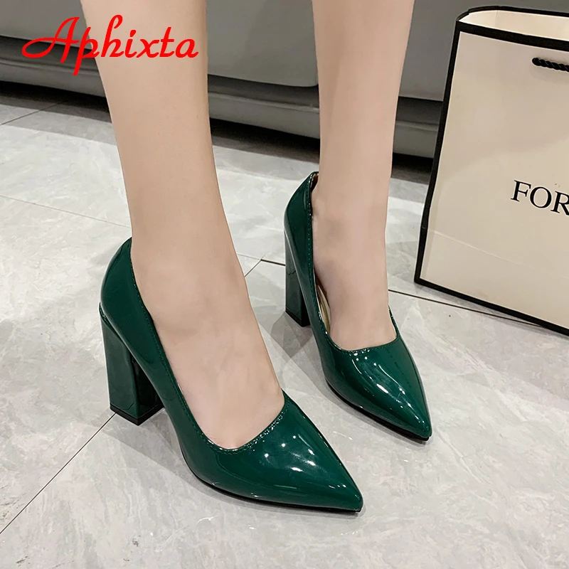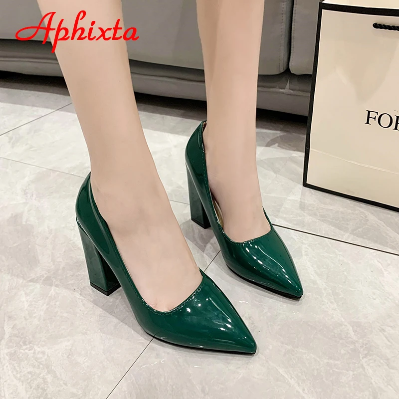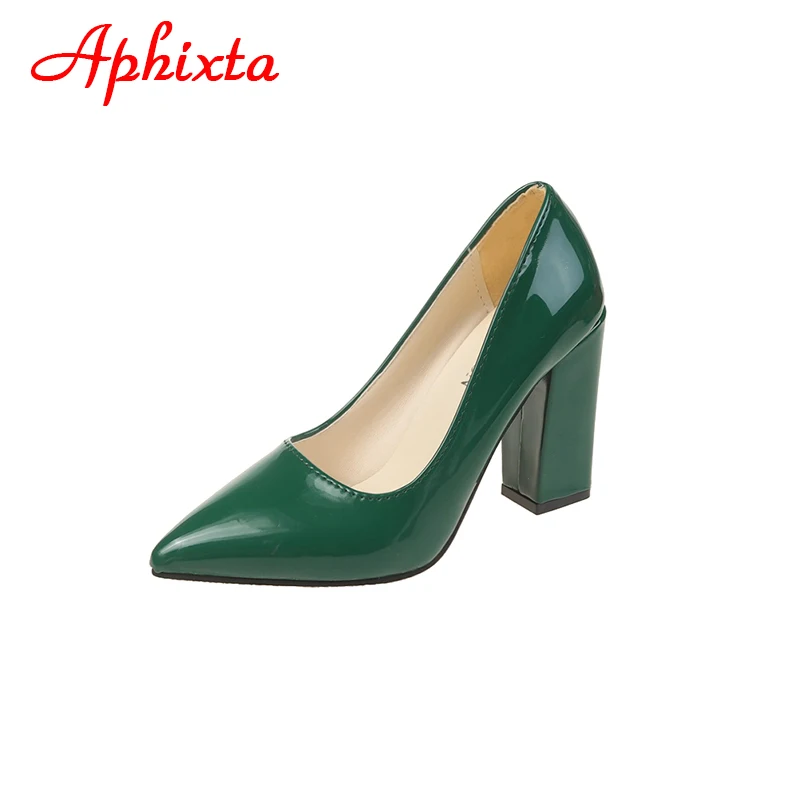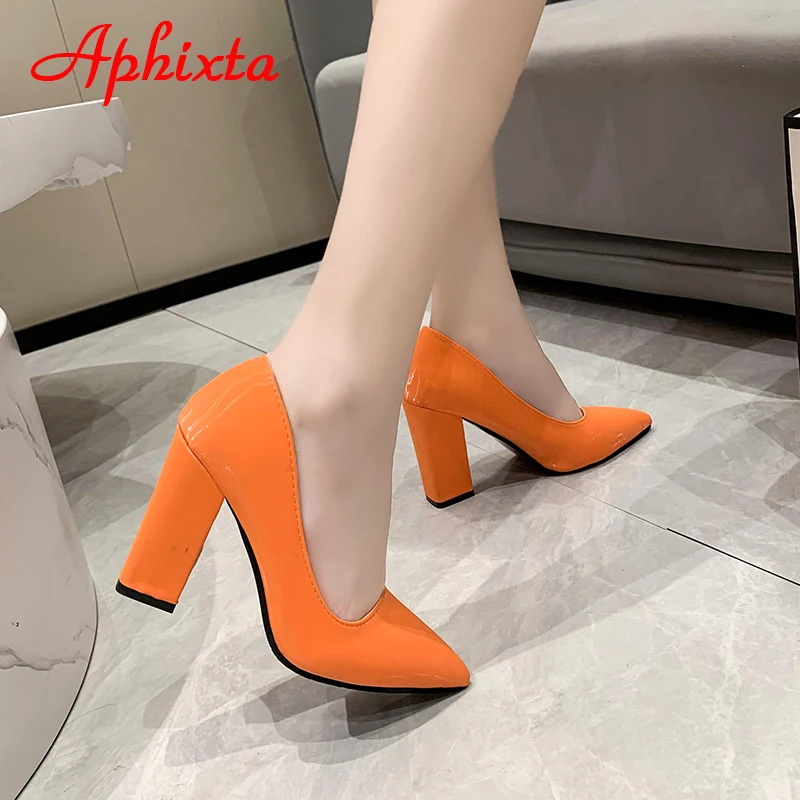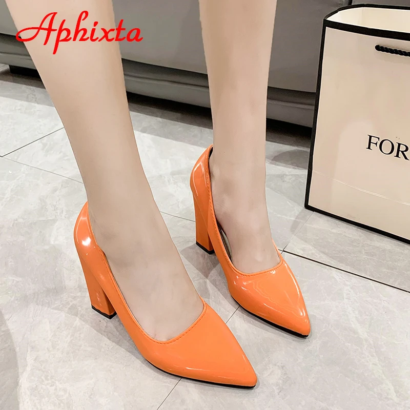 Aphixta New Barby Pink Pumps Women Shoes 10cm Square Heels Patent Leather Multicolor Party Leisure Super Big Szie 31-50