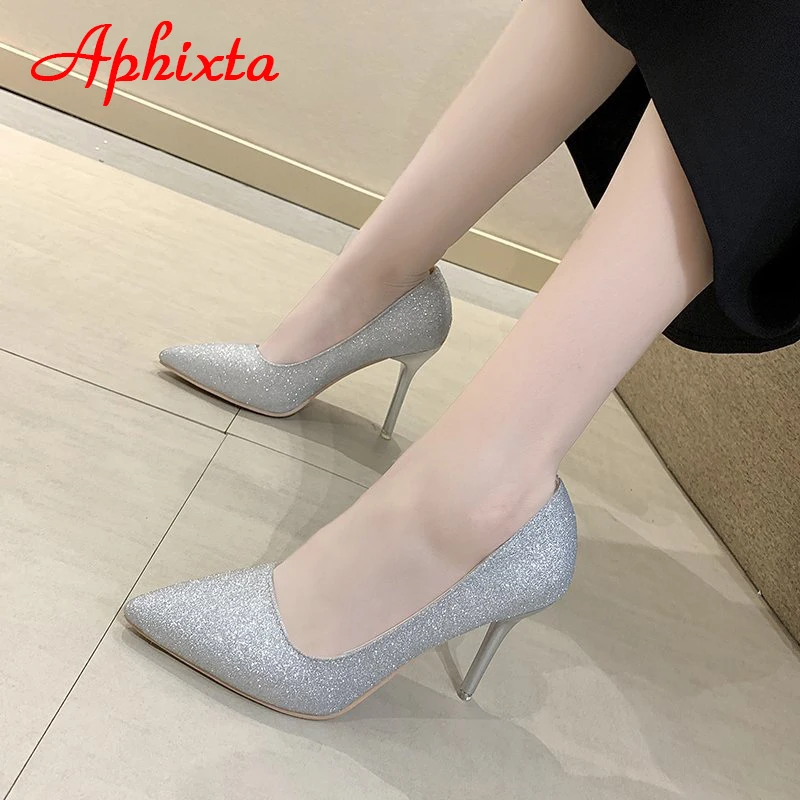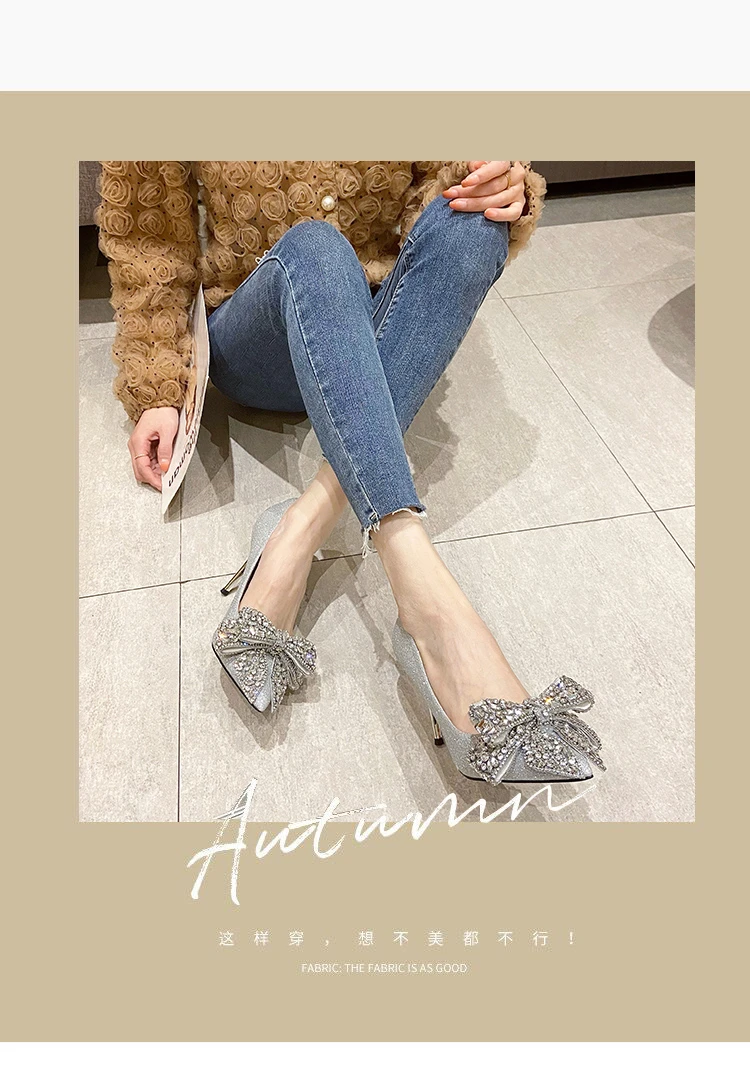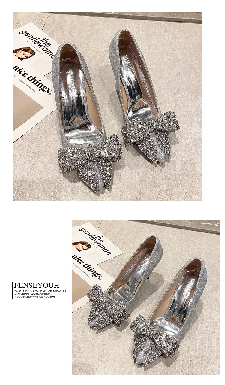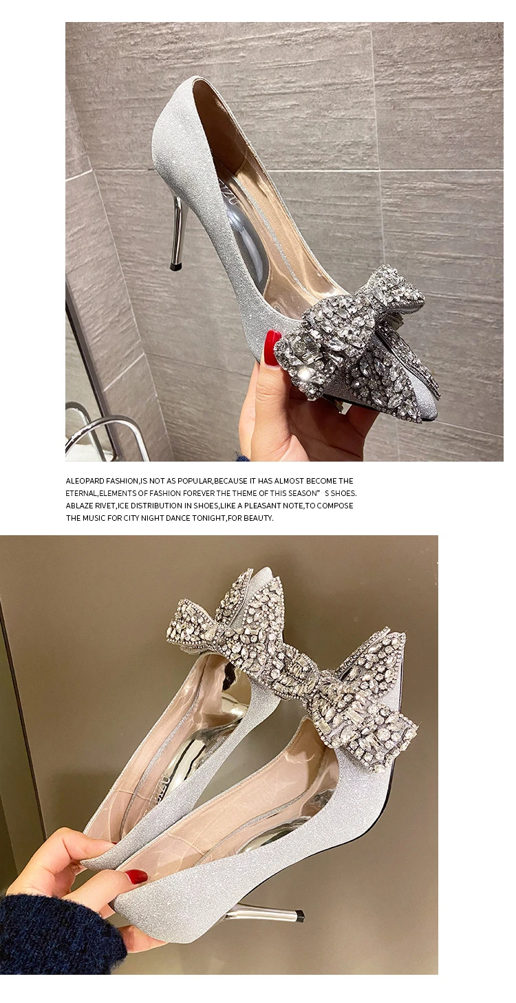 Aphixta New Elegant Luxury Crystals Bow Pointed Toe High Heels Sexy Pointed Toe Thin Heels Wedding Pumps Casual Shoes