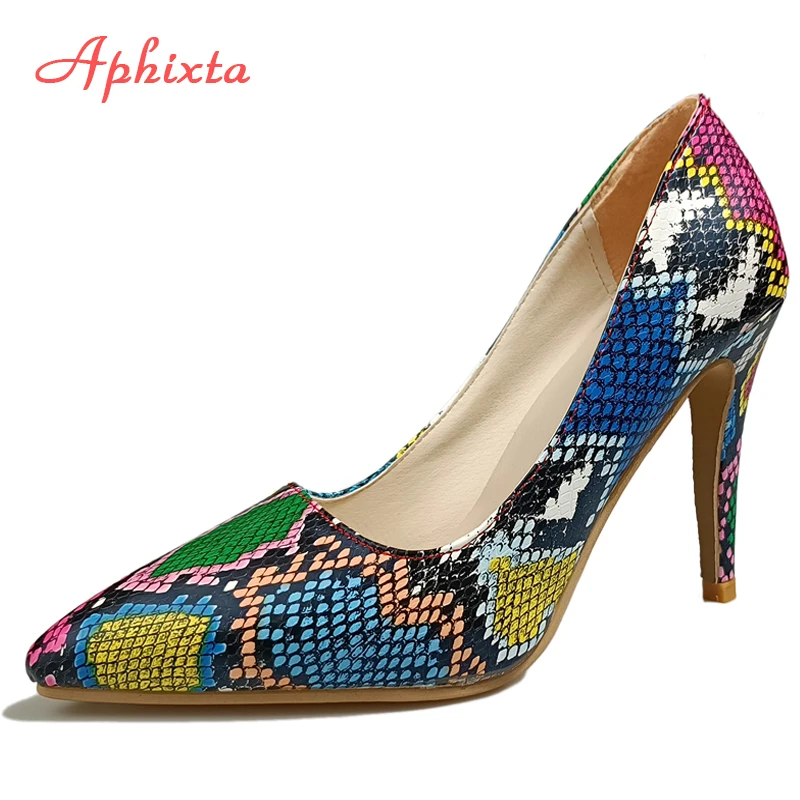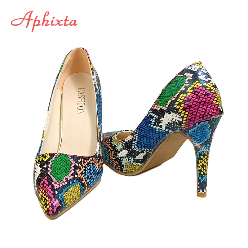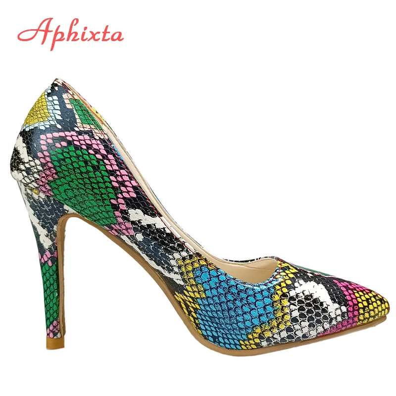 Aphixta New Pointed Toe 3.94 Inch Thin Heels Women Shoes Snake Prints Leather Wedding Party Woman Super Big Size 49 50