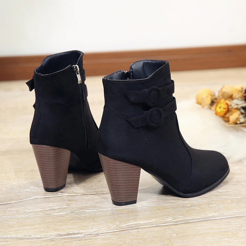 Aphixta Plus Big Size 43 Zipper Ankle Boots Shoes Woman Winter 8cm Spike High Heel Pointed Toe Shoes Waterproof Boots For Women