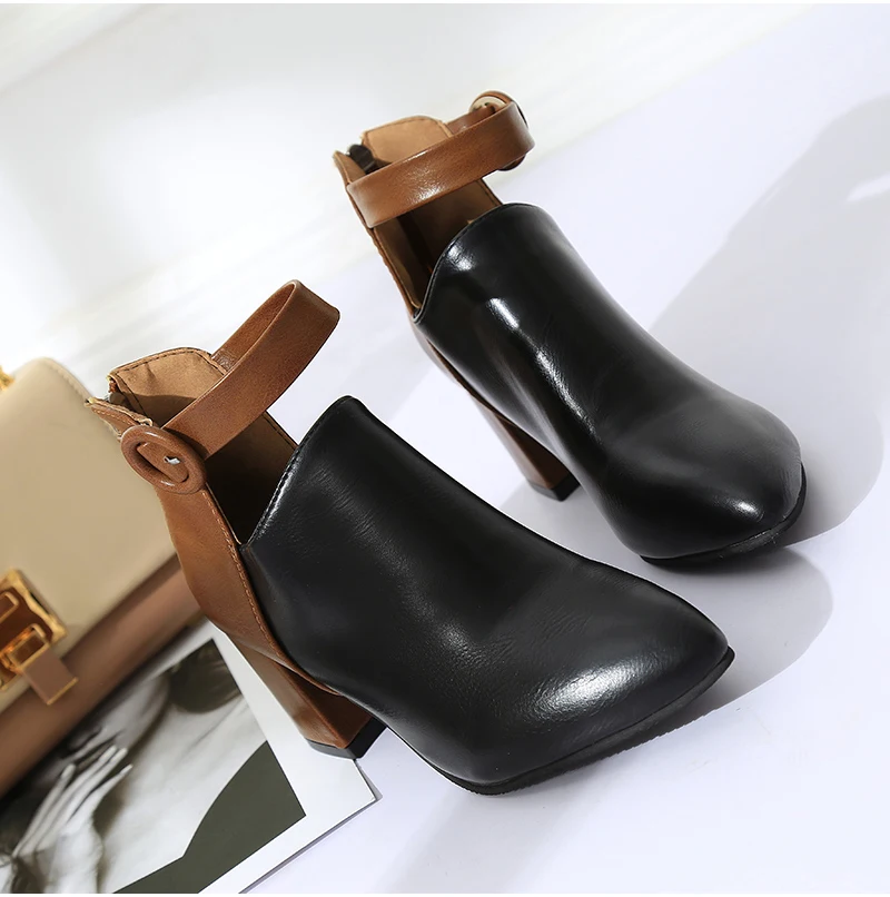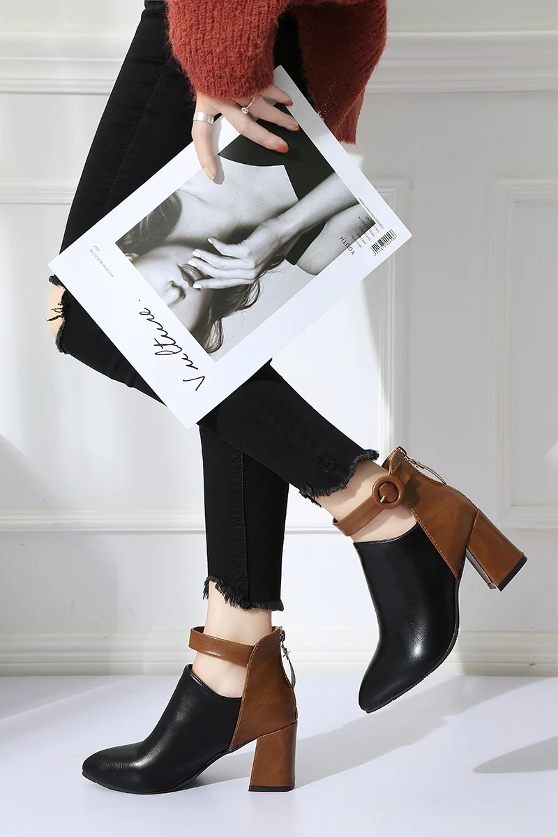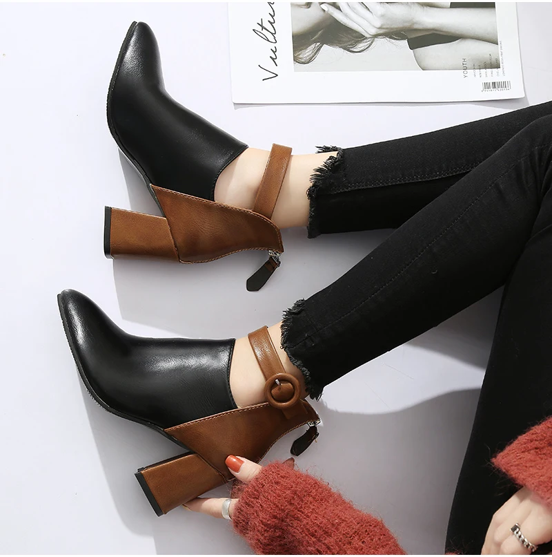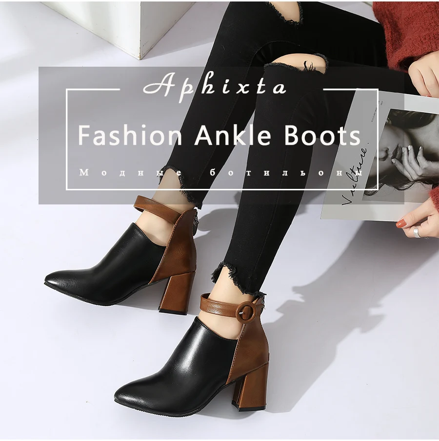 Aphixta Plus Big Size 44 Chelsea Boots Shoes Woman Ankle Boots Zipper Winter Square Heel Women Shoes Patchwork Waterproof Boots