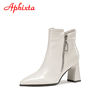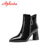 Aphixta Serpentine Women Boots Bling Crystals Buckle Pointed Toe 8.5cm Square Heel Ankle Boots Zipper Crystal Shoes Woman Boats