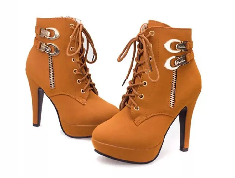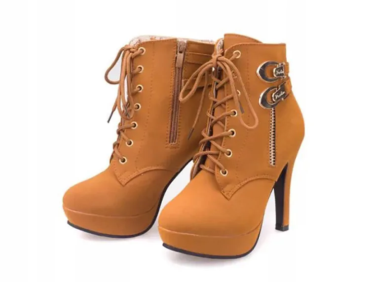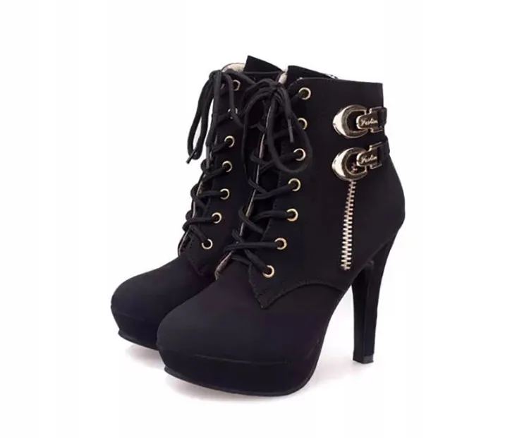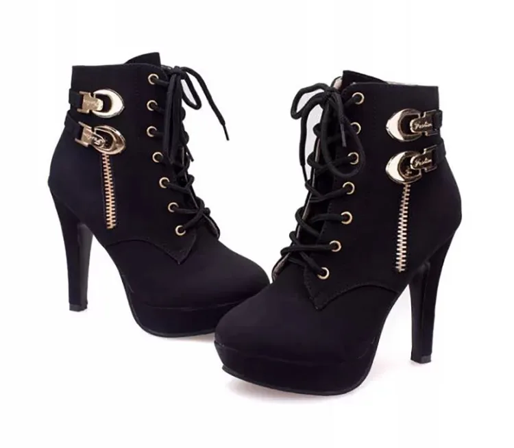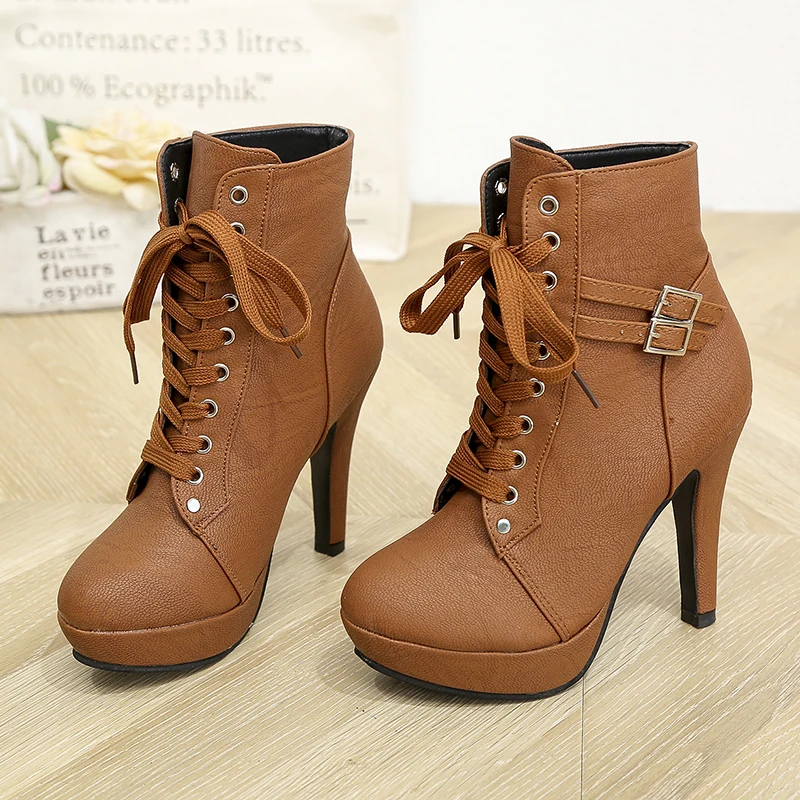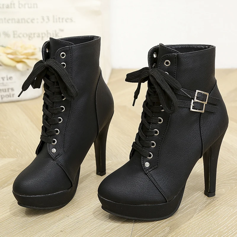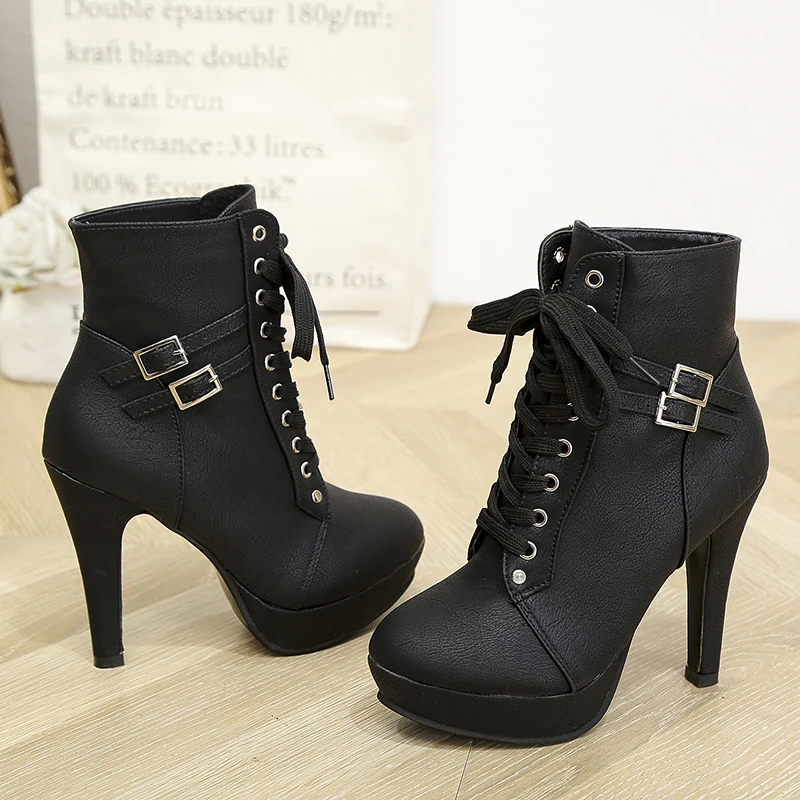 Aphixta Shoes Woman Ankle Boots Platform Boots Cross-strap Buckle Round Toe Lace-up Shoes Cross-tie Thin High Heels Dress Shoes