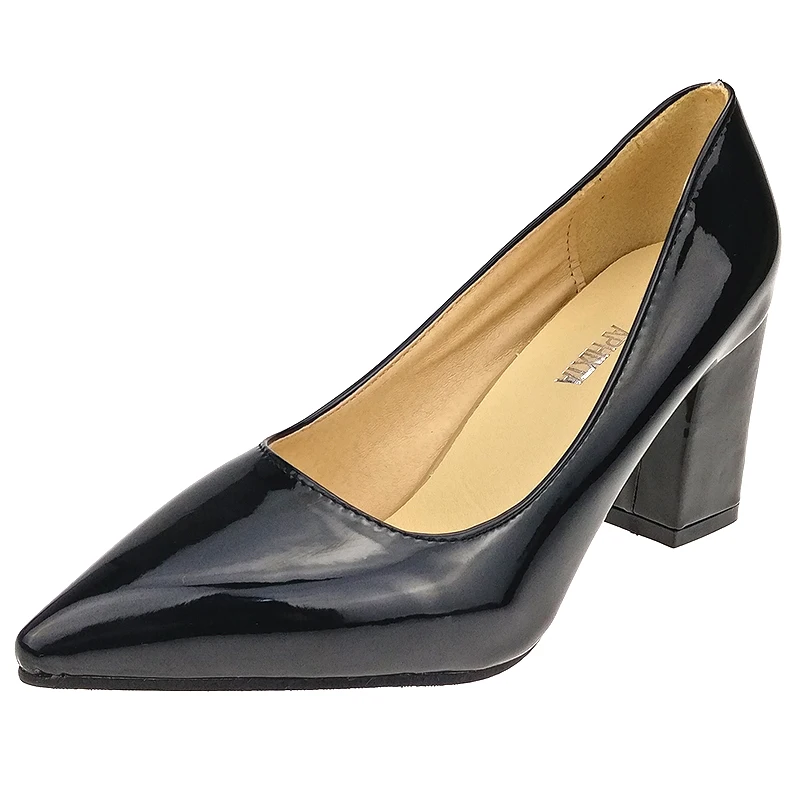 Aphixta Shoes Women Pointed Toe Pumps Sapato feminino 7.5cm High Square Heels Patent Leather Fashion Work Black Party Shoes