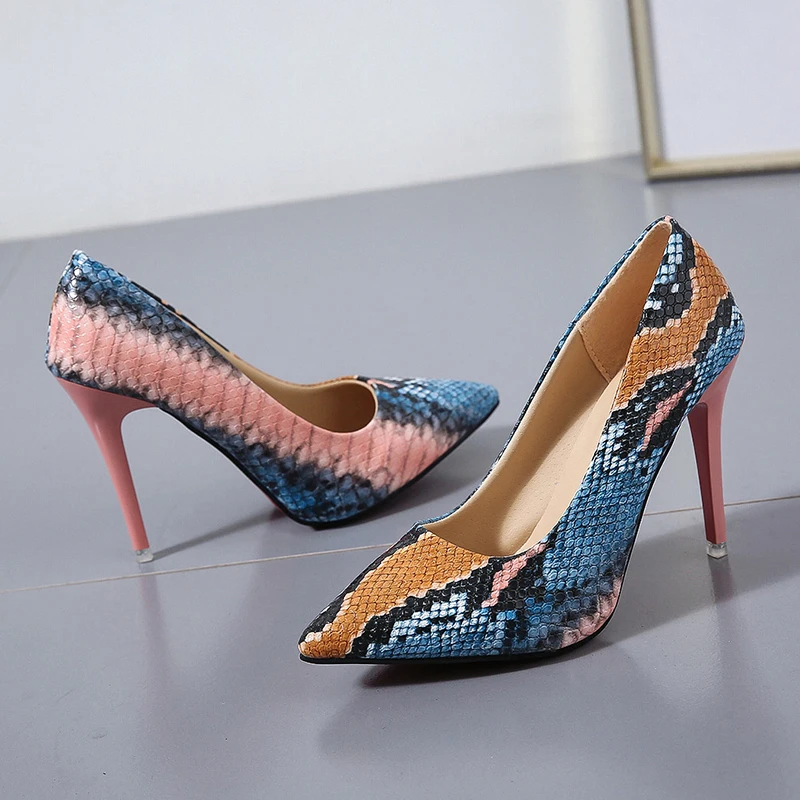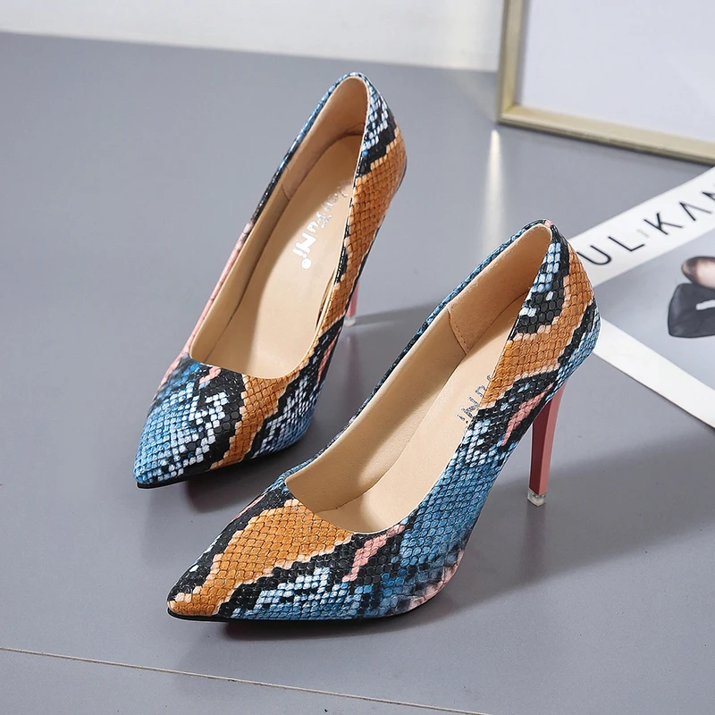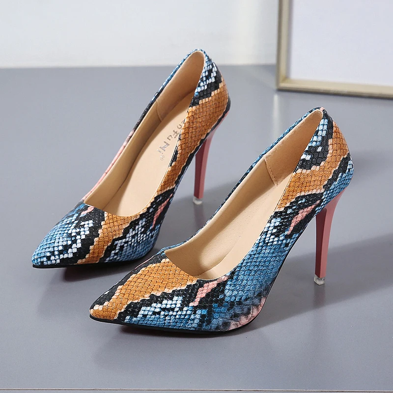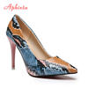 Aphixta Snake Prints Leather Pumps Women Shoes 10cm stiletto Heels Pointed Toe Office Party Dress Shoes Woman Big Size 42