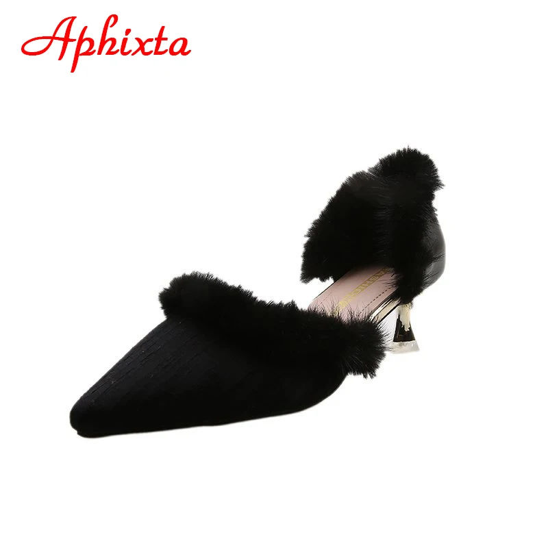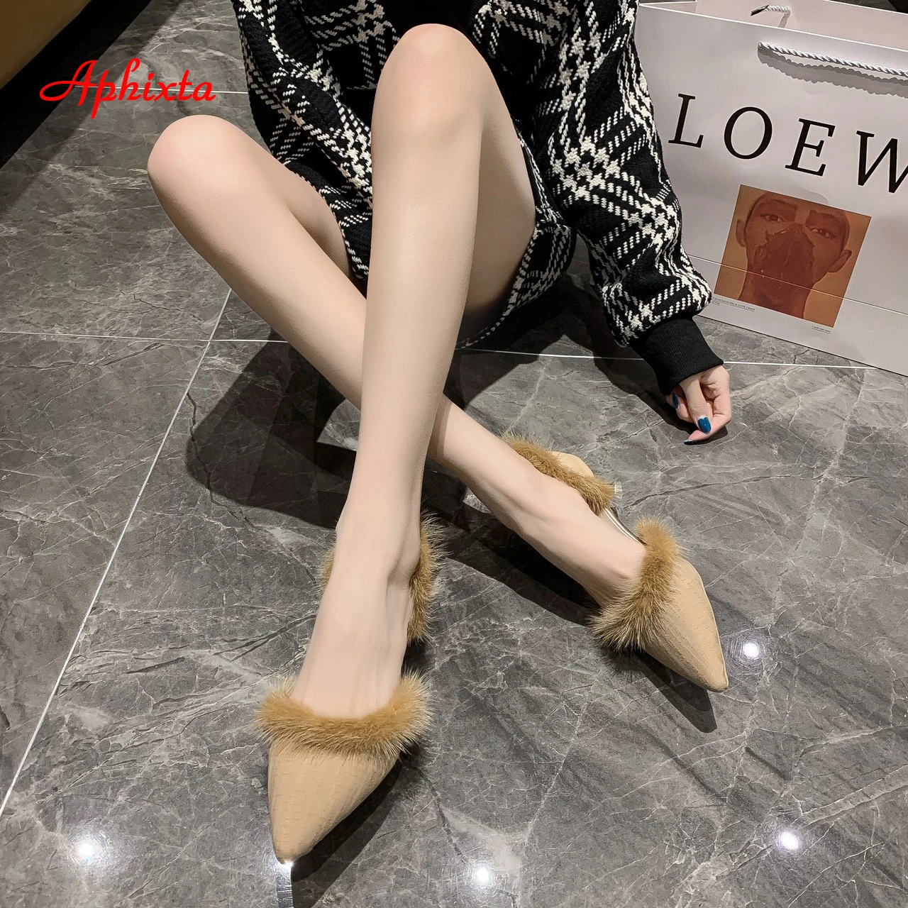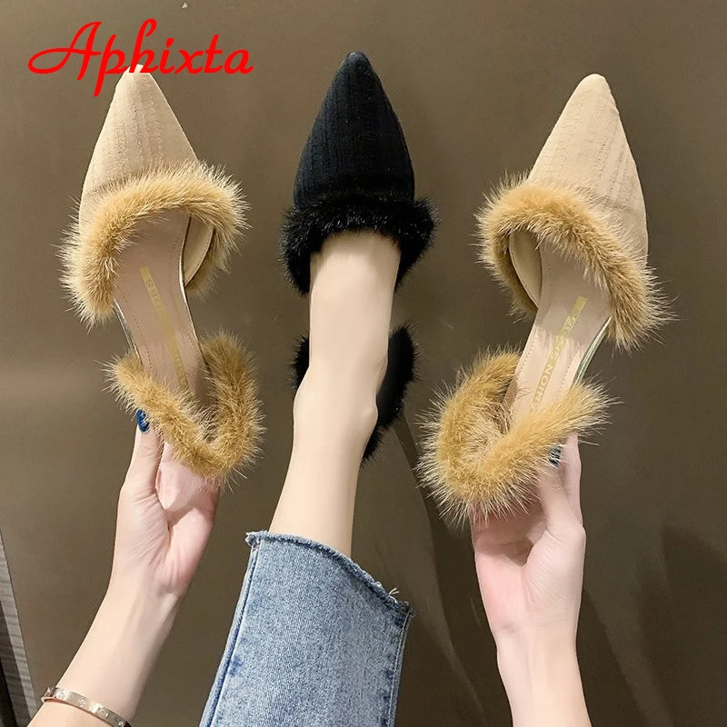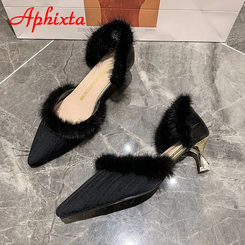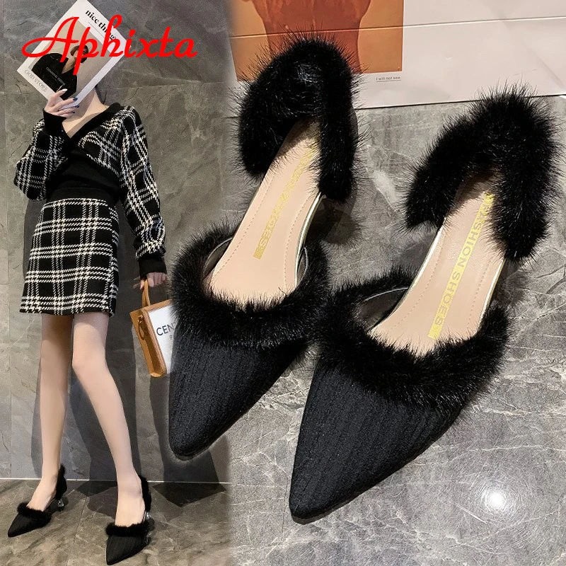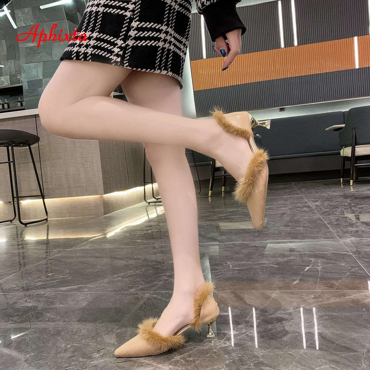 Aphixta Spring Real Fur Women Pumps Casual Office Lady Shoes Pointed Toe Thin Heel Party Shoes Shallow Elegant Summer Heels