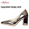 Aphixta Spring Silver 7cm Chunky Heels Pointed Toe Pumps Women Shoes Square Heel Party Official Fashion Large Big Size 45 46