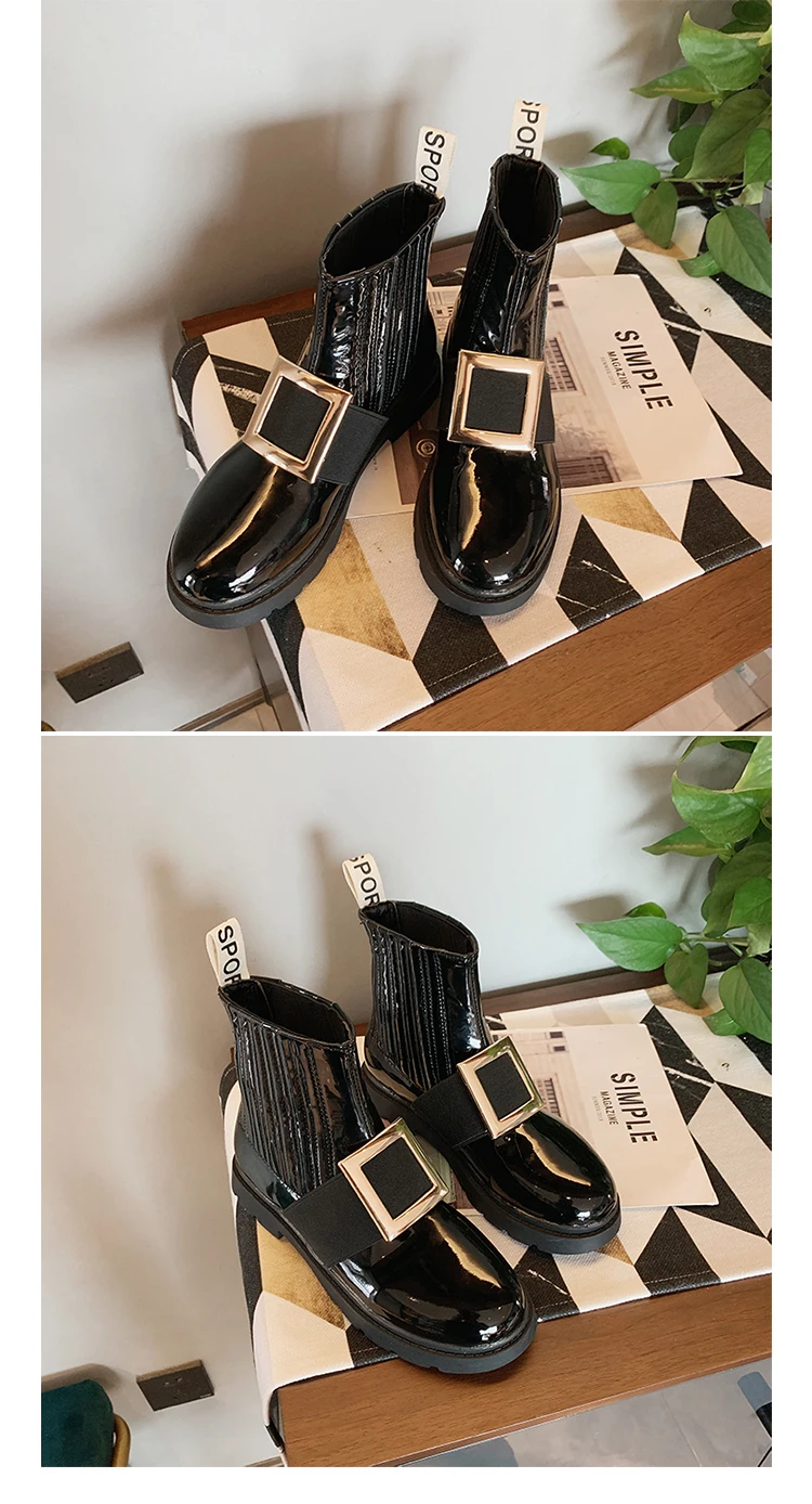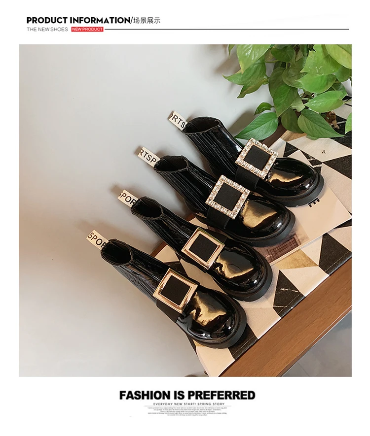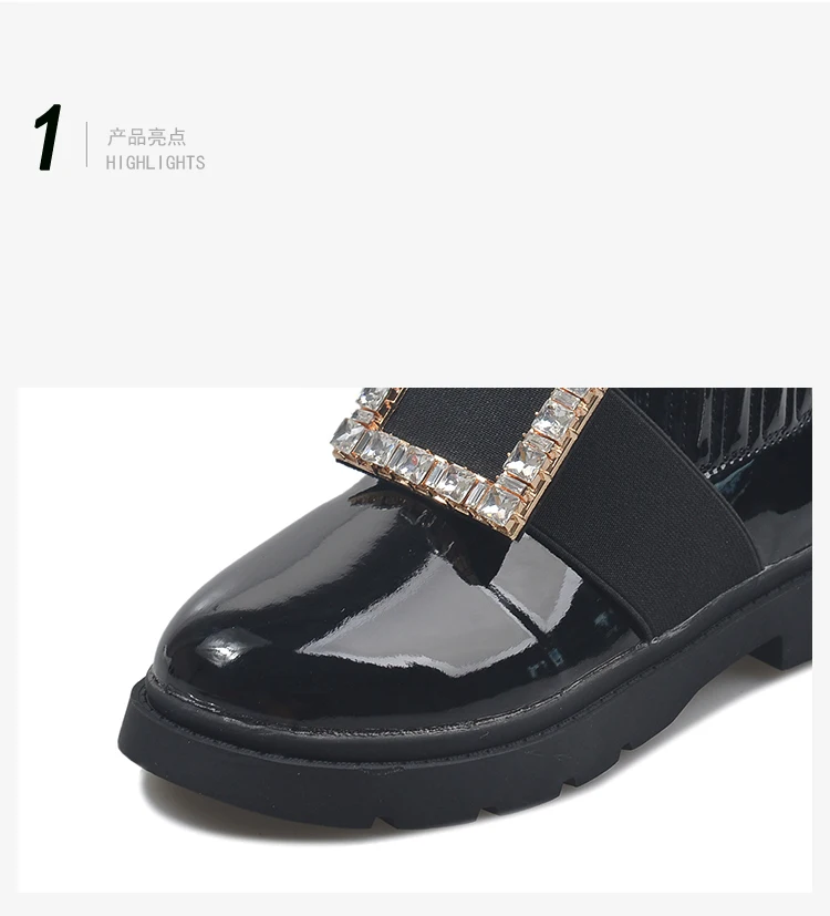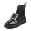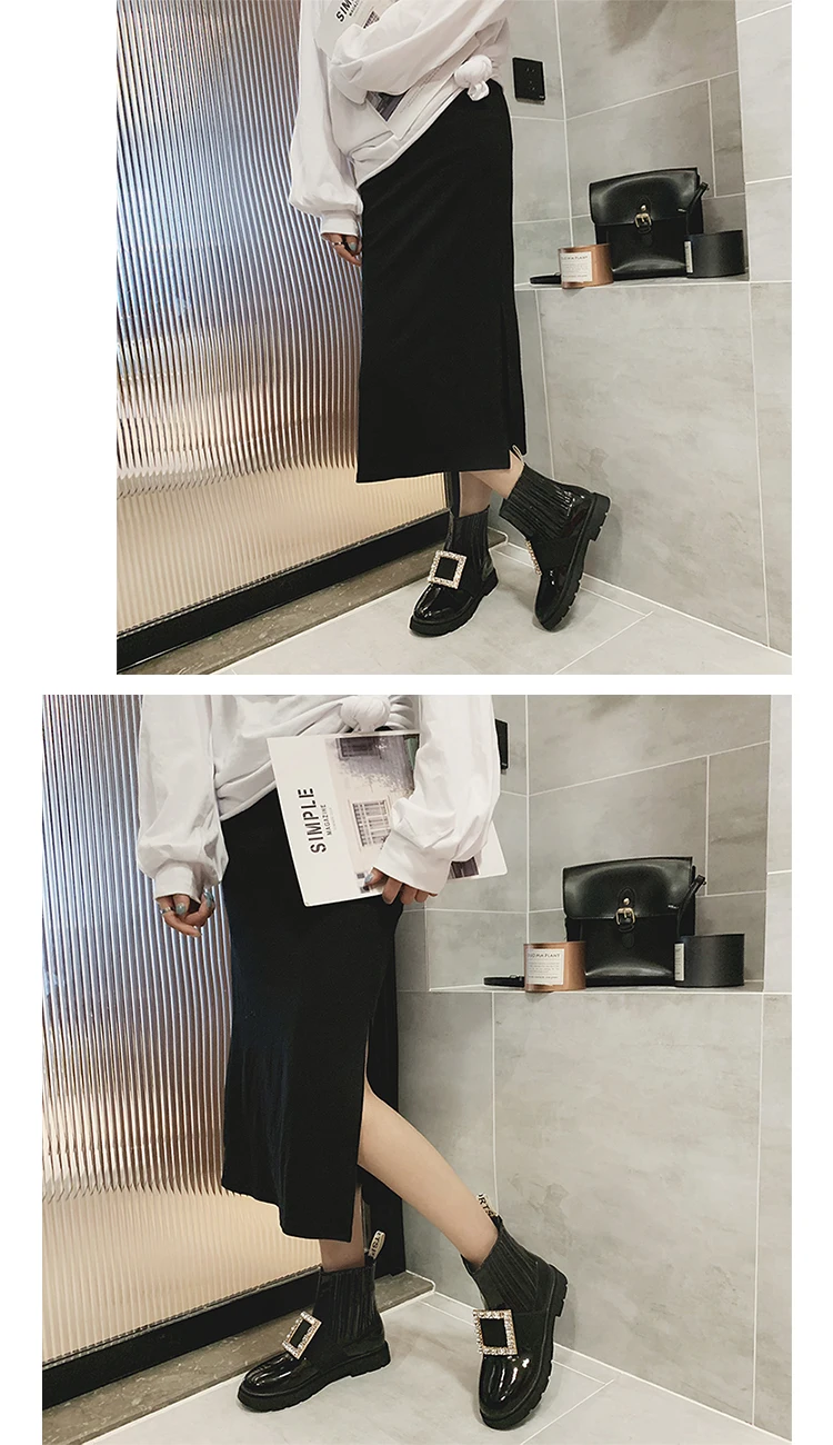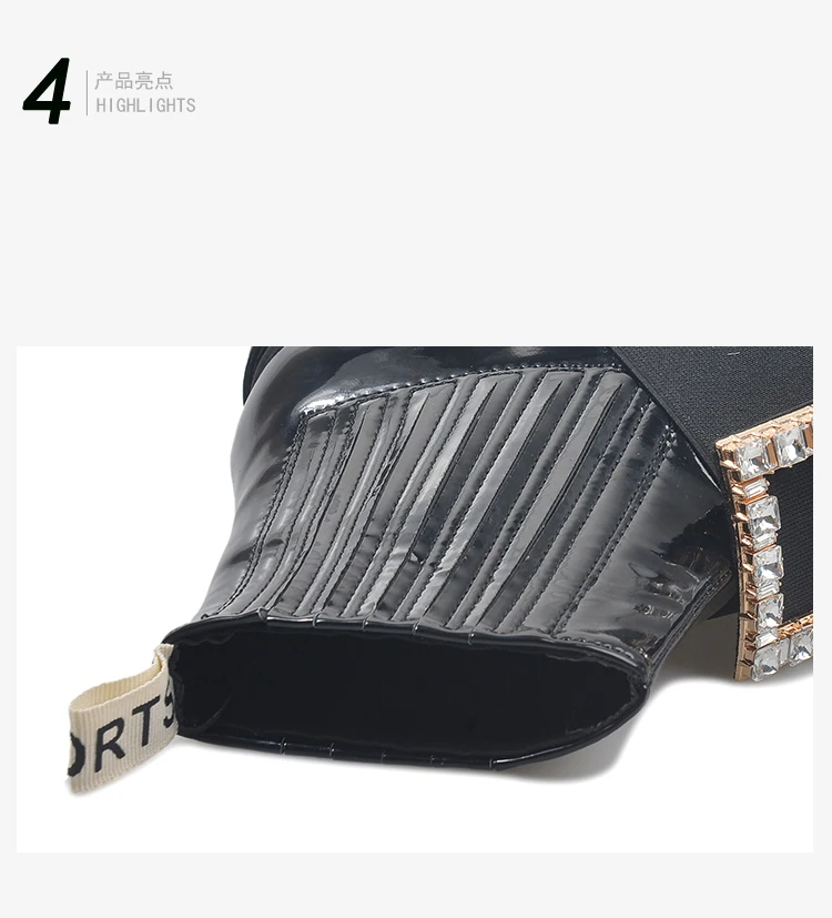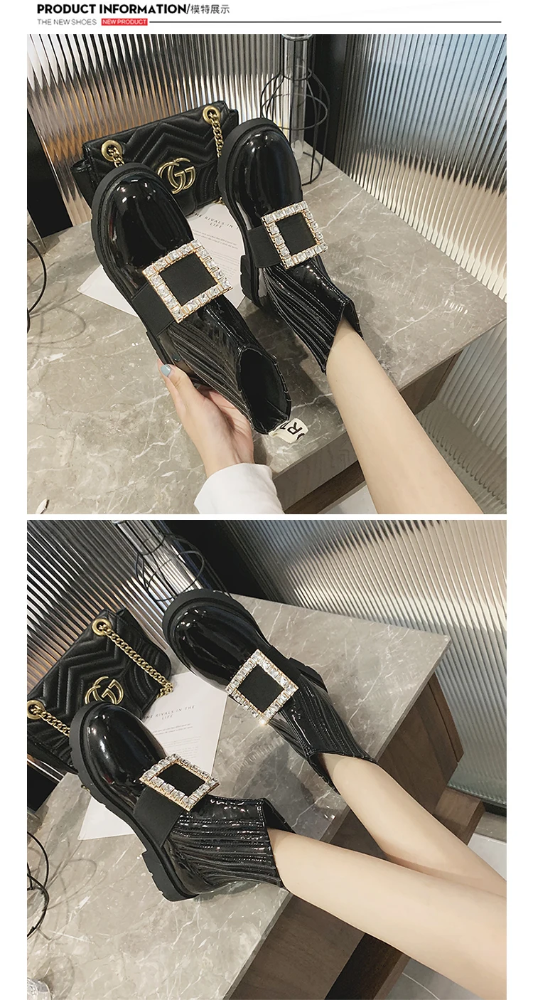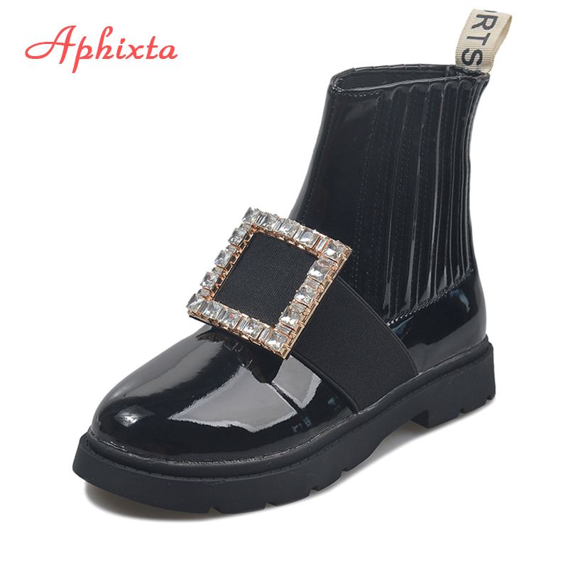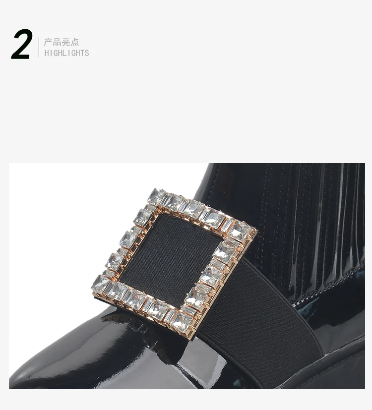 Aphixta Square Heels Women Boots Fashion Round Toe Bling Crystals Buckle Ankle Martns Boots Slip-on Crystal Shoes Woman Boats