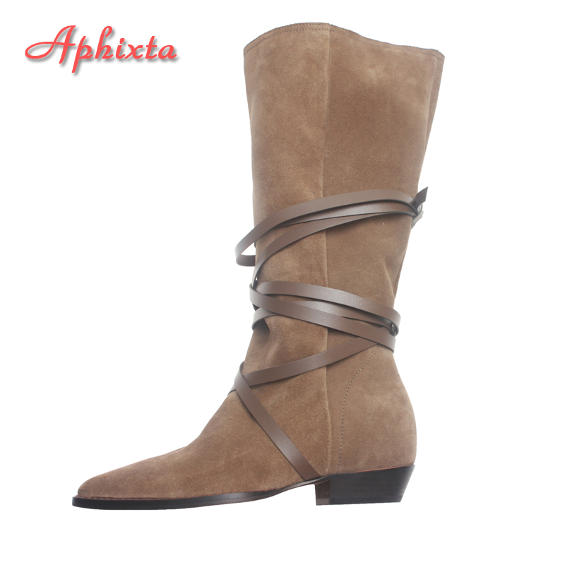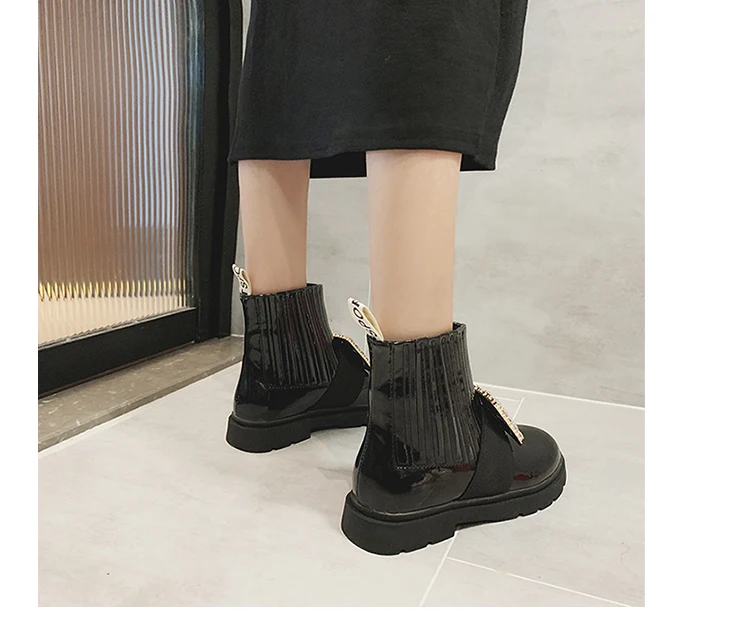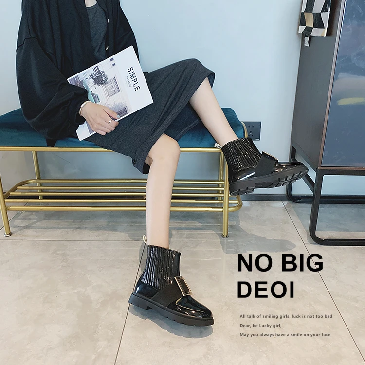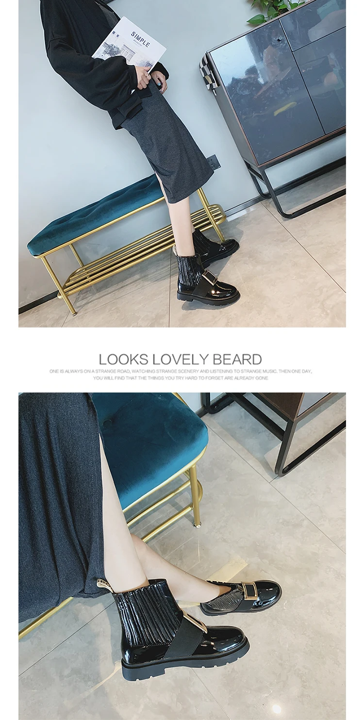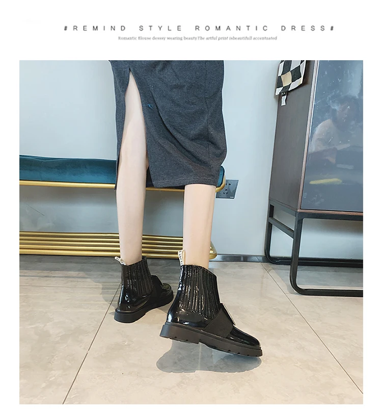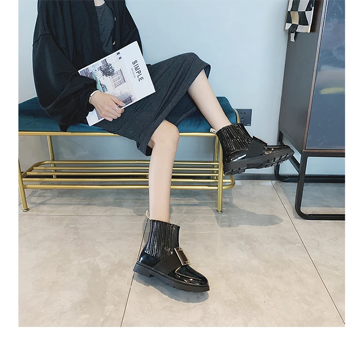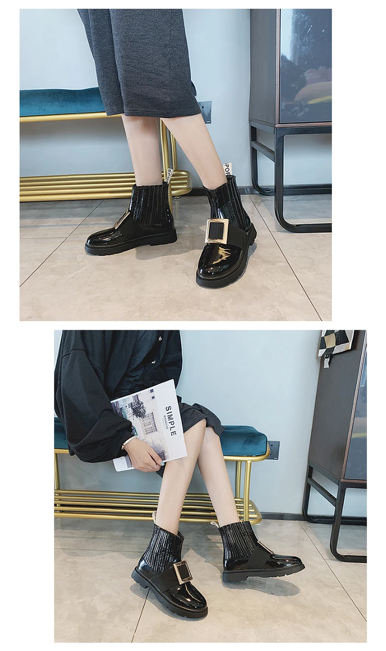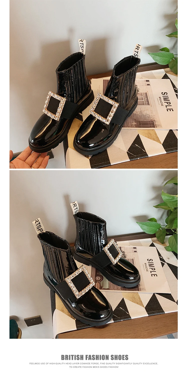 Aphixta Square Heels Women Boots Fashion Round Toe Bling Crystals Buckle Ankle Martns Boots Slip-on Crystal Shoes Woman Boats