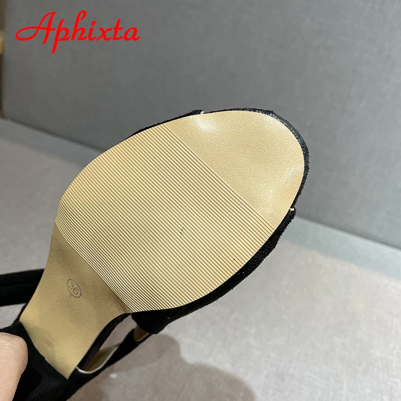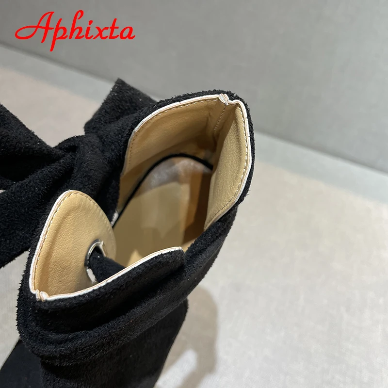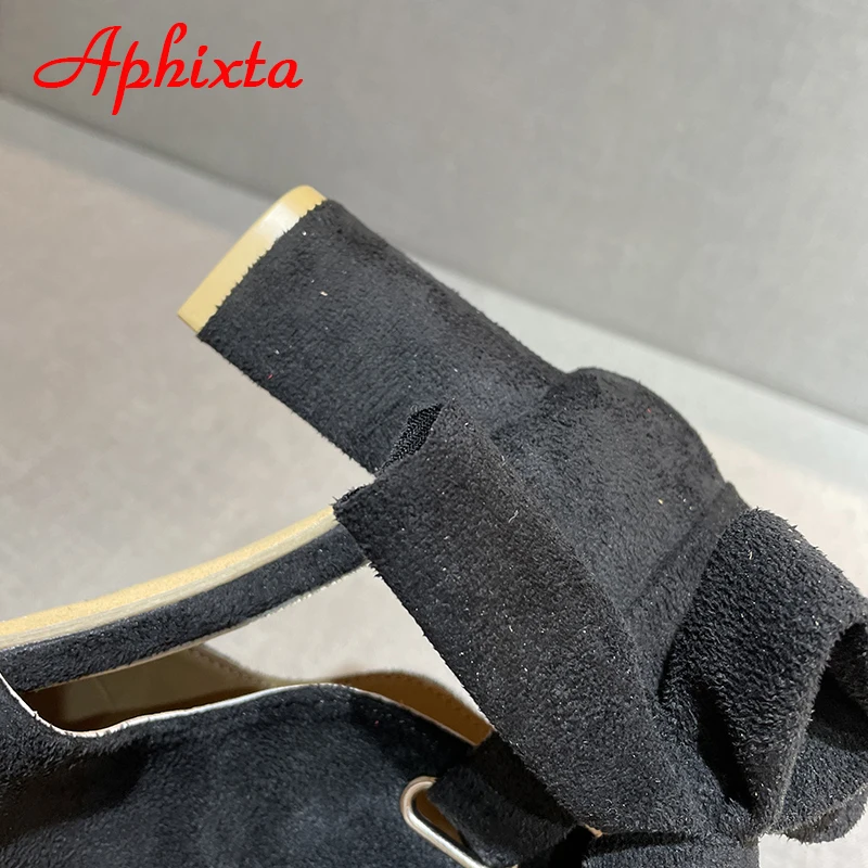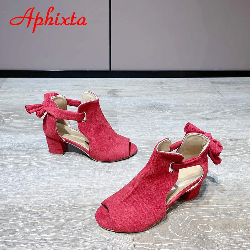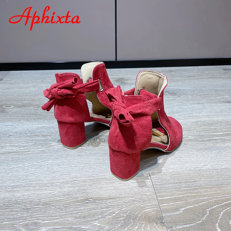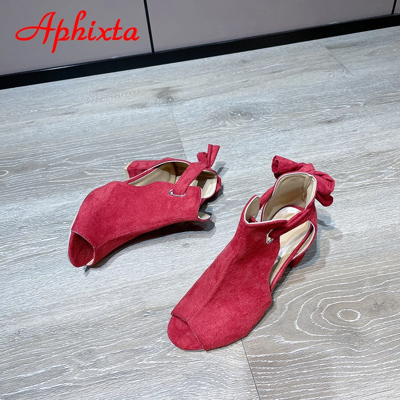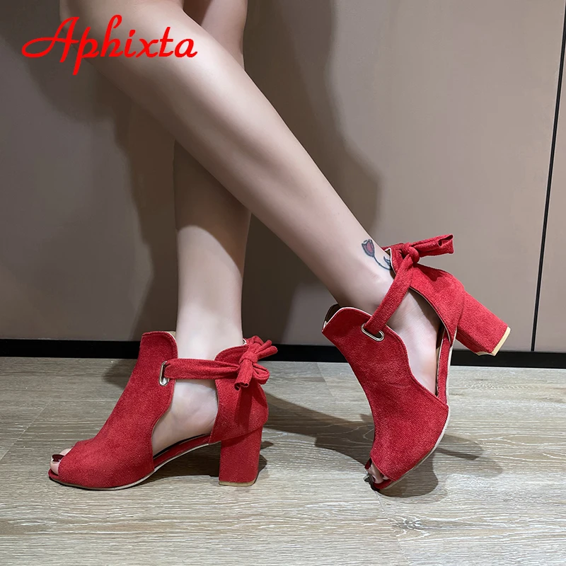 Aphixta Summer Peep Toe Cool Women Boots Sandals Lace-up Square Heels Narrow Band Rosette Shoes Plus Size 43