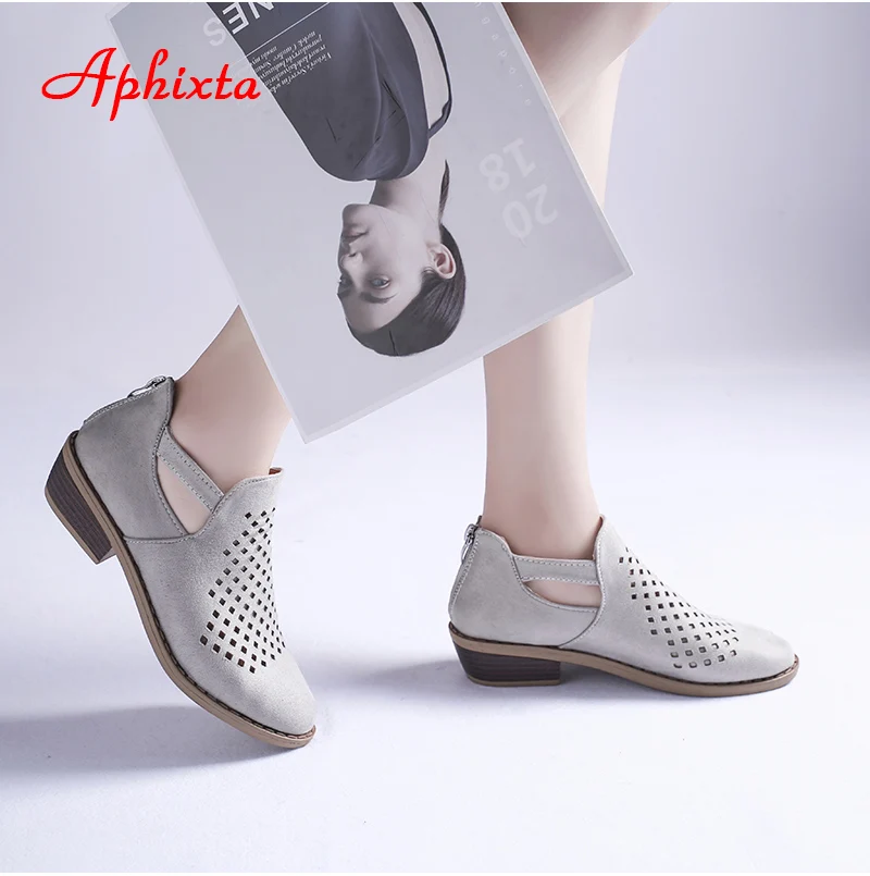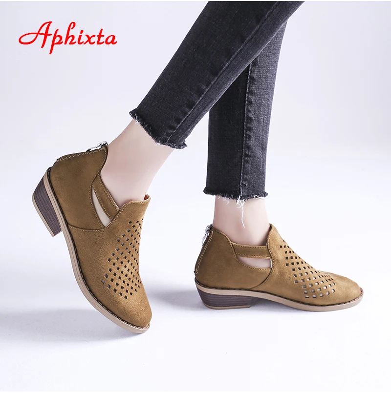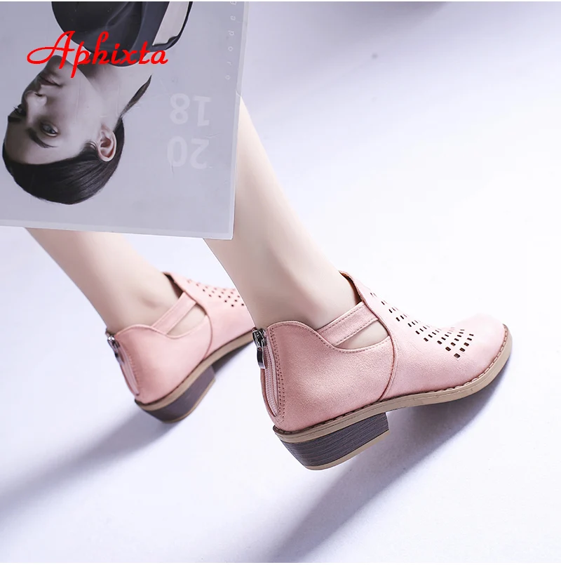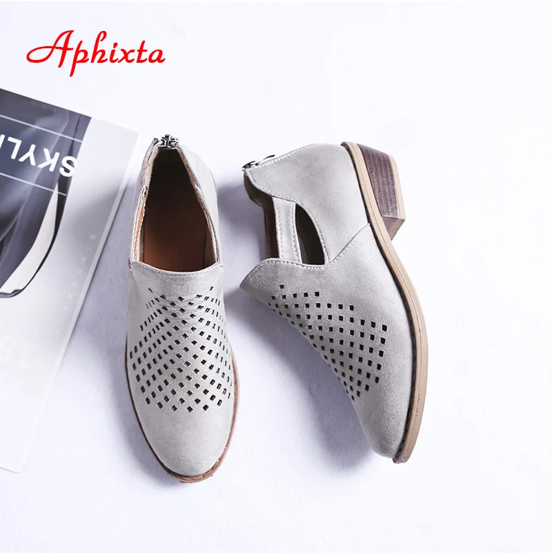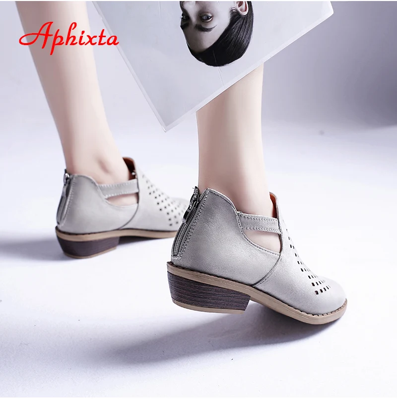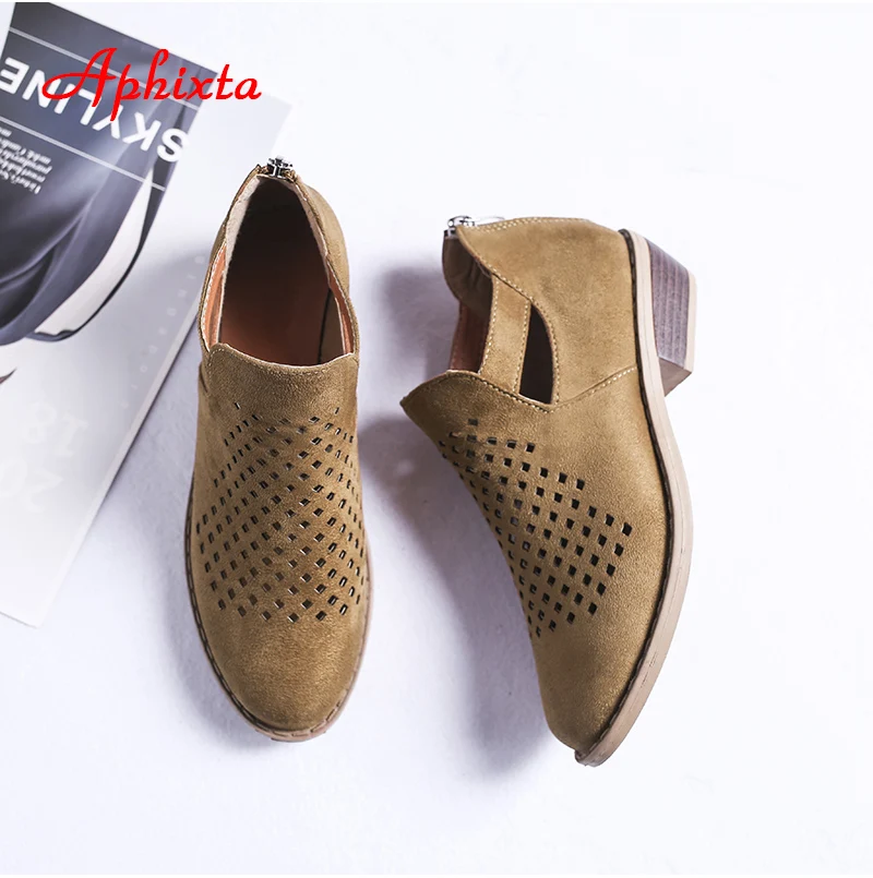 Aphixta Summer Spring Shoes Woman Pumps Peep Toe Sandals Women Zip Chunky Square Heel Ankle Booties Womans Sandals Plus Size 43