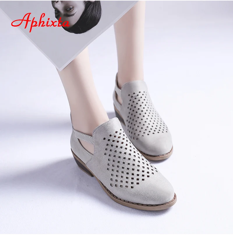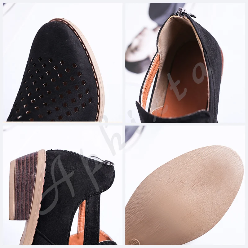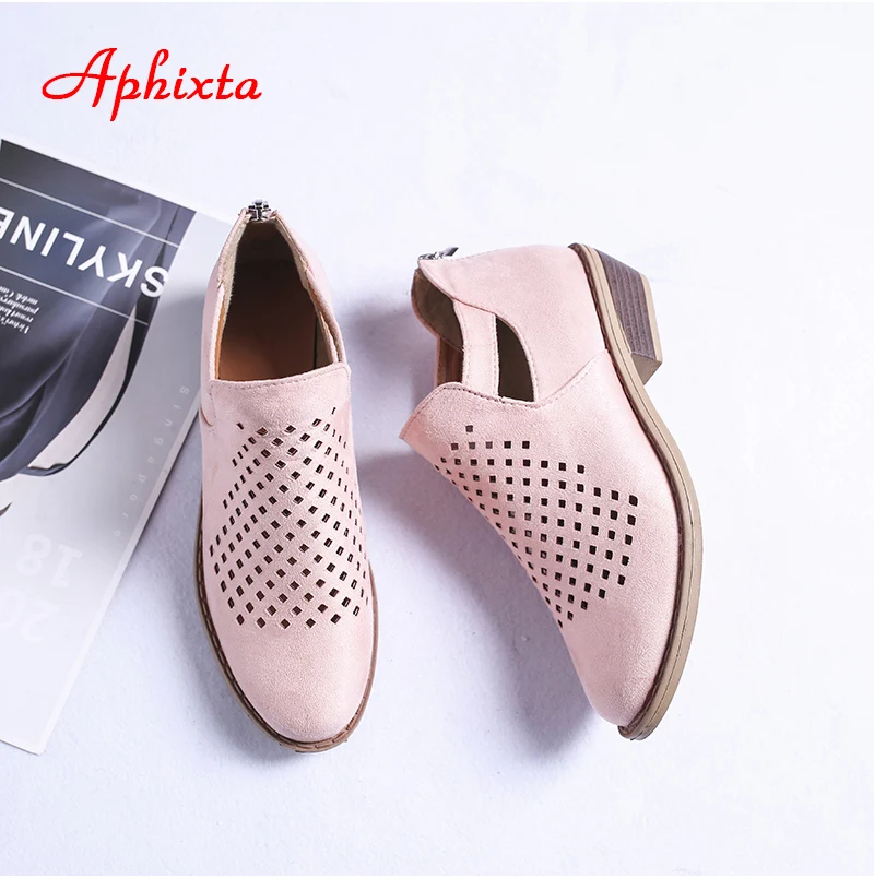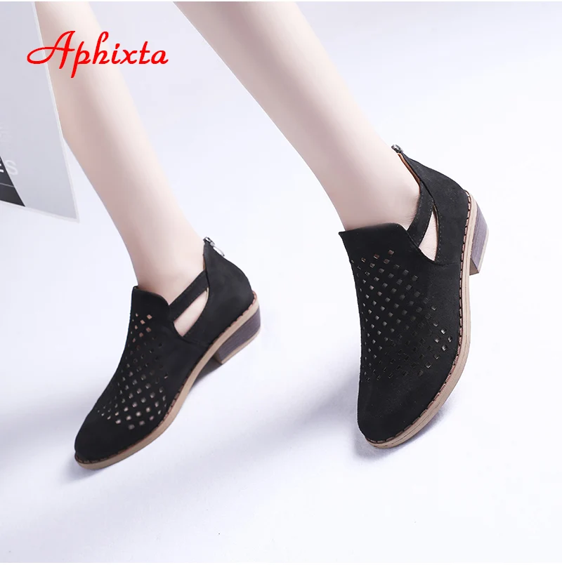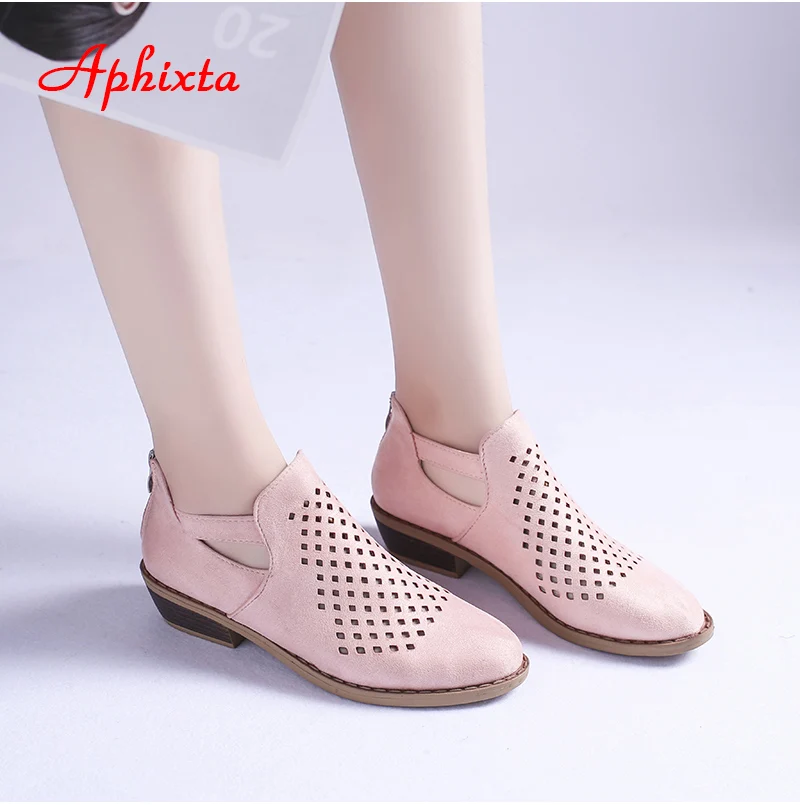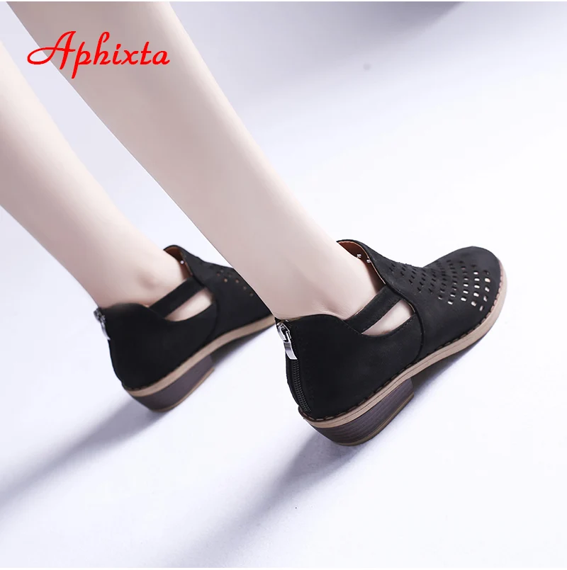 Aphixta Summer Spring Shoes Woman Pumps Peep Toe Sandals Women Zip Chunky Square Heel Ankle Booties Womans Sandals Plus Size 43