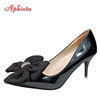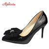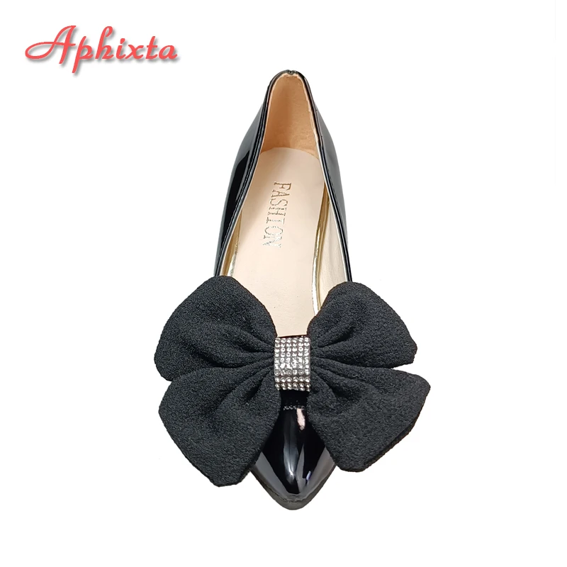 Aphixta Super Big Size 31-50 Crystals Bow Flowers Patent Leather Women Pumps 7cm Stiletto Heels Officile Pointed Toe Shoes