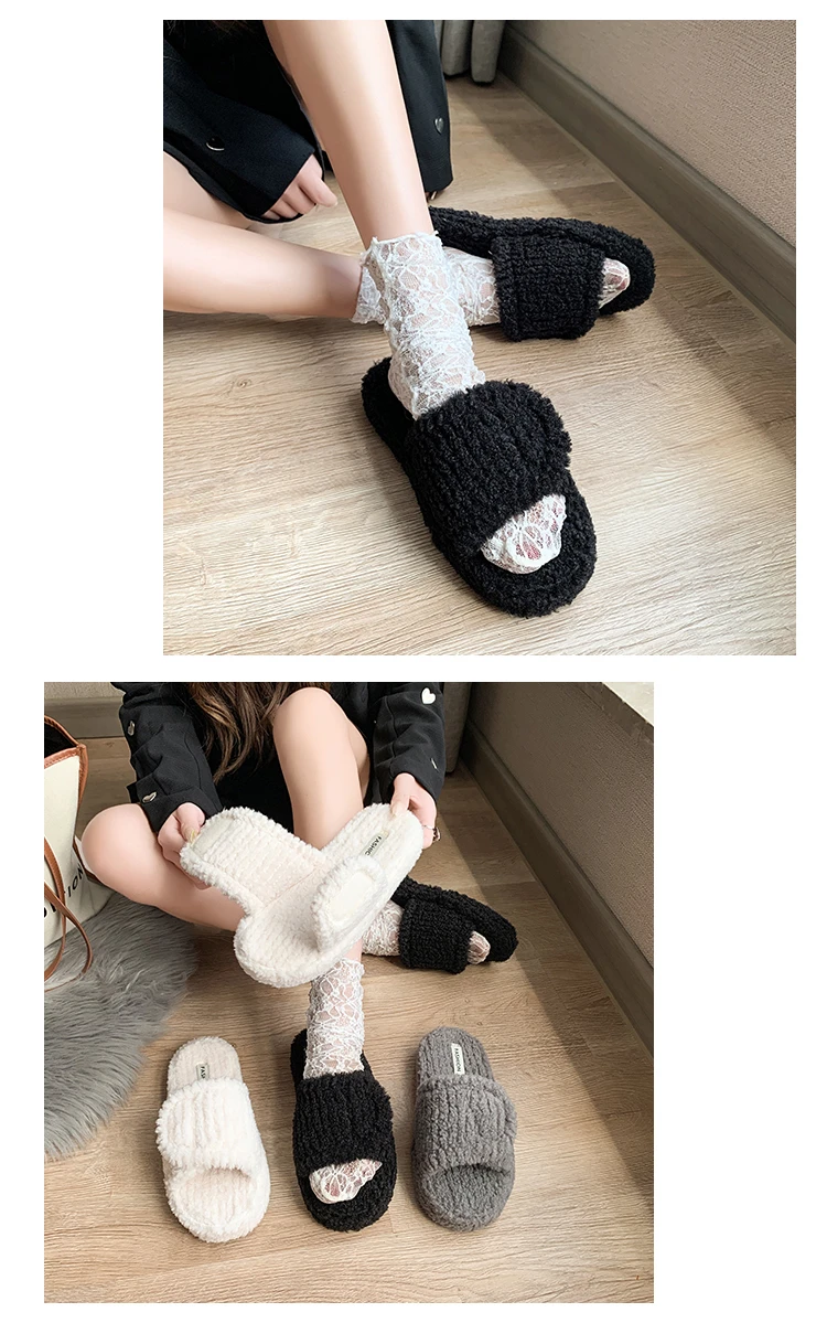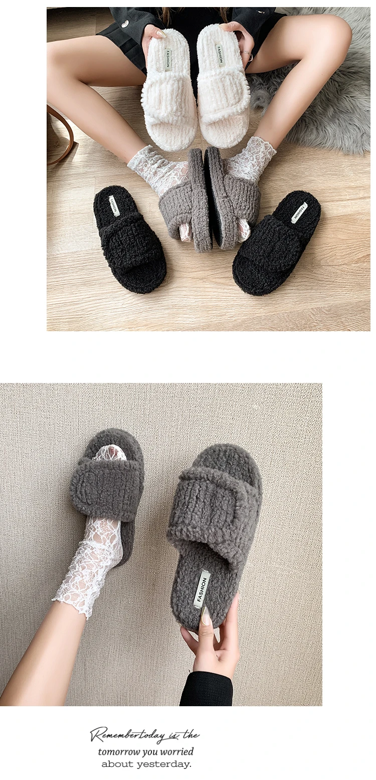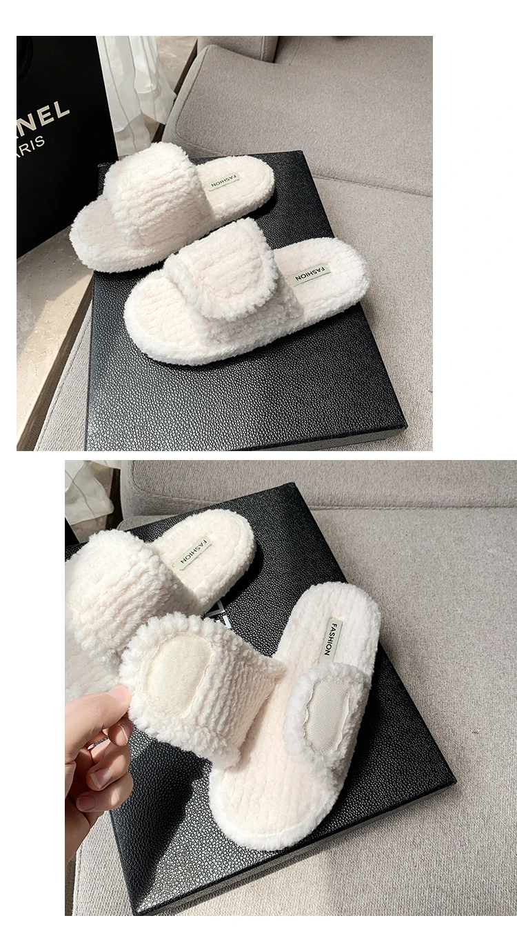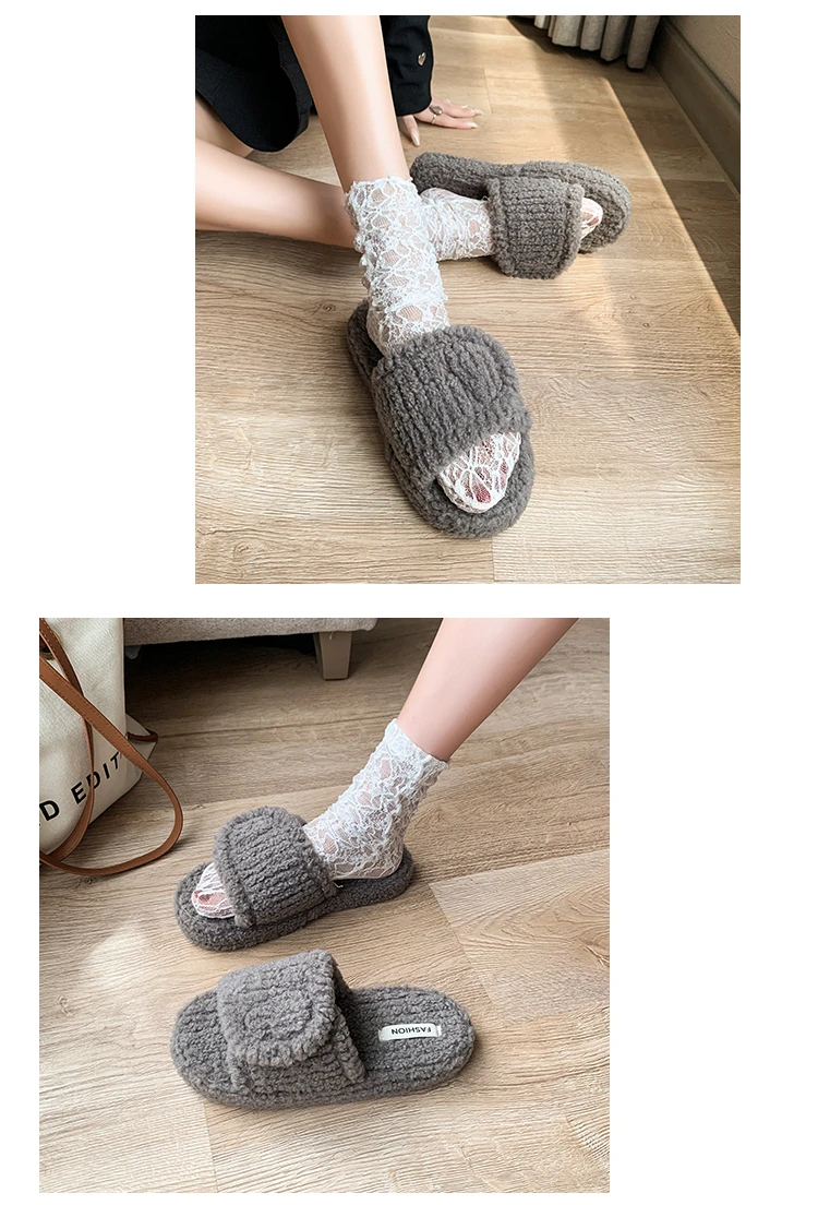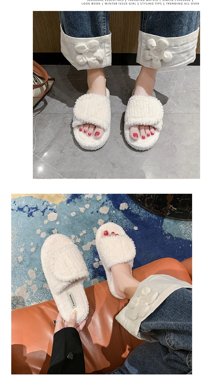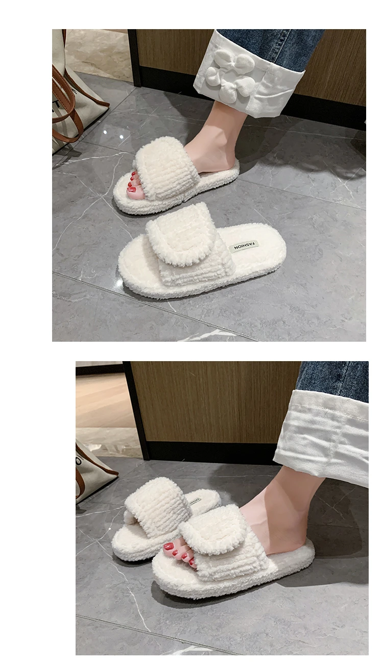 Aphixta White Winter Warm Flat Heel Home Slippers Women Can Be Disassembled Hook & Loop Fur Open Toe Indoor Shoes Plus Size 43