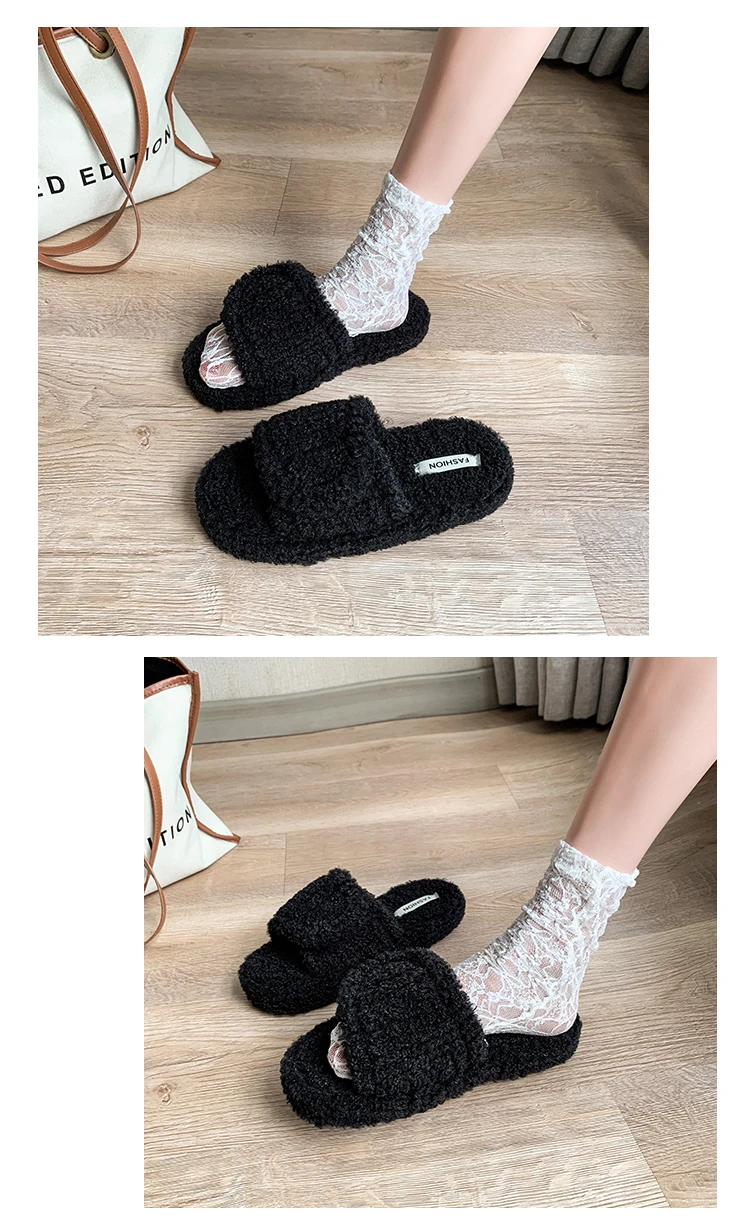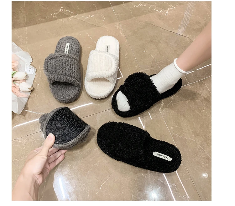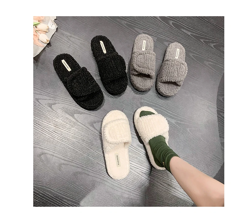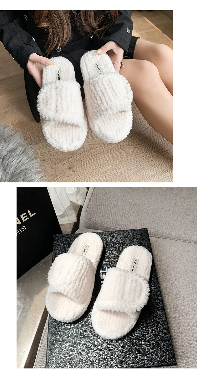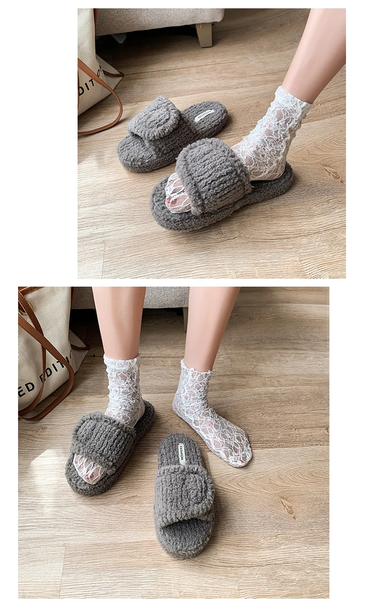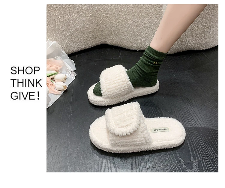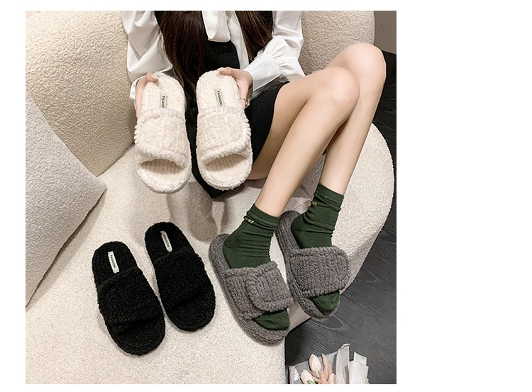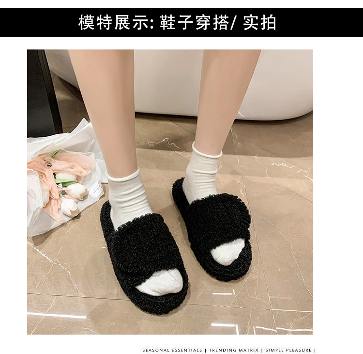 Aphixta White Winter Warm Flat Heel Home Slippers Women Can Be Disassembled Hook & Loop Fur Open Toe Indoor Shoes Plus Size 43