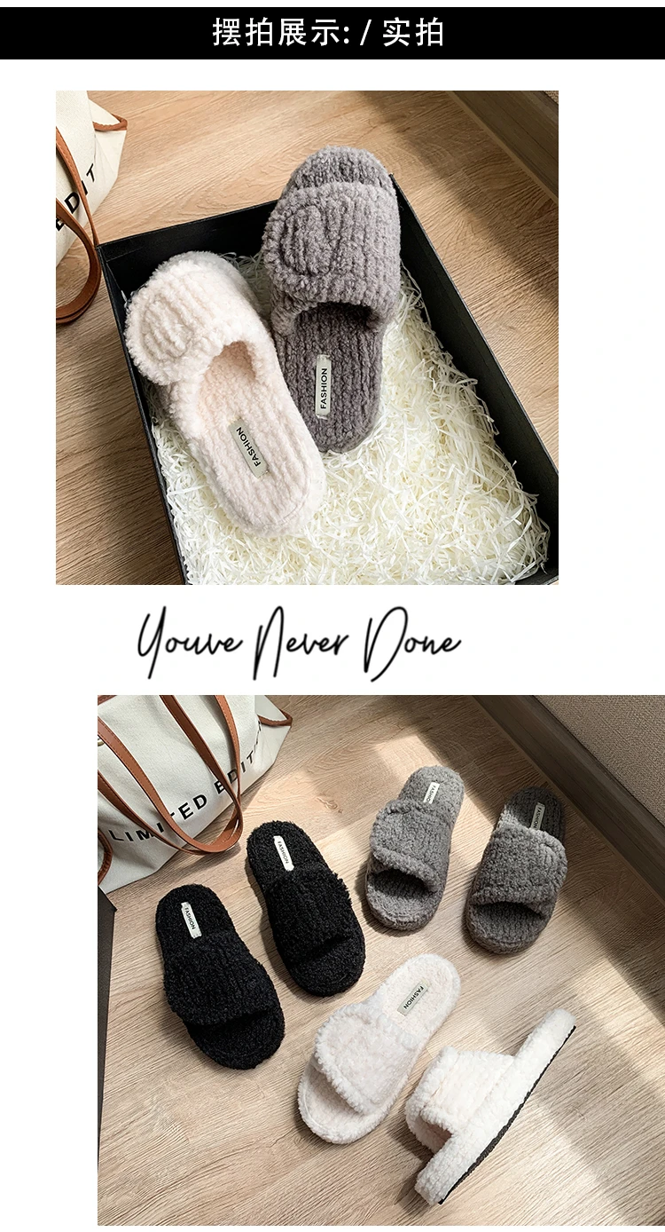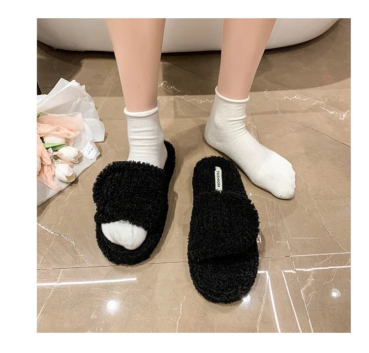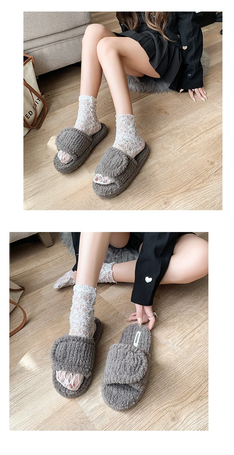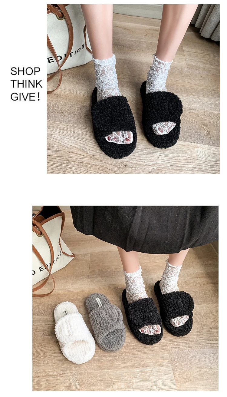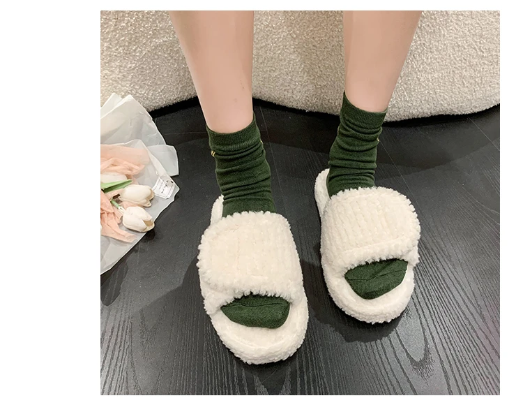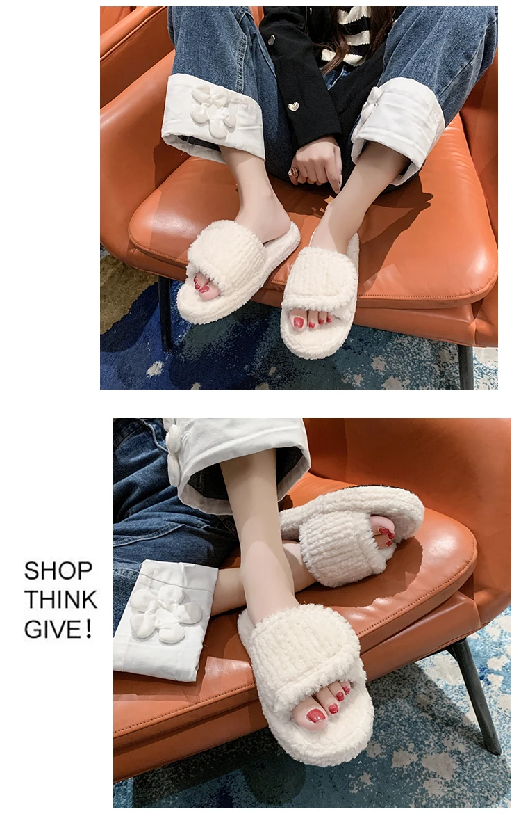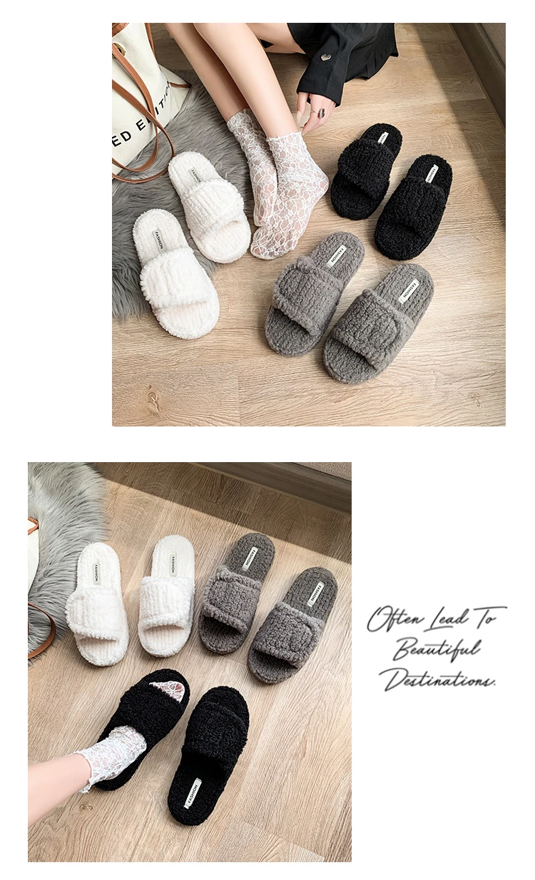 Aphixta White Winter Warm Flat Heel Home Slippers Women Can Be Disassembled Hook & Loop Fur Open Toe Indoor Shoes Plus Size 43