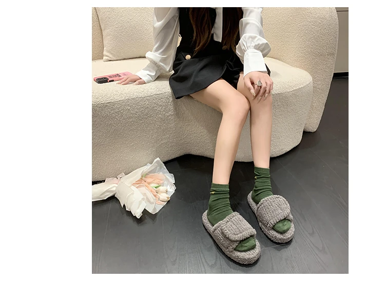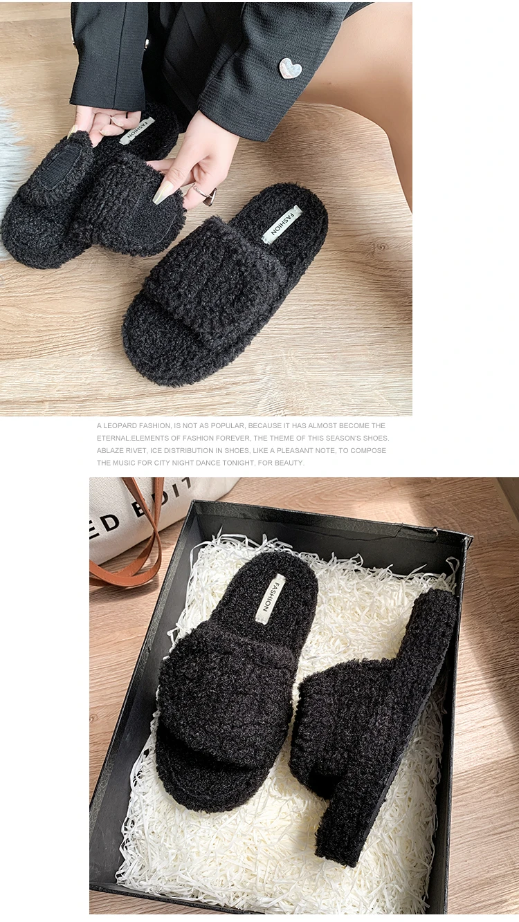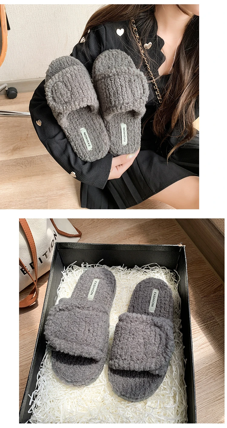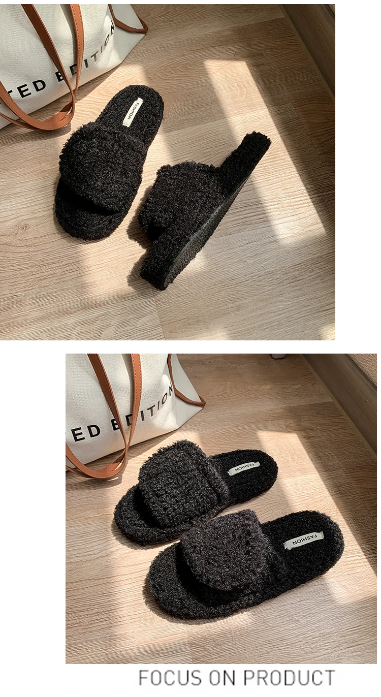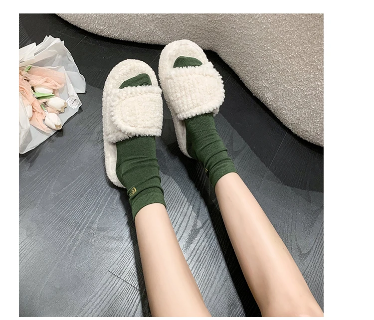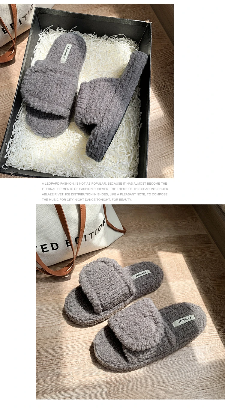Aphixta White Winter Warm Flat Heel Home Slippers Women Can Be Disassembled Hook & Loop Fur Open Toe Indoor Shoes Plus Size 43