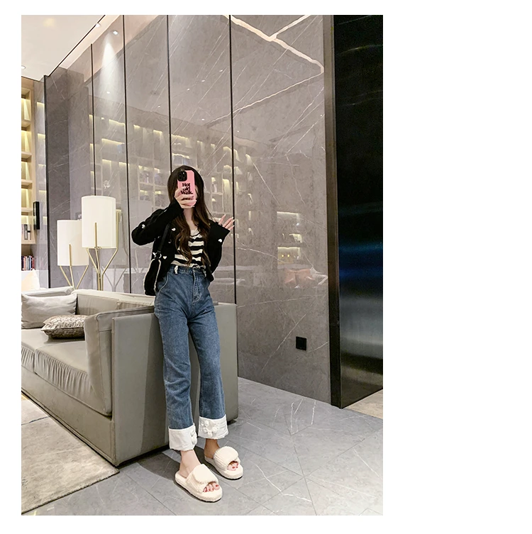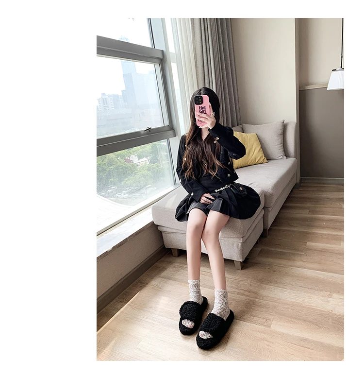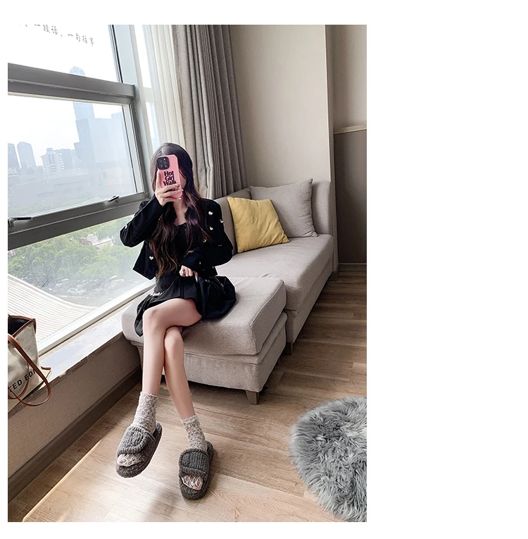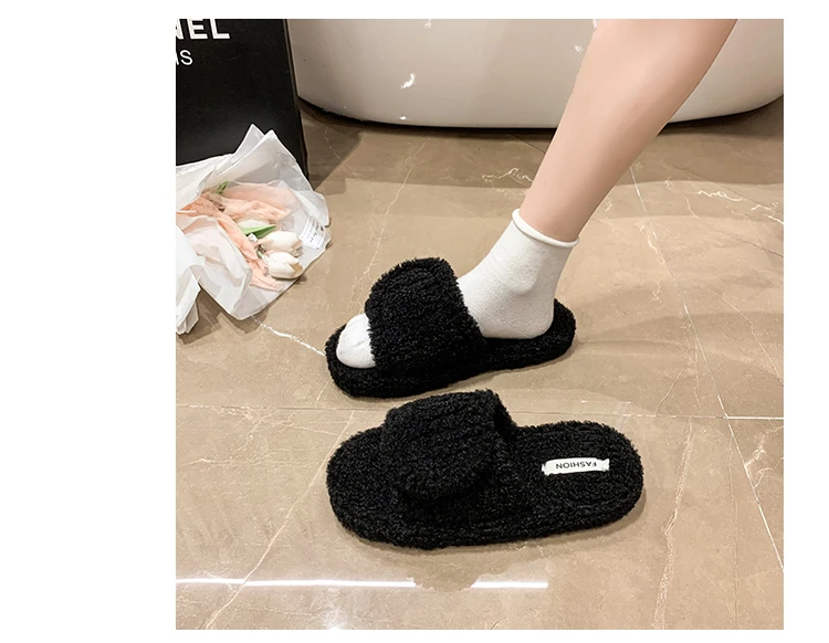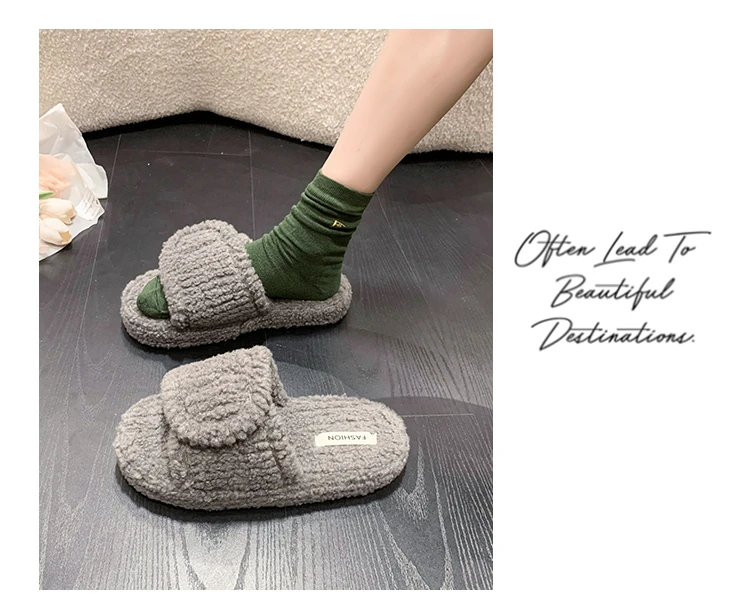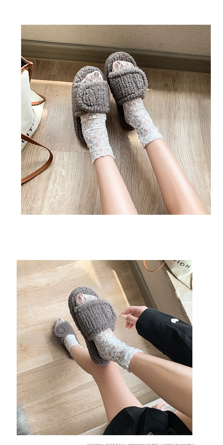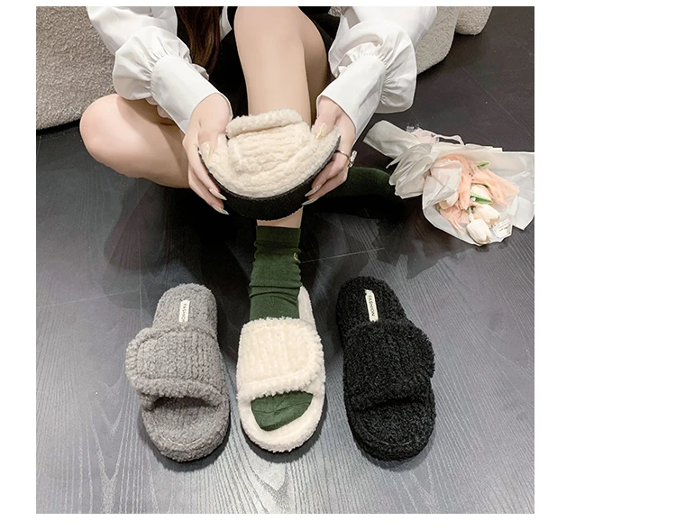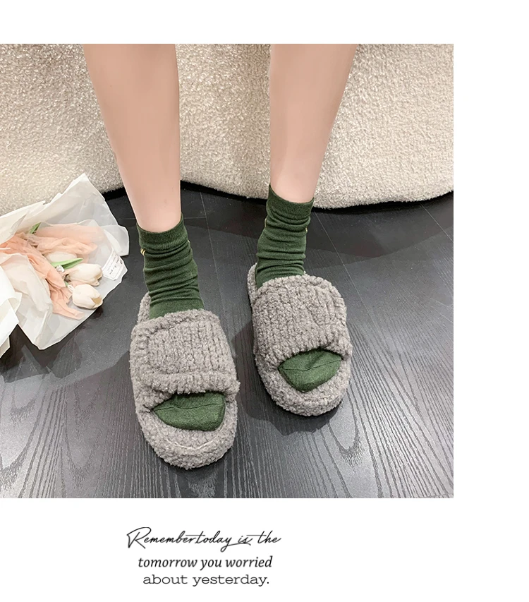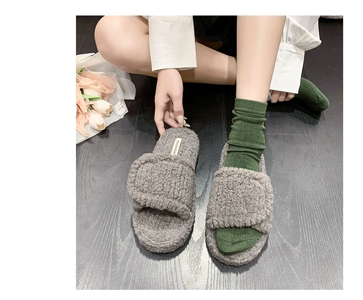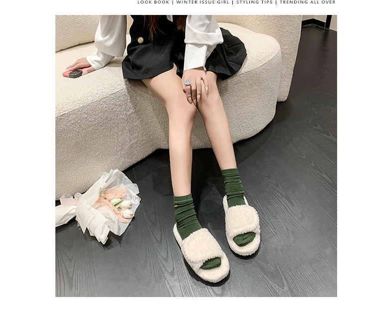 Aphixta White Winter Warm Flat Heel Home Slippers Women Can Be Disassembled Hook & Loop Fur Open Toe Indoor Shoes Plus Size 43