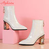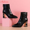 Aphixta Winter Boots Women Circle Zip Clorfule Diamonds Square Chunky Heel Antiskid Snake Pattern Pointed Toe Ankle Boots Shoes