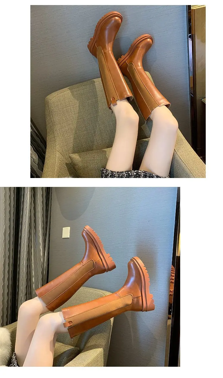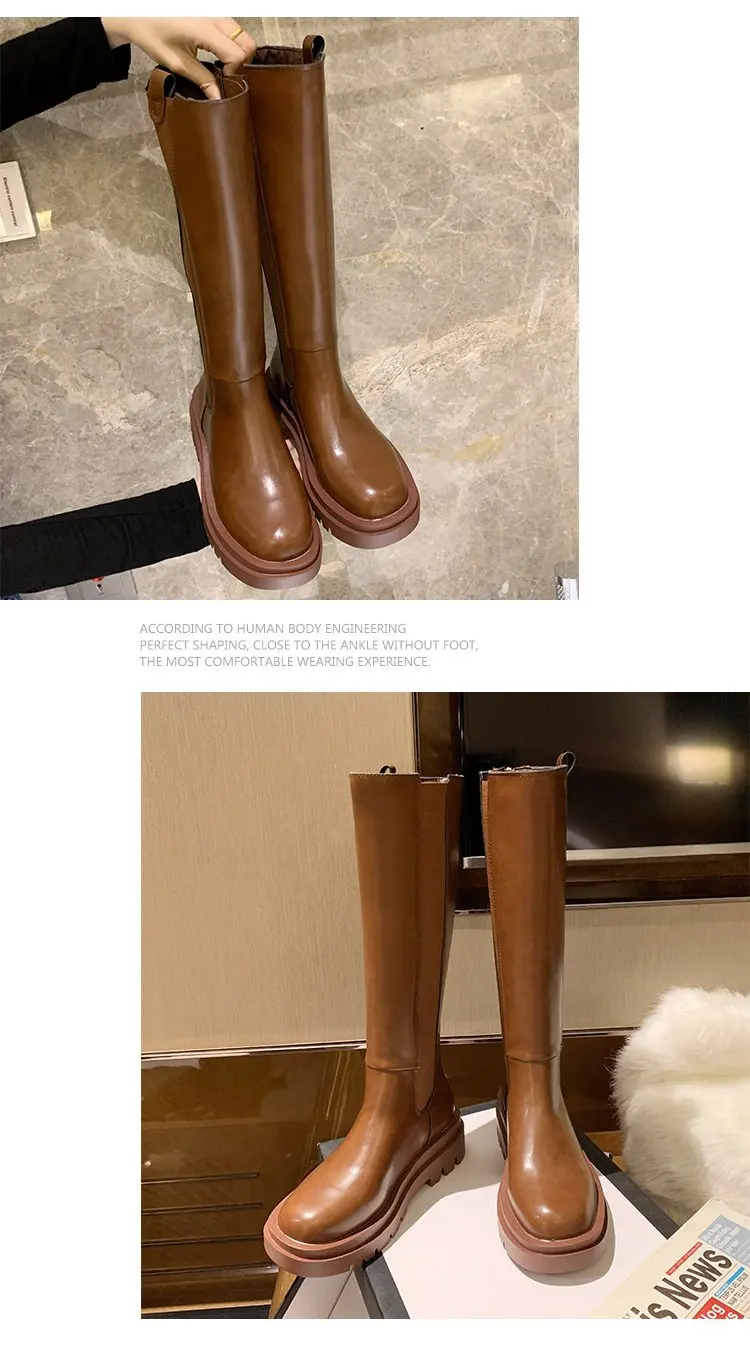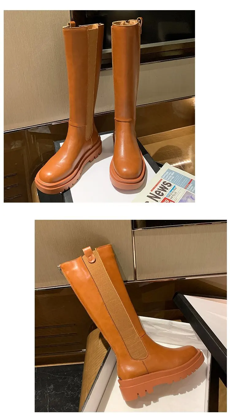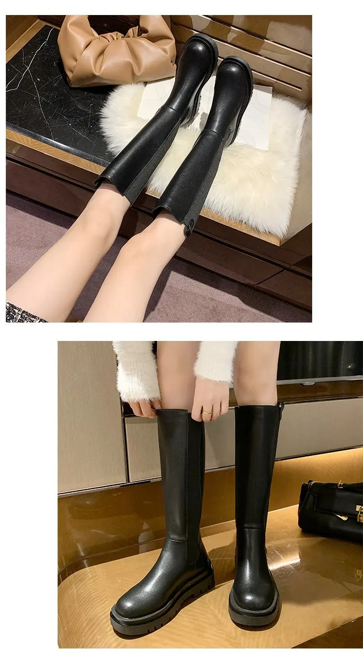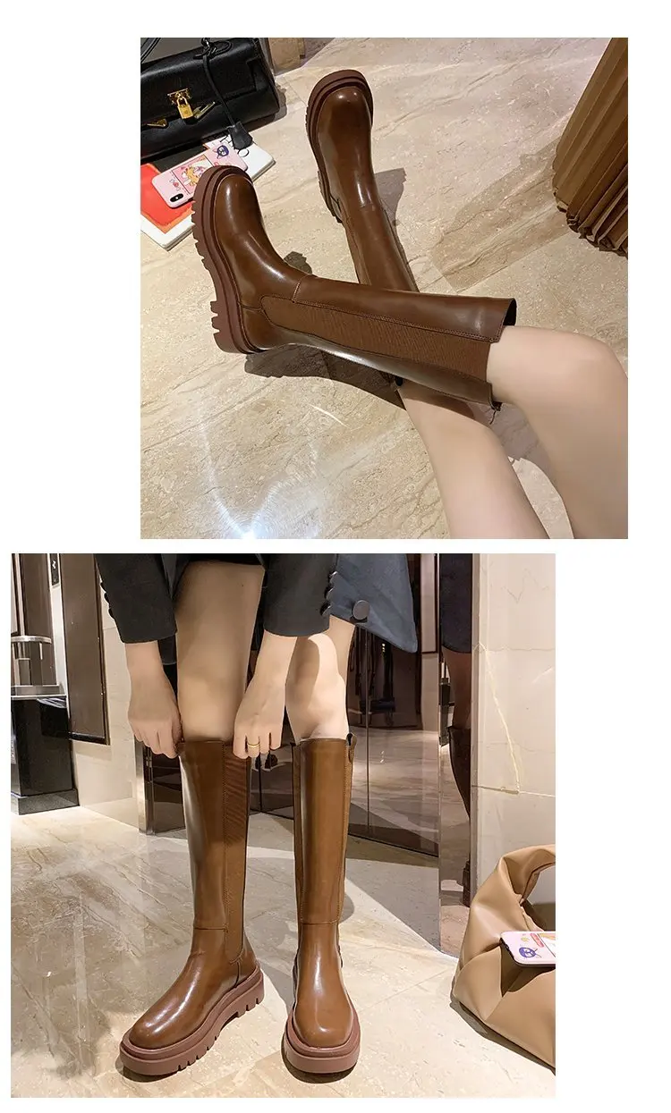 Aphixta Winter Long Elastic Band Women's High Boots Knee-High Luxury Chelsea Boots Women Ankle Boots Chunky Platform Shoes