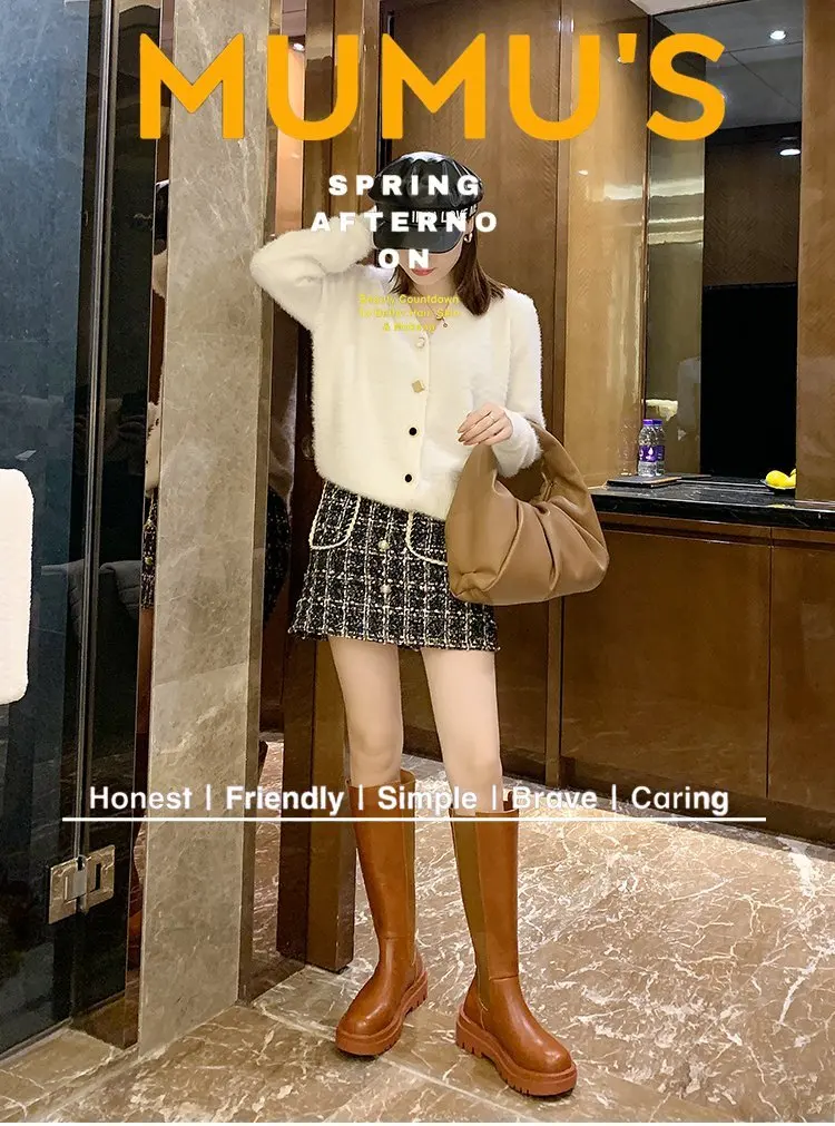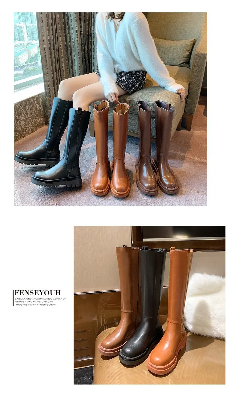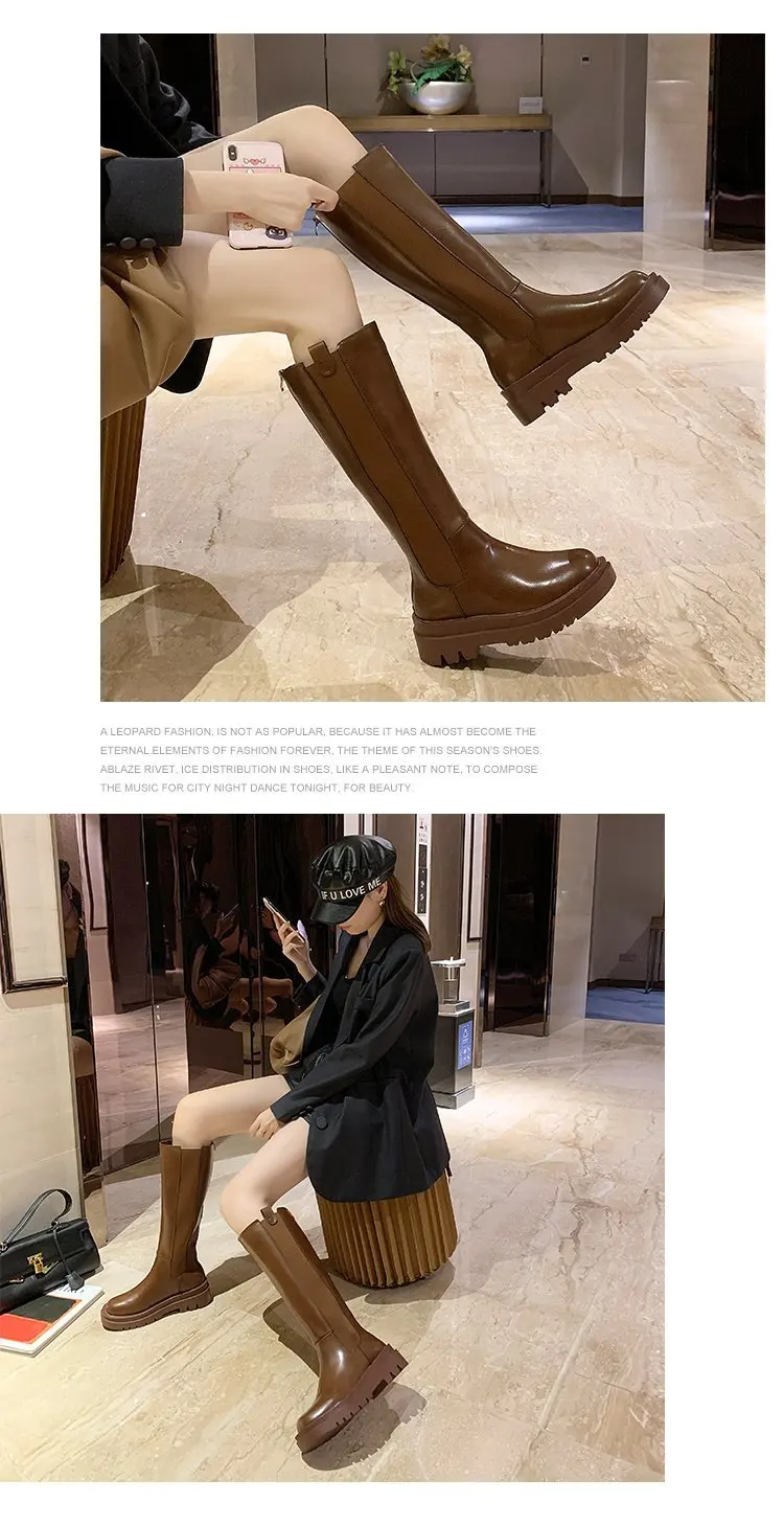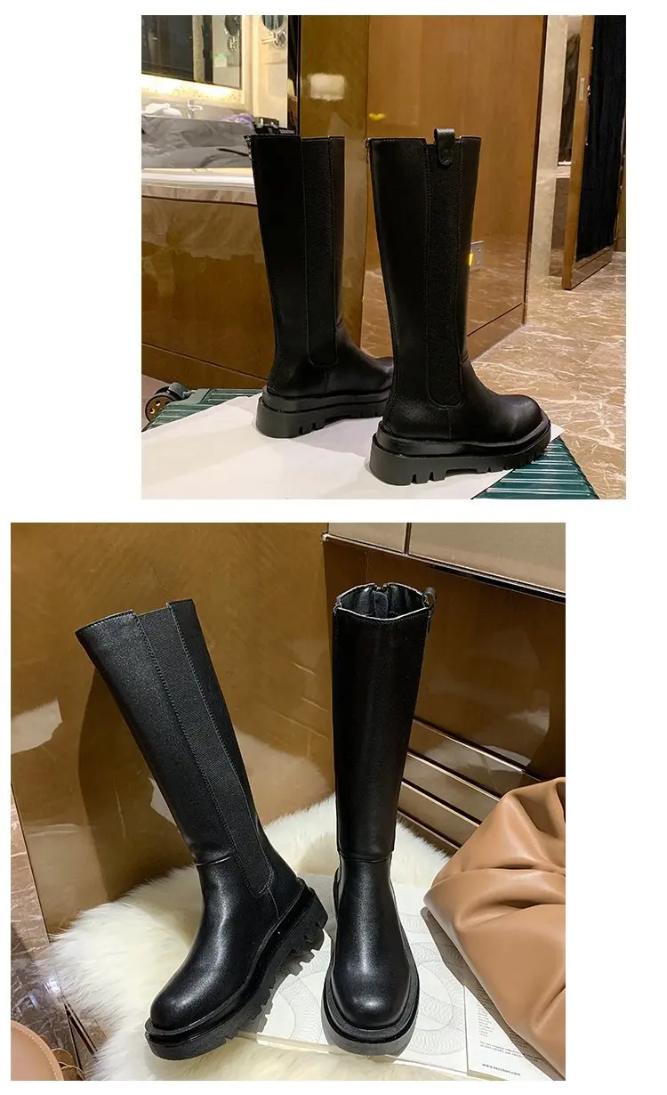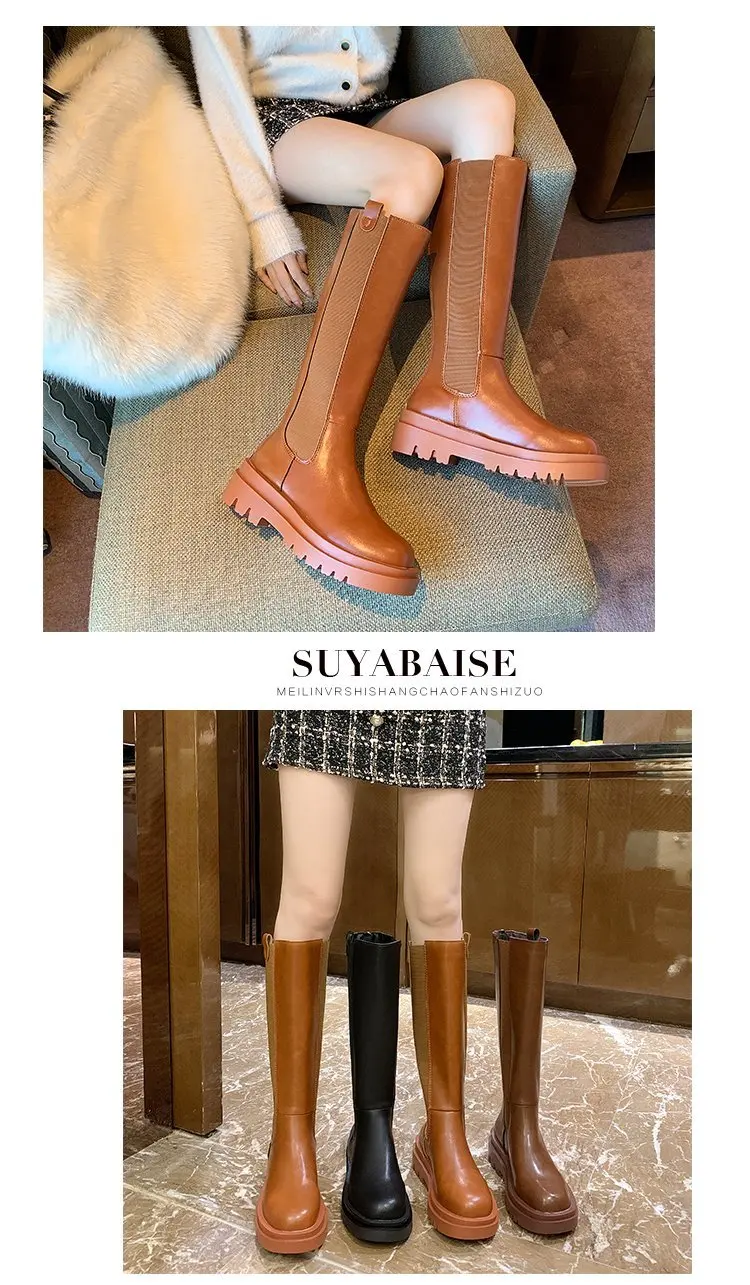 Aphixta Winter Long Elastic Band Women's High Boots Knee-High Luxury Chelsea Boots Women Ankle Boots Chunky Platform Shoes