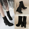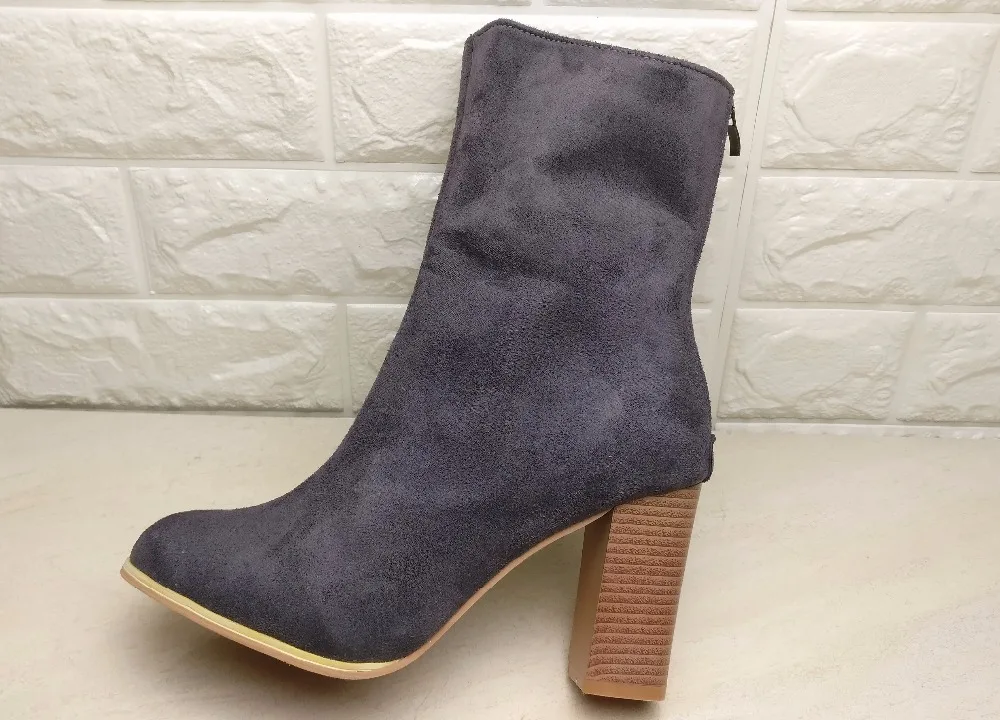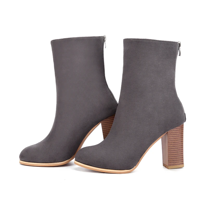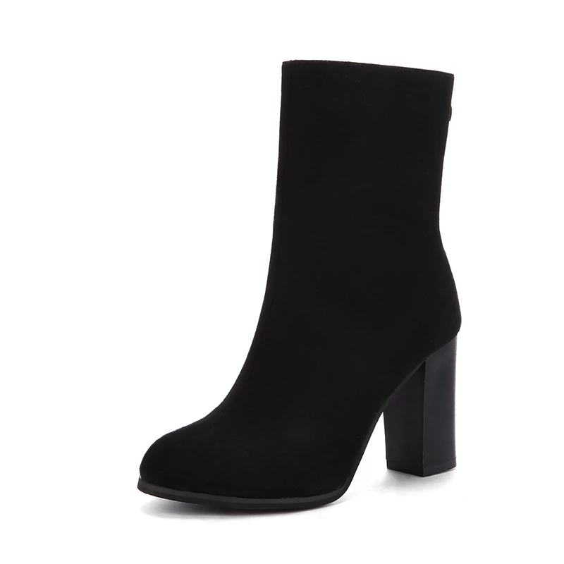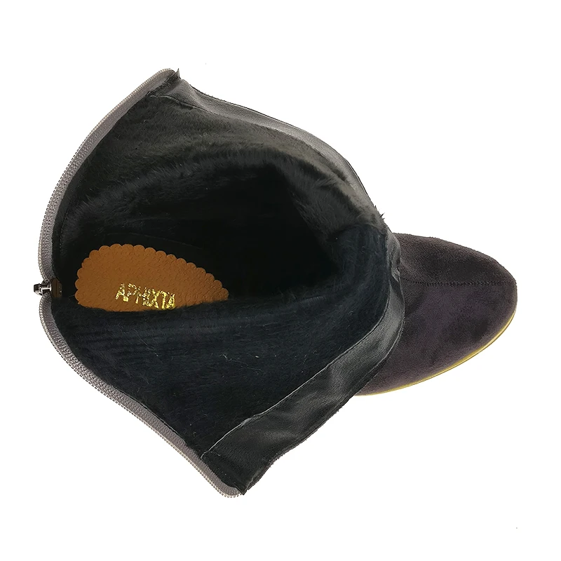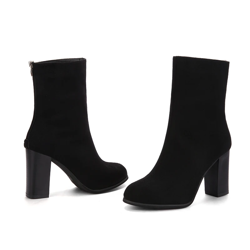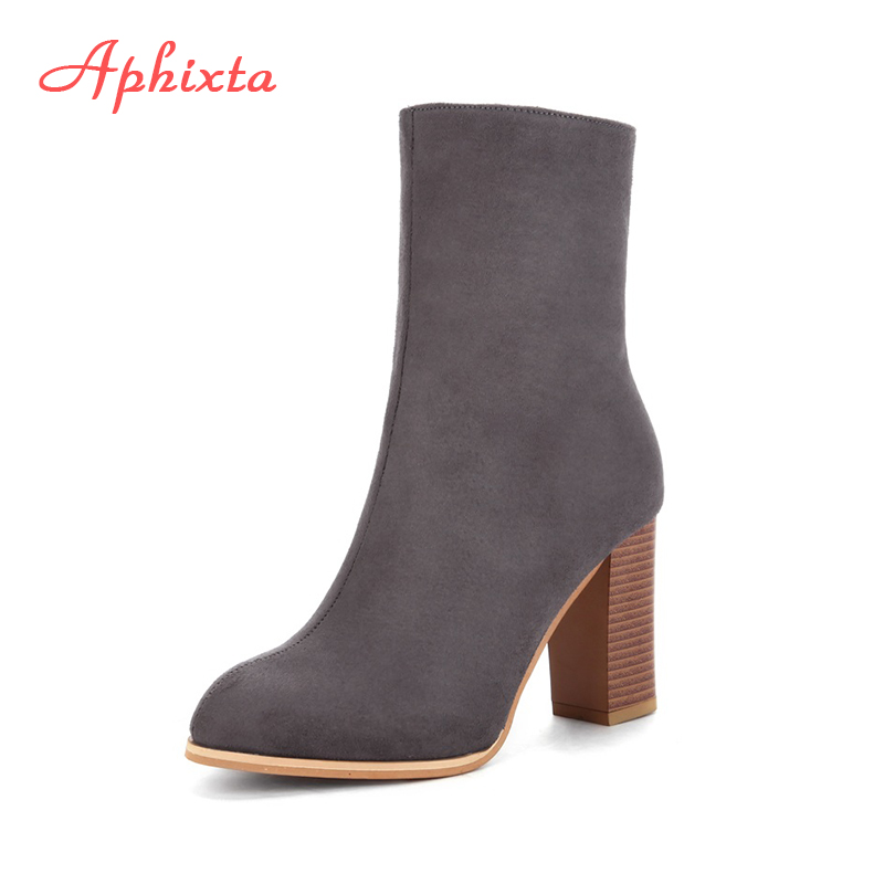 Aphixta Winter Mid-Calf Boots Shoes Women Cow Suede Botas Mujer High Heel Boots Square Heel Zip Ladies Shoes Big Size 43