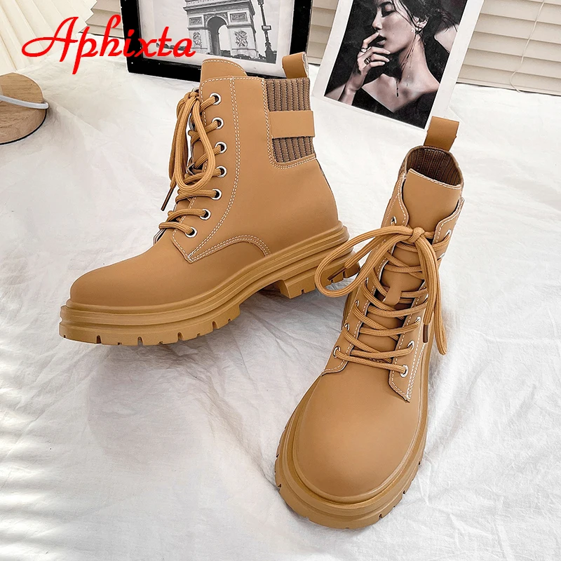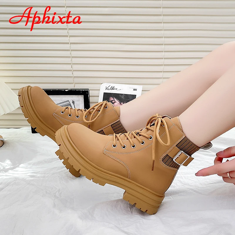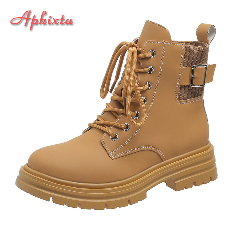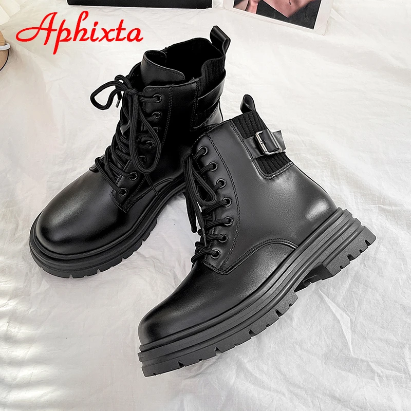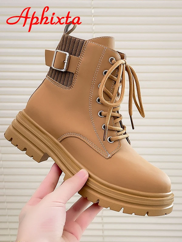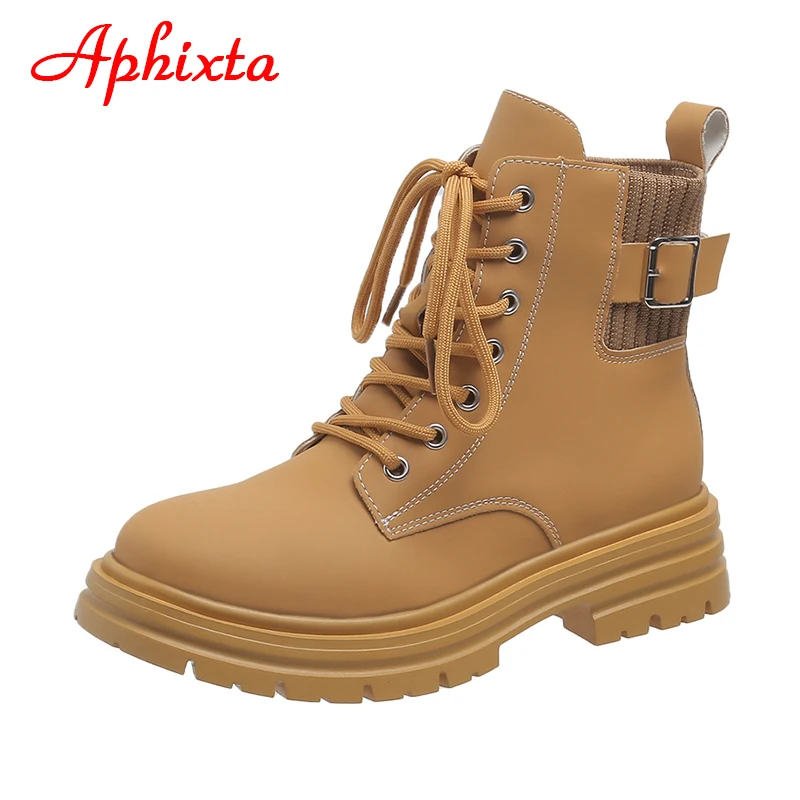 Aphixta Winter Platform Stretch Woolen Shoe Mouth Buckle Thick Sole Boots Women Non-slip Lace-up Waterproof Shoes
